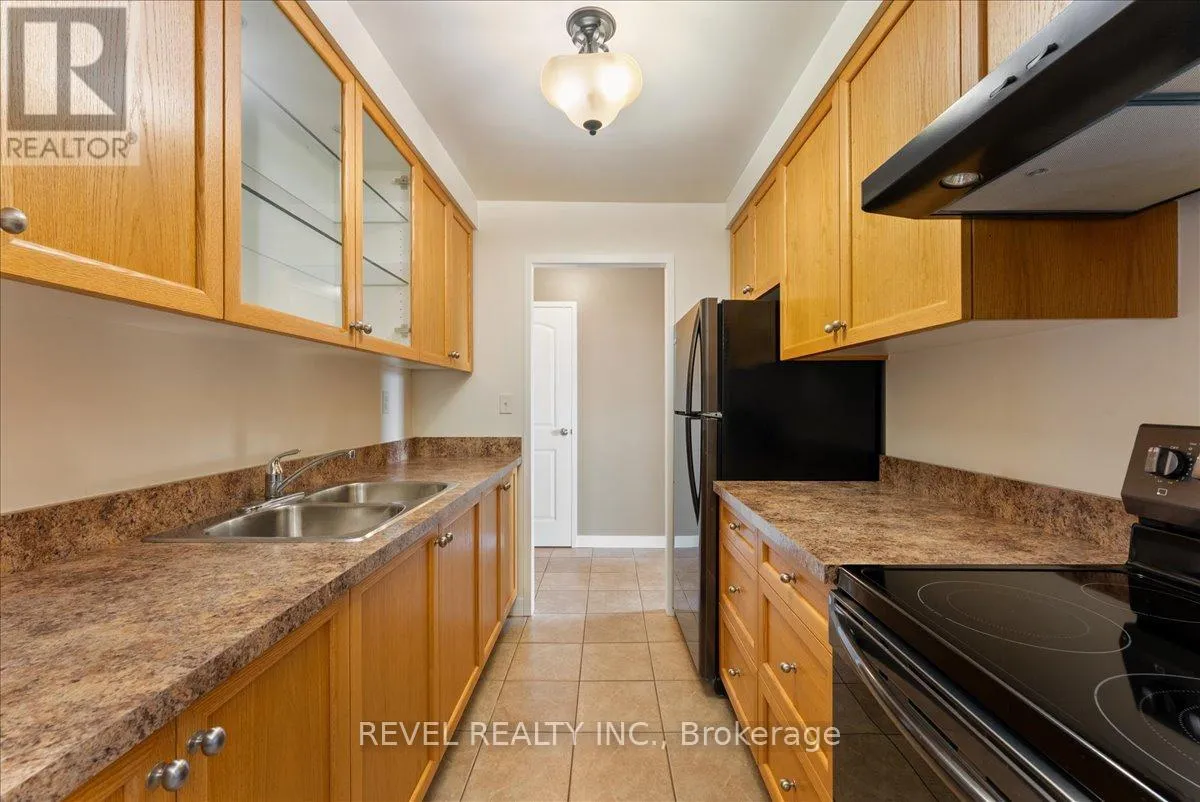Cross Streets: Glen St. and Porter. ** Directions: Glen St and Porter. Calling all first time buyers and investors! This clean and bright 2 bedroom unit is on the top floor of a quiet, well-maintained building. Enjoy the southern view from the balcony. Spacious, open-concept living/dining room. Hardwood flooring in living room and bedrooms. The kitchen features custom oak and glass cabinetry, drawers, and appliance depth-countertops. Huge walk-in closet in the primary bedroom and large closet in the second bedroom. Top floor = no neighbours above! Low maintenance fees and property taxes. Recently upgraded heaters in all rooms. Easy to lease for investors. (id:27476)