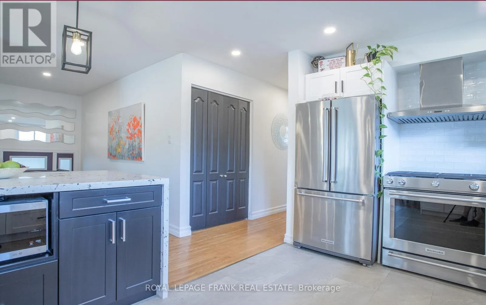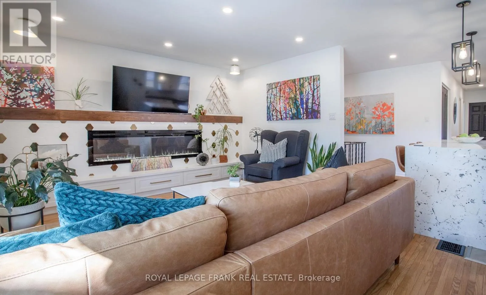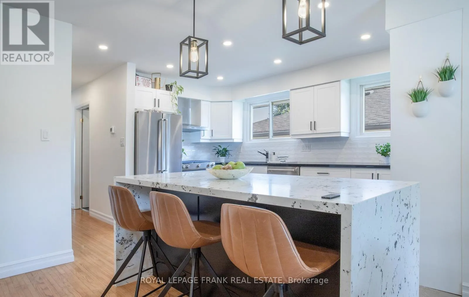 Rossland Rd E and Central Park Blvd Beautifully updated and move-in ready, this charming home is nestled in a desirable neighborhood surrounded by mature trees and just steps from parks and schools. The open-concept layout features a modern kitchen with quartz counters, island, and stainless steel appliances, blending style with functionality. Throughout the main level, you'll find hardwood floors, a cozy fireplace, and unique designer touches that make this home special. Offering three spacious bedrooms and a walkout to a large deck and fully fenced yard, it's perfect for family living and entertaining. The finished basement with separate entrance includes a well-kept in-law suite/apartment, offering endless possibilities for extended family or rental income. Located within walking distance to parks and schools, this property combines convenience and comfort. Tenant willing to stay or vacate by Nov 1st. (Note: main floor bathroom mirror to be replaced.)This is truly a must-see with no disappointments! (id:27476)