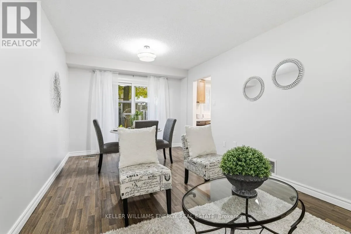 Cross Streets: Rossland/Harmony. ** Directions: Harmony/Rossland. A quiet tucked away community in a quiet area where the biggest daily drama is deciding whether to take the 5-minute walk to the conservation trails before or after picking up wine at the neighborhood LCBO. This rarely offered, 2-storey townhome with its own garage backs onto a friendly parkette offering a built-in green space without the lawn-mower guilt. Inside, three bedrooms, a renovated kitchen, and fresh paint whisper, "Just move in already." The main-floor walkout tempts you toward coffee-on-the-patio mornings, while a partially finished basement with its second bath gives you bonus living space-guest crash-pad, teen training zone or a great games room. Upgraded baths and plush new carpeting add to the comfort of this home. The locals brag about walking their kids to Harmony Heights or Eastdale High-a short walk needing no busses. But the real flex? A five-minute wander to Harmony Valley Conservation Area, home to one of the areas larges "off-leash" dog parks and where trail runners and cyclists live their best lives alongside the creek's bike path. Add in minutes to groceries and the 407, low condo fees this is an opportunity. (id:27476)