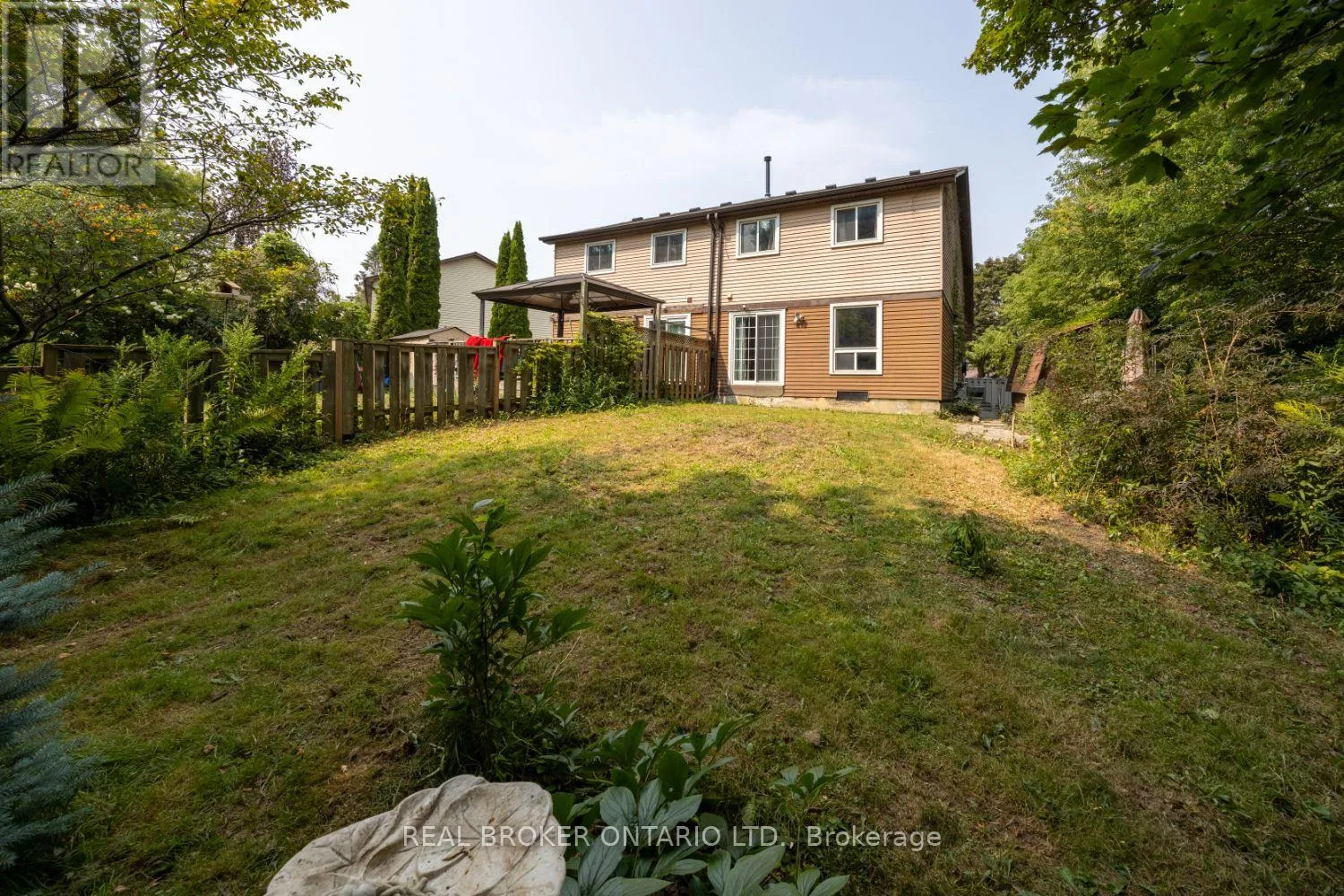 Cross Streets: Harmony Rd N/Copperfield. ** Directions: Exit Hwy 401 and head north on Harmony. East on Copperfield off Harmony. South onto Wickham St and follow straight down to Wickham Crt. Tucked away on a court location, this charming semi-detached home offers rare privacy with a stunning ravine backdrop. Close to amenities and easy access to Hwy 401. Walk right outside to the nearby walking trails. Step inside to find spacious living areas. Living room features laminate flooring, plenty of natural light and walk-out to the backyard, perfect for enjoying the tranquil surroundings. Good-sized kitchen with laminate flooring overlooks the separate dining room, ideal for hosting gatherings. Three bedrooms upstairs all with ample closet space, including a wall-wall closet in the primary bedroom. The finished basement adds valuable living space with a built-in bar, and lots of built-in shelving in the rec room. Outside, you'll fall in love with the oversized yard surrounded by mature trees and a shed for yard storage, your own private escape with plenty of room to relax or play. (id:27476)