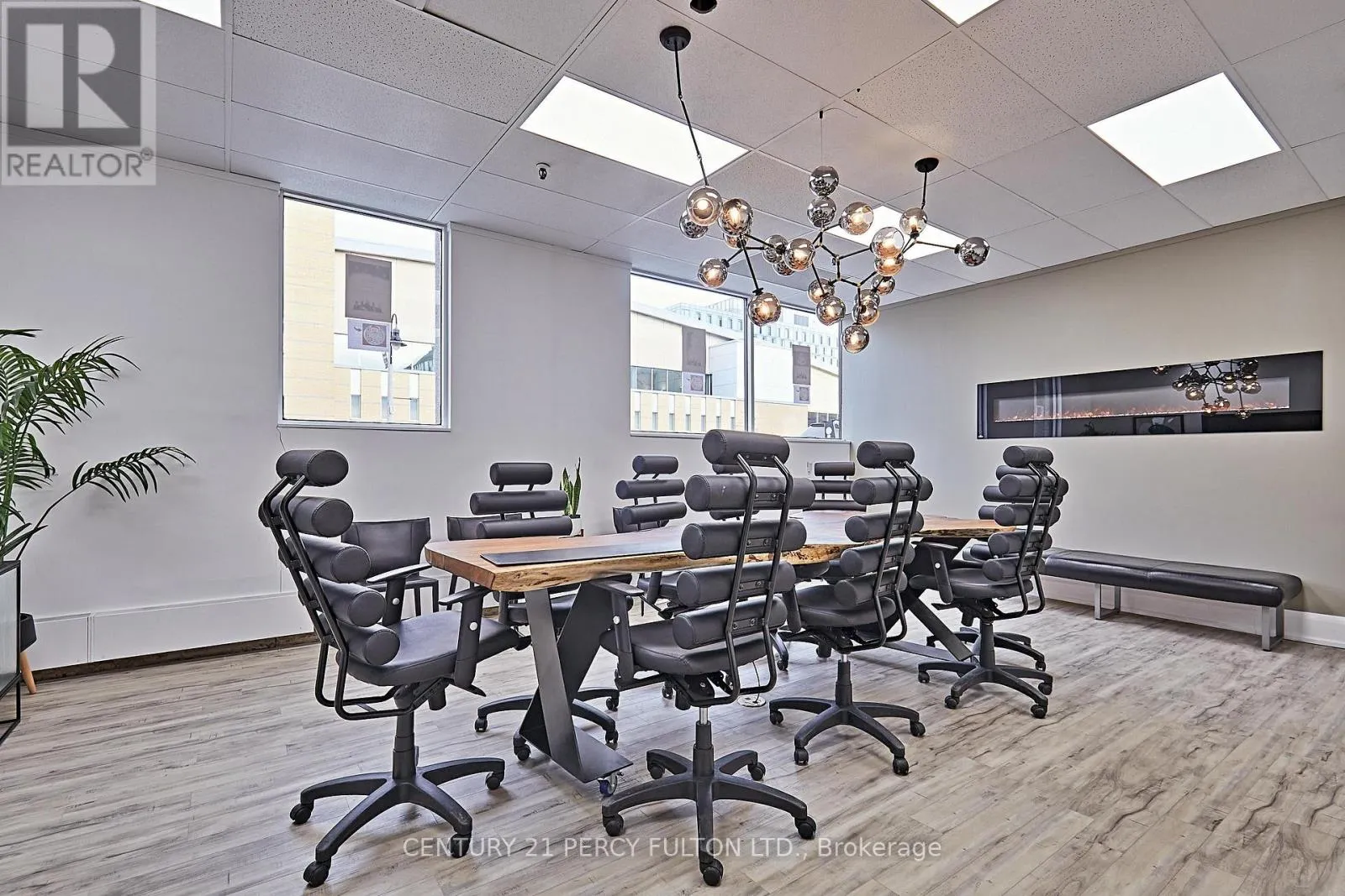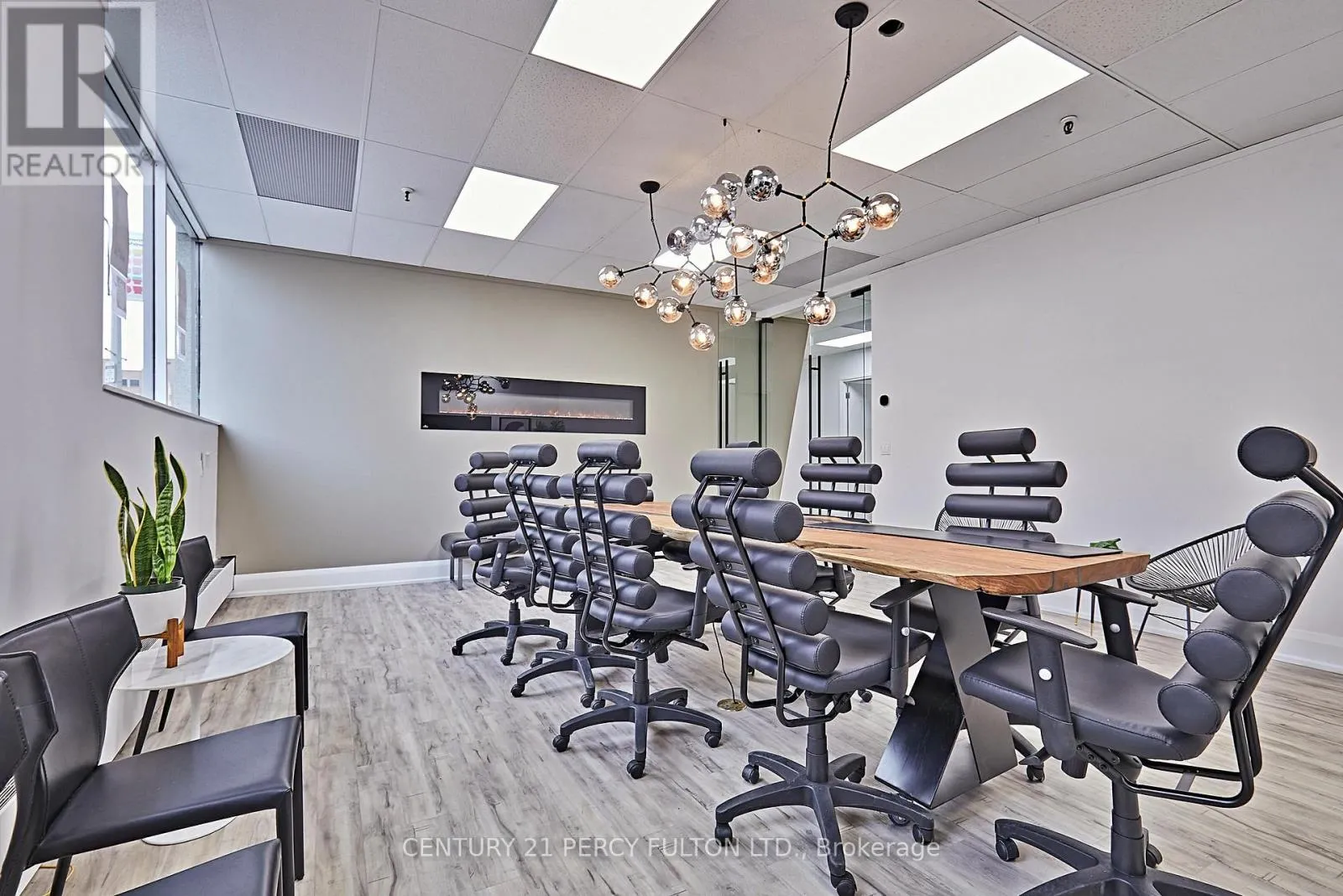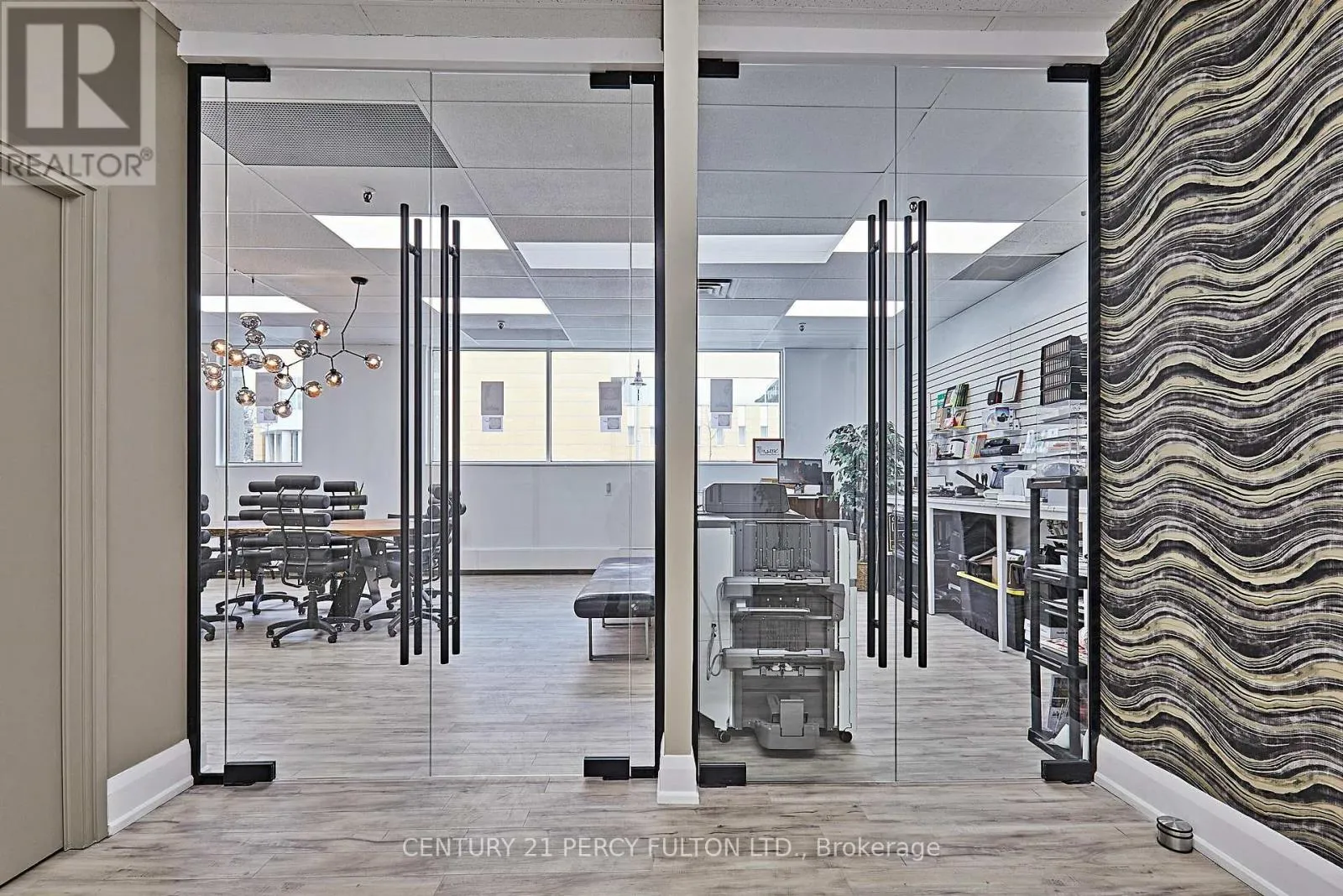 Cross Streets: Simcoe St & Richmond St E. ** Directions: google maps. Spanning over 3,600 SqFt. This beautifully renovated space epitomizes modern elegance & functionality. It features ultrawide hallways with 10 private offices, a sophisticated boardroom, & a state-of-the-art professional print room. There's an ultra-modern fully handicap-accessible washroom with porcelain walls in the front & a second washroom near the back. The reception area has a rich, inviting, welcoming ambiance with warm wood-textured high-traffic waterproof vinyl floors. There are high-end finishes, including striking 10-foot high floor-to-ceiling quartz stone walls with new modern Fluted accent panels & custom ceiling features such as 3D graphic mosaic panels that would challenge any award-winning architectural designs. It also sports a top-of-the-line kitchenette with designer quartz counters & backsplash, a hideaway Sub-Zero fridge with freezer, a low profile one-touch microwave, a hideaway Miele super quiet dishwasher, a Miele coffee and beverage maker with instant hot water & built-in Milk Steamer, turns full beans into freshly ground and compacted, perfectly brewed duel cups of java. The Functional shelving with hideaway outlets & contemporary cabinetry all help to enhance the aesthetic appeal, creating an inspiring environment. Whether you're hosting clients in the elegant reception/lounge or boardroom or utilizing the ergonomic workstations, this office space is designed for productivity & style. Discover a workspace where innovation meets sophistication, renovated in 2024 from top to bottom with high-end fingerprint, access card, passcode & facial recognition locks on all doors, as well as the addition of a fully functional and stylish Podcast Studio. There are 13 extra large east-facing windows on Mary St. across from the YMCA, yielding Fantastic marketing potential. (id:27476)