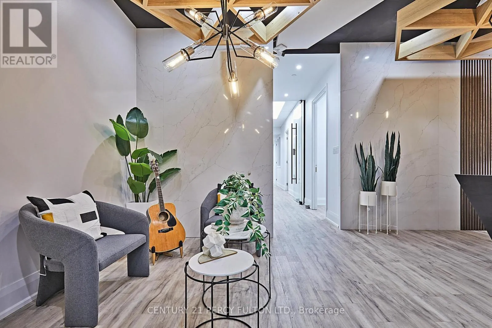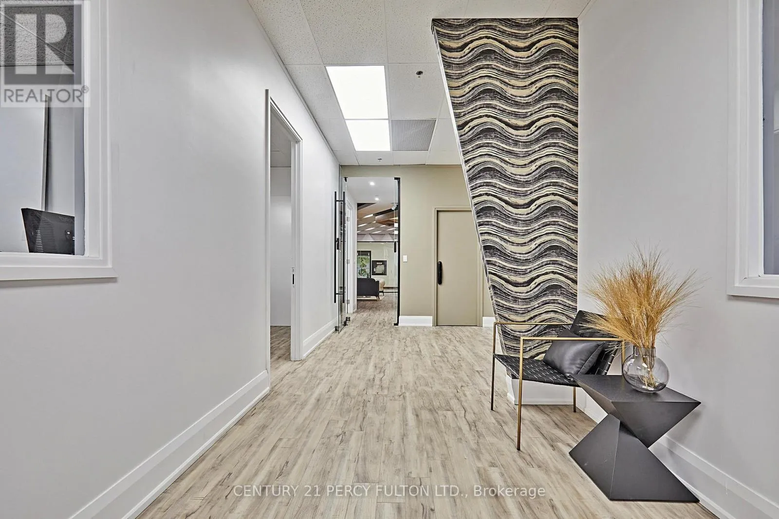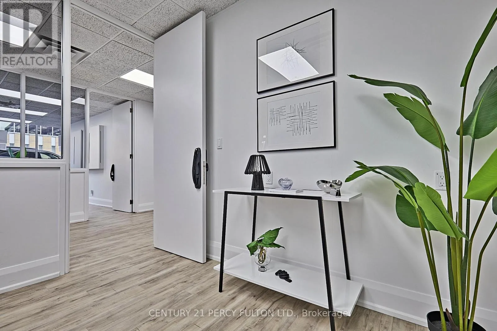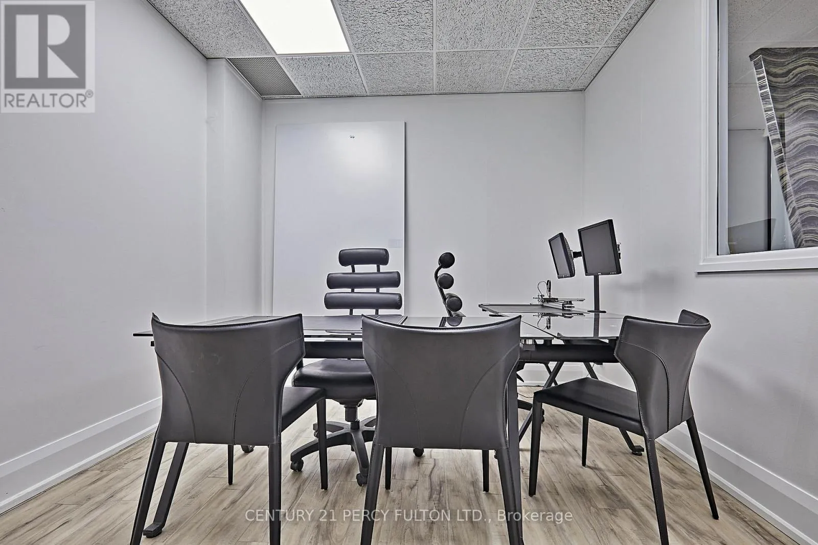Cross Streets: Simcoe St & Richmond St E. ** Directions: google maps. Spanning over 3,600 SqFt. This beautifully renovated space epitomizes modern elegance & functionality. It features ultrawide hallways with 10 private offices, a sophisticated boardroom, & a state-of-the-art professional print room. There's an ultra-modern fully handicap-accessible washroom with porcelain walls in the front & a second washroom near the back. The reception area has a rich, inviting, welcoming ambiance with warm wood-textured high-traffic waterproof vinyl floors. There are high-end finishes, including striking 10-foot high floor-to-ceiling quartz stone walls with new modern Fluted accent panels & custom ceiling features such as 3D graphic mosaic panels that would challenge any award-winning architectural designs. It also sports a top-of-the-line kitchenette with designer quartz counters & backsplash, a hideaway Sub-Zero fridge with freezer, a low profile one-touch microwave, a hideaway Miele super quiet dishwasher, a Miele coffee and beverage maker with instant hot water & built-in Milk Steamer, turns full beans into freshly ground and compacted, perfectly brewed duel cups of java. The Functional shelving with hideaway outlets & contemporary cabinetry all help to enhance the aesthetic appeal, creating an inspiring environment. Whether you're hosting clients in the elegant reception/lounge or boardroom or utilizing the ergonomic workstations, this office space is designed for productivity & style. Discover a workspace where innovation meets sophistication, renovated in 2024 from top to bottom with high-end fingerprint, access card, passcode & facial recognition locks on all doors, as well as the addition of a fully functional and stylish Podcast Studio. There are 13 extra large east-facing windows on Mary St. across from the YMCA, yielding Fantastic marketing potential. (id:27476)