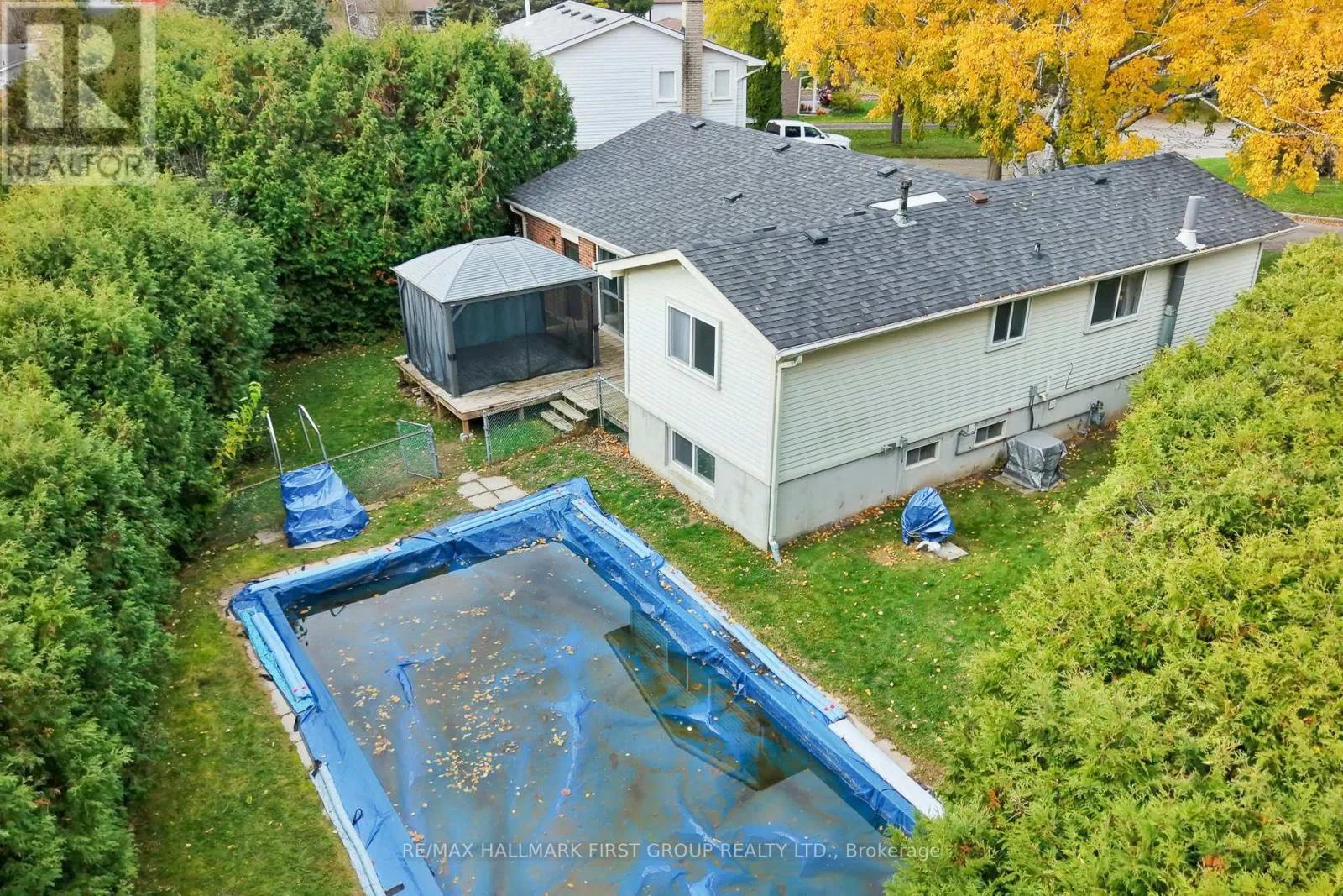Harmony Road S & Olive Ave **OPEN HOUSE CANCELLED** Welcome to this inviting side-split home nestled on a quiet court with no neighbours behind, offering the perfect blend of privacy, comfort, and community in a family-friendly neighbourhood. This charming 3+1 bedroom, 2-bath home is thoughtfully designed for relaxed family living and effortless entertaining. The main floor features newer hardwood flooring, ceramic tile, updated lighting, and a bright, open layout that feels warm and welcoming. The kitchen maintains its timeless and functional appeal-ideal for everyday meals or weekend gatherings. Upstairs, a refreshed full bath complements the spacious bedrooms, while the finished basement adds valuable living space with an additional bedroom and a modern bathroom featuring a stand-up shower.Outside, the property truly shines with a large lot and completely private backyard surrounded by mature trees and lush green space. Step out to a 20' x 16' deck with a gazebo, overlooking a massive in-ground pool-the perfect setting for summer BBQs, pool parties, or peaceful evenings under the stars. An extended single-car garage offers ample room for parking and storage. With major updates including windows, roof, furnace, AC, and pool liner all completed within the last few years, this home offers peace of mind, incredible outdoor living, and a truly serene setting-ready for its next family to call home. (id:27476)