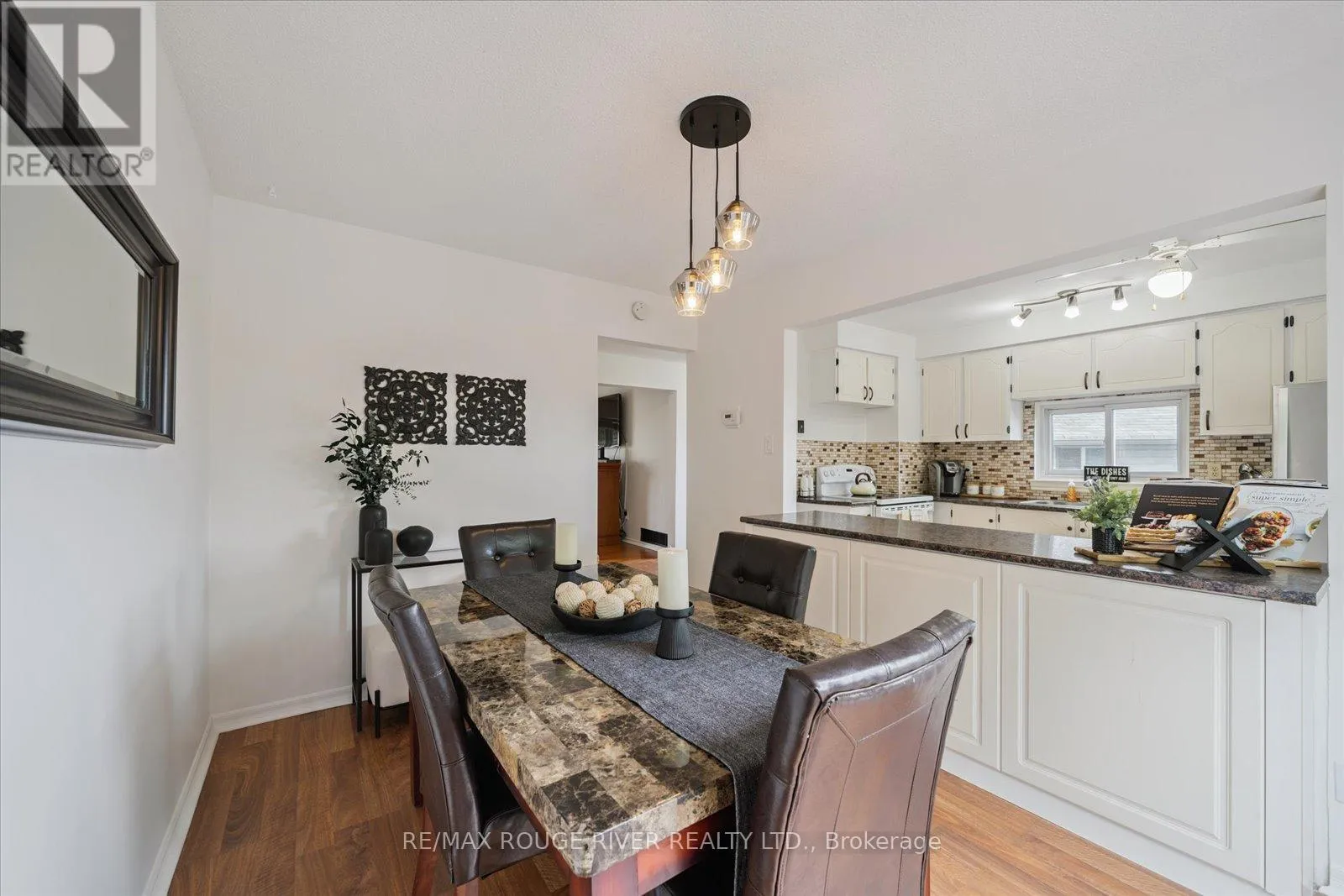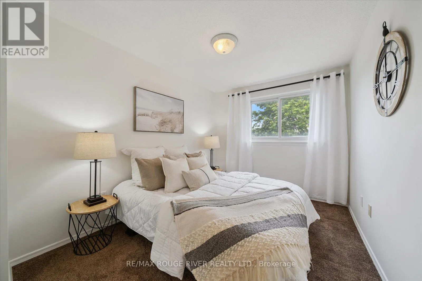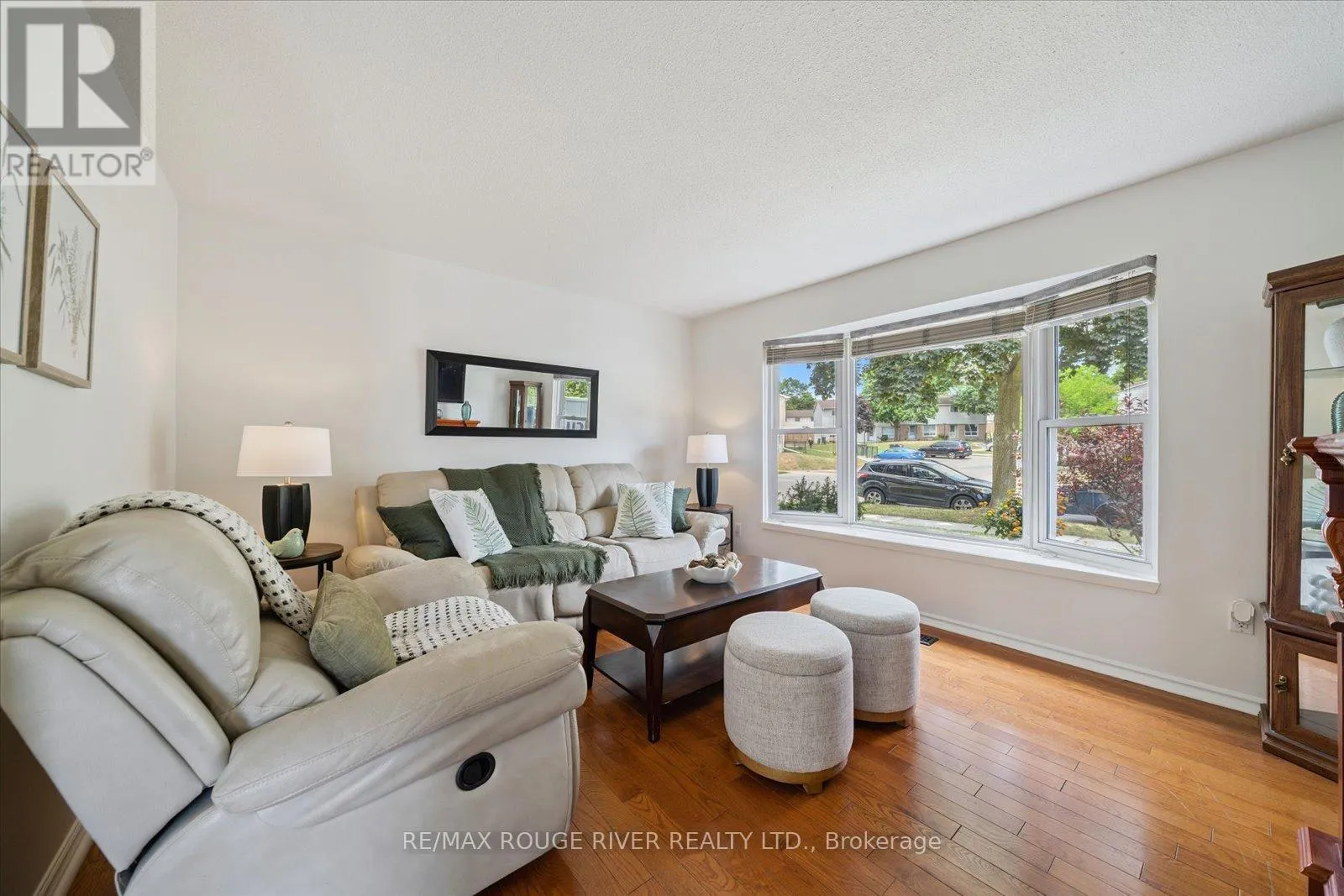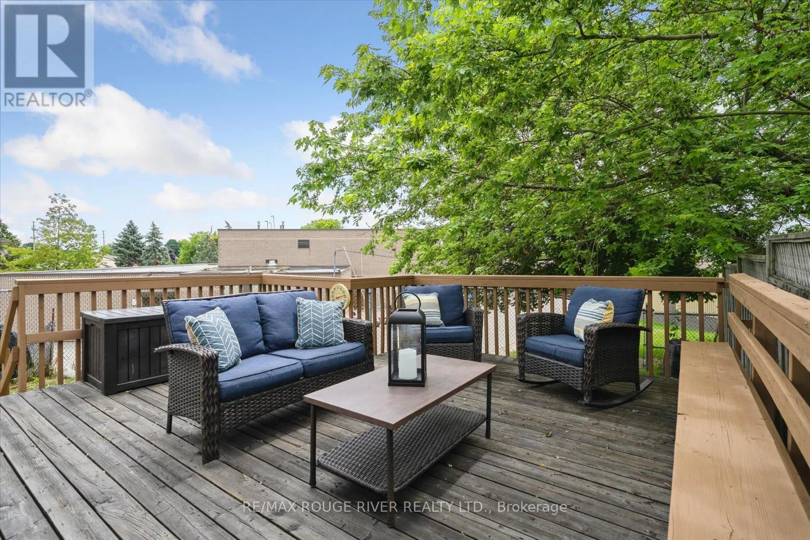 Harmony Rd/ Rossland Rd Open House November 22nd 1-3pm. Offers anytime. Welcome to this well maintained 3 bedroom semi-detached home nestled in a quiet, family oriented neighbourhood - just steps to schools, scenic parks, and walking/biking trails. Enjoy the convenience of being minutes from Highway 401/407, shopping, transit, and all amenities. With no neighbours behind or on one side, you'll enjoy added privacy and peaceful surroundings. Step inside to a bright and spacious living room featuring a large bay window that fills the space with natural light. The functional kitchen overlooks the dining area, which offers seamless indoor-outdoor living with a walk-out to a private backyard deck - perfect for entertaining or relaxing with family. Upstairs you'll find three good sized bedrooms, including a primary bedroom with double closets for ample storage, along with a full 4-piece bathroom featuring a tub, shower and updated vanity. The finished basement offers a versatile recreation room, additional storage space, and a convenient 2-piece bathroom - ideal for growing families or work-from-home needs. Outside the property boasts a widened driveway with plenty of parking and a separate, standalone oversized garage - complete with the potential for heated floors. The additional fenced-in front yard space is perfect for kids, pets, or added outdoor enjoyment. Recent upgrades include the furnace, air conditioner, roof shingles, central vacuum, and leaf guards on the gutters, offering peace of mind and comfort for years to come. Don't miss your chance to call this move-in-ready gem your home! (id:27476)