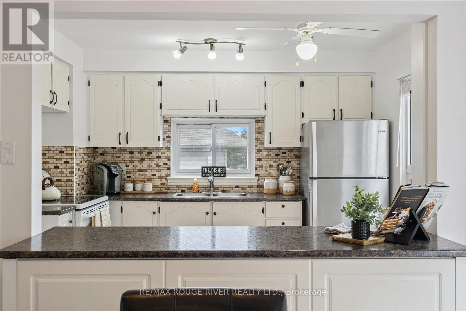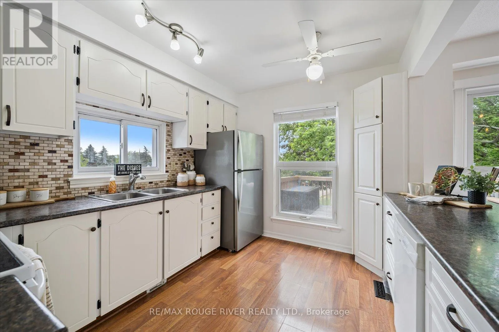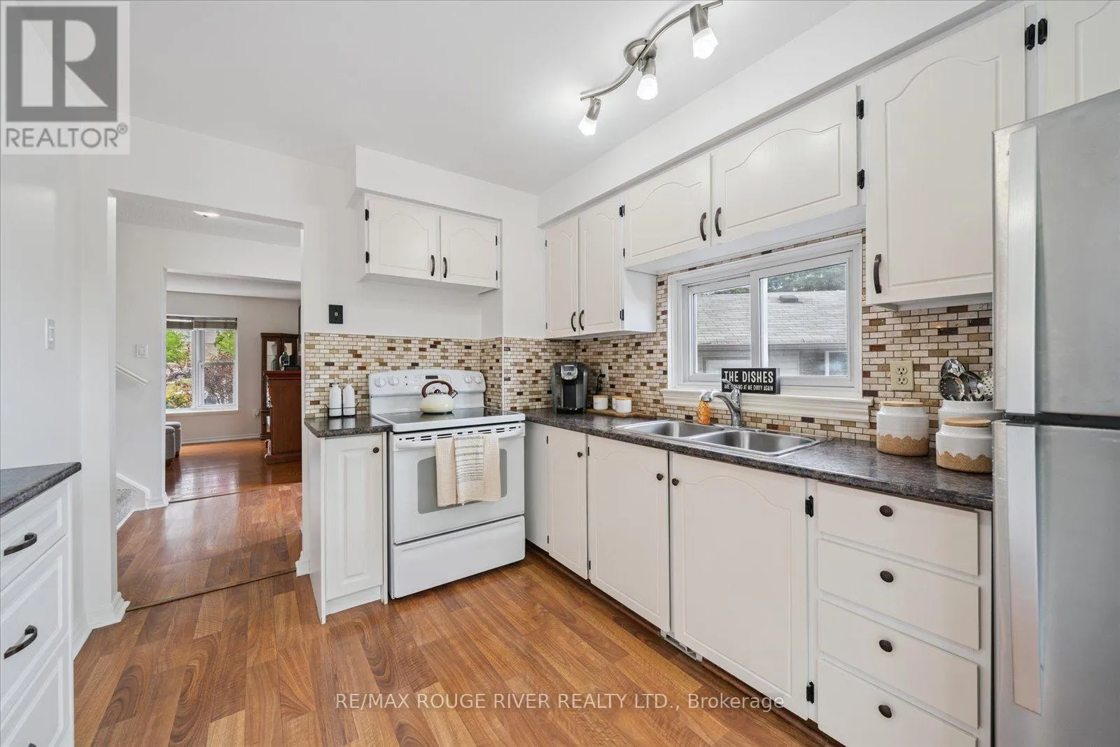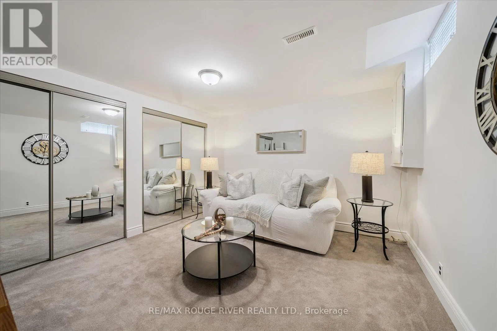 Harmony Rd/ Rossland Rd Open House November 22nd 1-3pm. Offers anytime. Welcome to this well maintained 3 bedroom semi-detached home nestled in a quiet, family oriented neighbourhood - just steps to schools, scenic parks, and walking/biking trails. Enjoy the convenience of being minutes from Highway 401/407, shopping, transit, and all amenities. With no neighbours behind or on one side, you'll enjoy added privacy and peaceful surroundings. Step inside to a bright and spacious living room featuring a large bay window that fills the space with natural light. The functional kitchen overlooks the dining area, which offers seamless indoor-outdoor living with a walk-out to a private backyard deck - perfect for entertaining or relaxing with family. Upstairs you'll find three good sized bedrooms, including a primary bedroom with double closets for ample storage, along with a full 4-piece bathroom featuring a tub, shower and updated vanity. The finished basement offers a versatile recreation room, additional storage space, and a convenient 2-piece bathroom - ideal for growing families or work-from-home needs. Outside the property boasts a widened driveway with plenty of parking and a separate, standalone oversized garage - complete with the potential for heated floors. The additional fenced-in front yard space is perfect for kids, pets, or added outdoor enjoyment. Recent upgrades include the furnace, air conditioner, roof shingles, central vacuum, and leaf guards on the gutters, offering peace of mind and comfort for years to come. Don't miss your chance to call this move-in-ready gem your home! (id:27476)