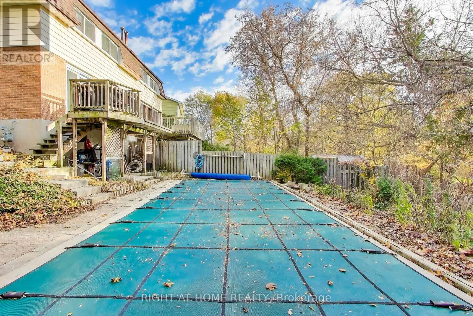 Hillcroft/Wilson Enjoy more space and privacy with this ravine-lot semi featuring an inground pool and a quiet court location. The home maintains its original 4-bedroom layout, with two adjoining rooms currently set up as a bedroom plus bonus sitting/play space, along with two additional bedrooms.The main floor includes a bright living room, separate dining room, powder room, and walkout to the deck. The unfinished walk-out basement with side entrance offers storage and future potential. Updates include broadloom (2022), shingles (2020), furnace + A/C (2013), pool pump (2022), and an ESA-certified panel (2022). Steps to schools, parks, transit, shops, and the 401. (id:27476)