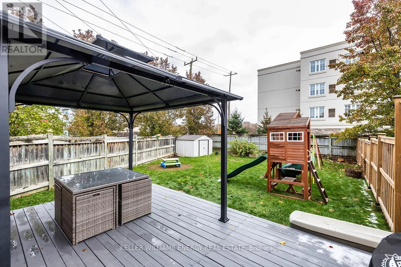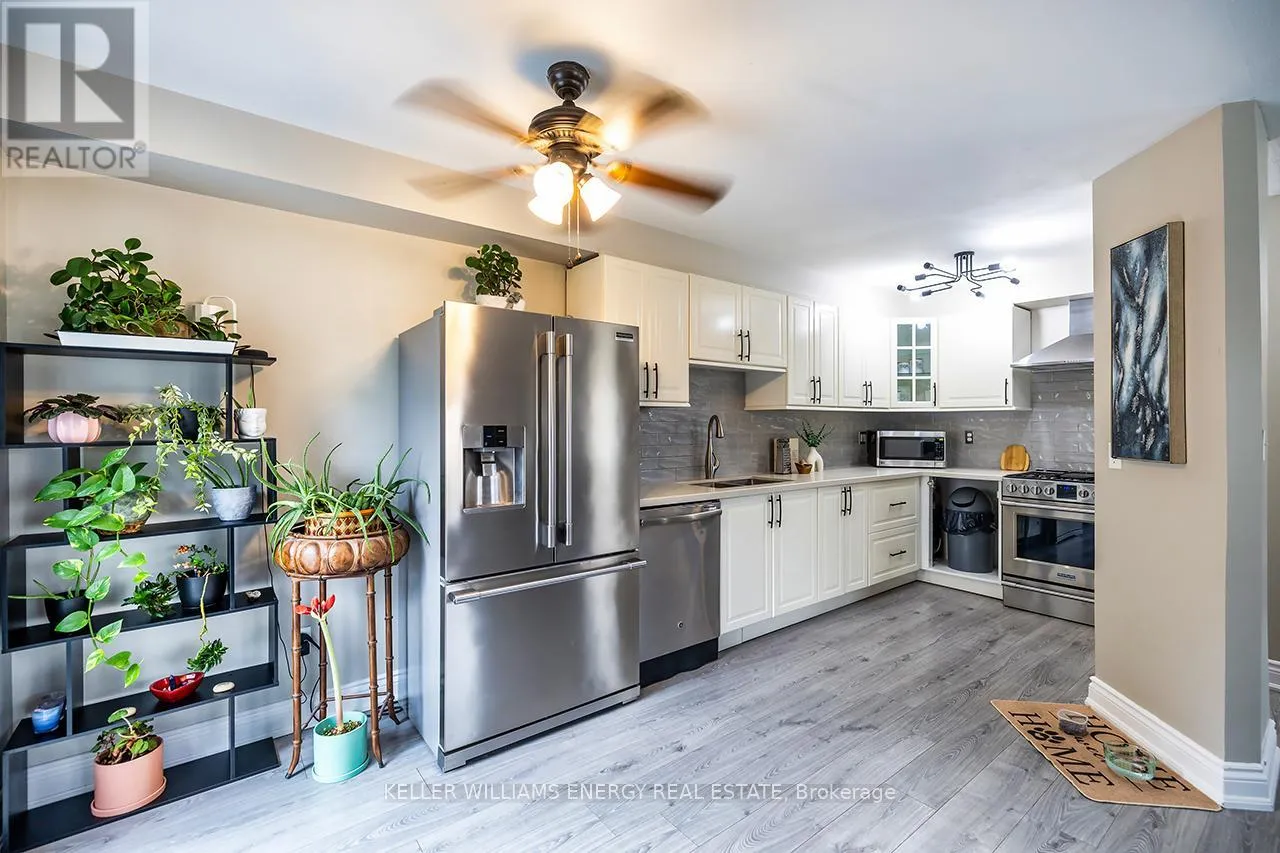 Woodmount and Ritson Pride of ownership shines in this bright, spacious end unit townhome that offers, the comfort and privacy of a semi, with room to grow! Situated on an impressive 44.55 x 134.26 ft lot, this home blends comfort, versatility, and style in one of Oshawa's most sought-after family communities.Step inside to a bright open-concept main floor featuring a renovated kitchen with quartz counters, stylish backsplash, tons of counter space, pot and pan drawers, gas stove, stainless steel appliances and a walkout to a private pool sized backyard, ideal for mornng coffee, summer barbecues or creating your dream outdoor space. The combined living and dining area is warm and inviting, complete with a gas fireplace and large windows that fill the space with natural light. A convenient powder room is tucked away on the main level, and the versatile front family room (currently set up as a hair salon) offers endless possibilities - home office, playroom, creative studio or cozy retreat! Upper level, you'll find a spacious primary bedroom with a walk-in closet and private 3-piece ensuite, along with two additional great sized bedrooms and another modern 3-piece bath. The lower level expands your living space, with an office, recreation room, laundry area, and a large multi-purpose room that could serve as a guest suite, hobby room or teenager's retreat (note: no closet).There's also ample storage throughout, perfect for the growing family. Enjoy peace of mind in a highly desired school district with parks, shopping, trails, and transit all nearby. Complete with a single-car garage and ample driveway parking, this home truly offers the best of North Oshawa living! Spacious,Stylish,Family-Friendly. Don't miss your chance to call this one home! (id:27476)