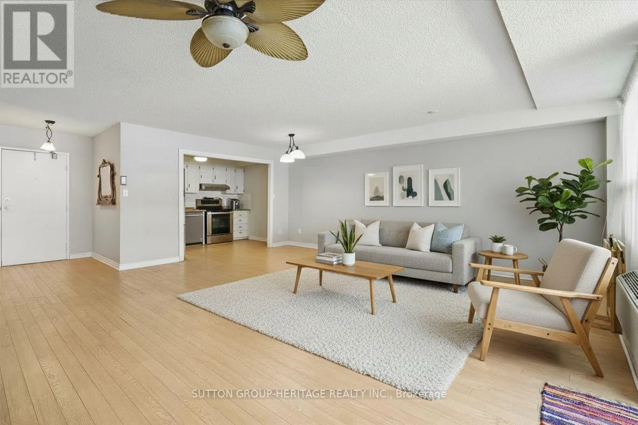 Bond/Mary Welcome to this exceptionally large 2-bedroom, 2-bathroom condo offering outstanding value in a central location close to all amenities, transit, shopping, and dining. This bright and airy unit features wall-to-wall windows and two walk-outs to a 40-foot balcony overlooking a beautifully landscaped courtyard and gardens perfect for relaxing or entertaining. Enjoy the convenience of being on the same floor as premium building amenities, including an indoor swimming pool, workshop, and laundry facilities. With generous living spaces, natural light, and a functional layout, this condo is ideal for downsizers, first-time buyers, or anyone seeking space and comfort in a well-maintained building. condo fees include water, Cable and Internet. Please note the blue tarps are temporary - maintenance underway (id:27476)
