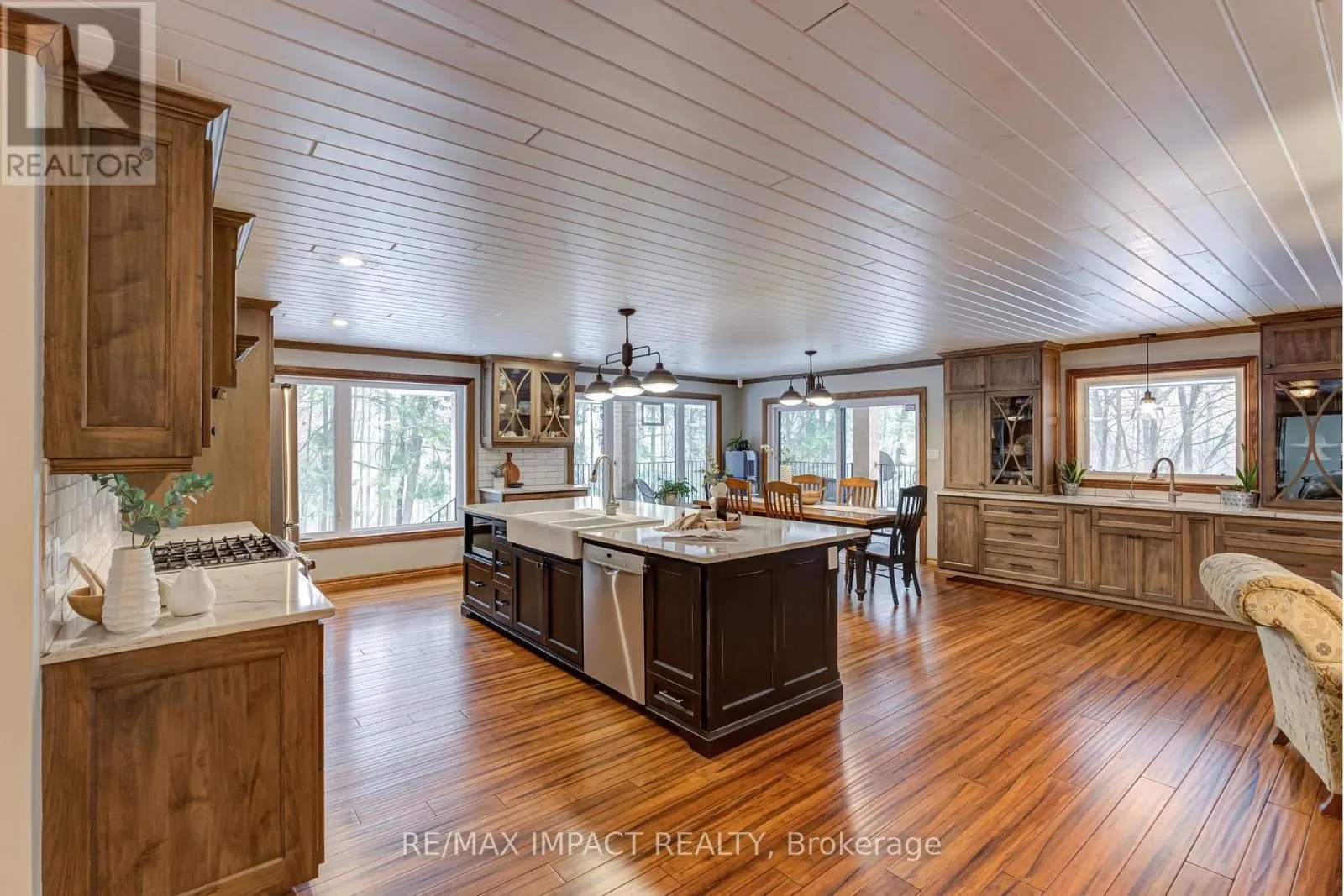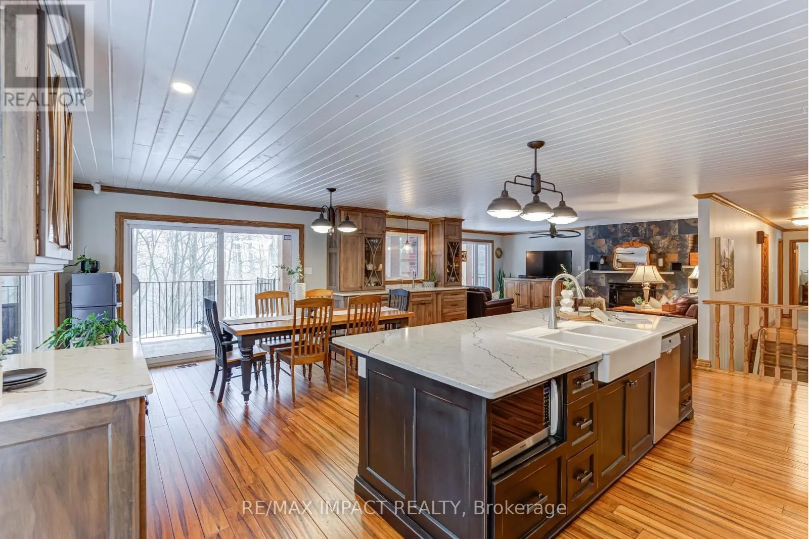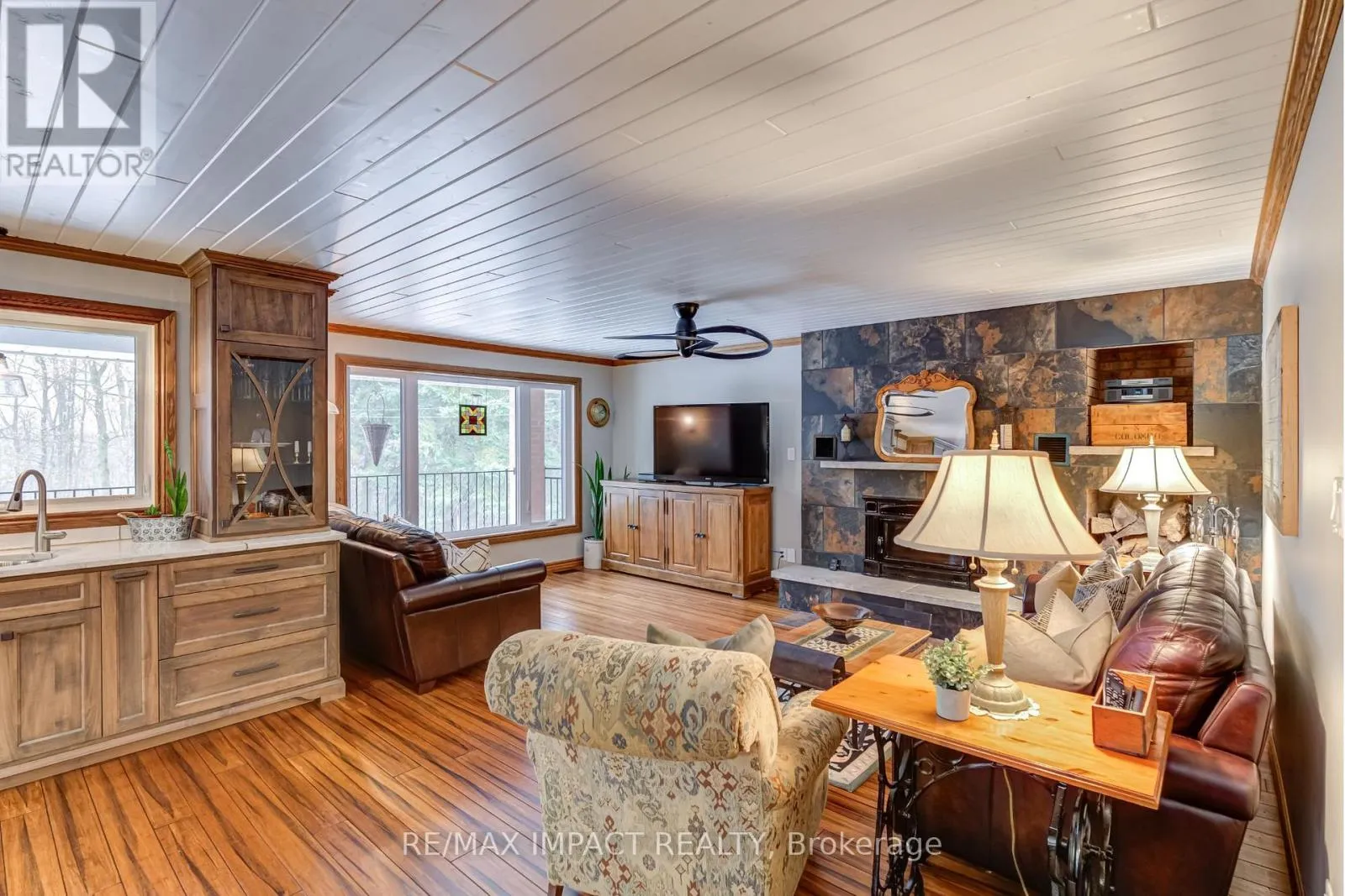 Cross Streets: Simcoe St N/Raglan Rd W. ** Directions: North on Simcoe Street North, West onto Raglan Road West. Discover the tranquility of country living in this beautiful brick raised bungalow, nestled privately away from the road on 25 acres, featuring 2 road frontages and bordered by the Oshawa Creek along the west boundary. There's a myriad of trails, ideal for exploring the natural surroundings of wildlife, white pine, Norway spruce, European larch, red oak, sugar maple and black walnut trees, currently under a Managed Forest Plan which reflects in lower taxes. This home features an over-sized double garage and charming 1-bedroom apartment with separate front entrance, perfect for multi-generational families or in-law suite. This ground level unit offers privacy and convenience, making it an ideal space for extended family members or guests (not retrofitted). As you enter through the custom 9' arched door elegantly framed by a matching arched side lite, there is a sunken foyer that leads to an open-concept kitchen/dining/great room accented with a Belgian White Ale pine ceiling and expansive triple pane/Low E windows, highlighting the extensive renos/updates completed in the last decade. Enhancing the culinary experience is an impressive kitchen with huge centre island, quartz counters, breakfast bar, s/s appliances, custom coffee bar and custom dining room cabinet, plus a butler's pantry with built-in wine fridge. Walkout to an inviting protected wrap-around deck or relax in the hot tub. The great room is equipped with an efficient hybrid catalytic wood insert, boasting modern technology and traditional design. The primary suite has a sitting area, walk-in closet and luxurious marble finished ensuite where you can unwind in a soaker tub set in a picturesque bay window or indulge in the spacious shower with rainhead. The main level also includes 2 good-sized secondary bedrooms, each featuring a walk-in closet. Throughout the home, there are beautiful oak doors/trim and some trendy flooring that includes hand-scraped bamboo hardwood, travertine and porcelain tiles. (id:27476)