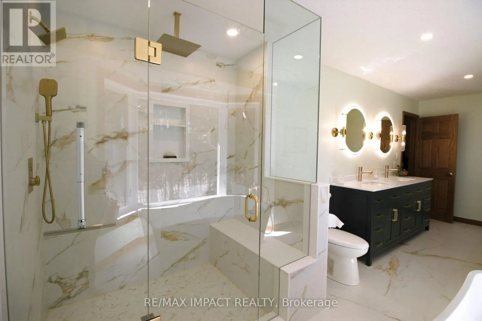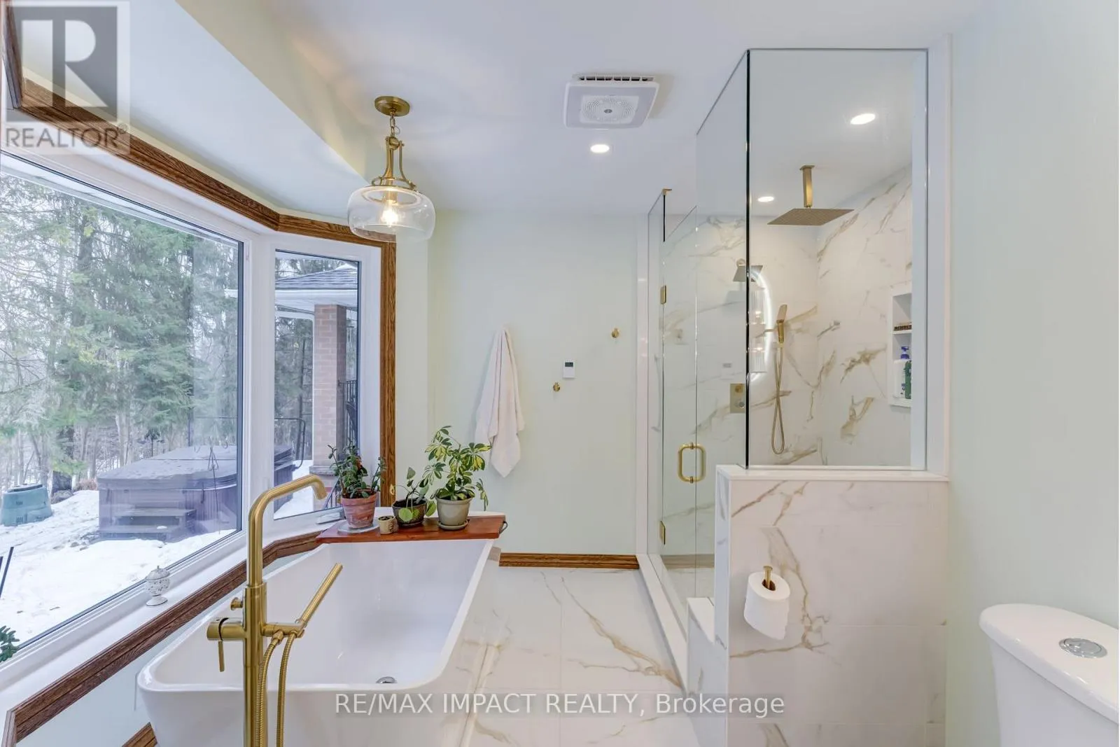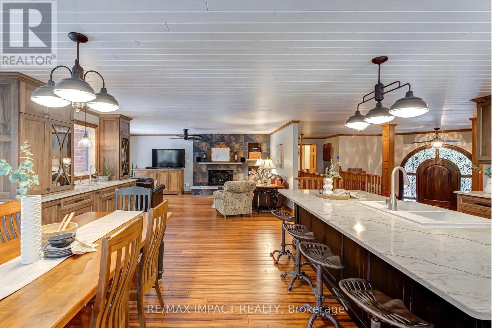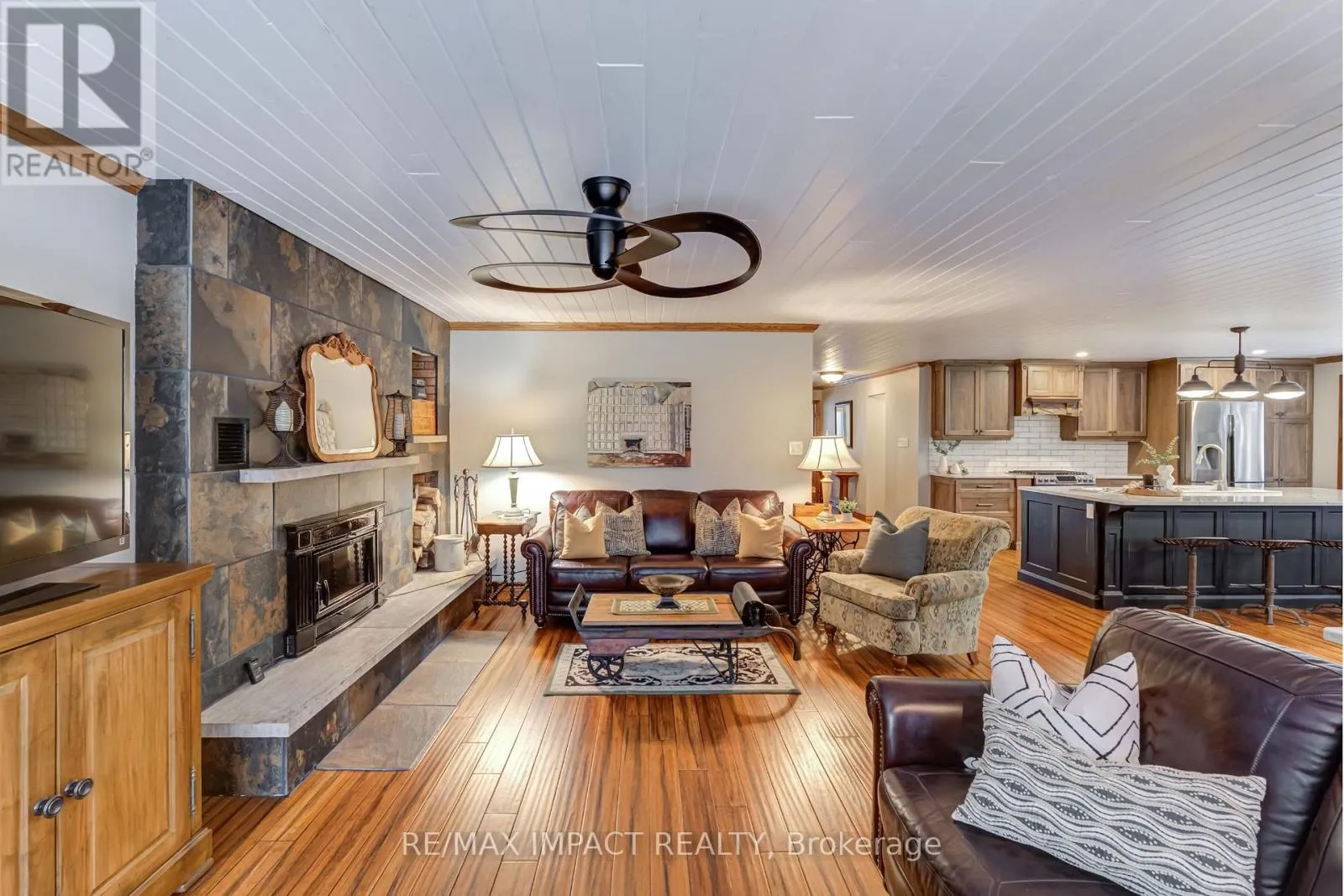 Cross Streets: Simcoe St N/Raglan Rd W. ** Directions: North on Simcoe Street North, West onto Raglan Road West. Discover the tranquility of country living in this beautiful brick raised bungalow, nestled privately away from the road on 25 acres, featuring 2 road frontages and bordered by the Oshawa Creek along the west boundary. There's a myriad of trails, ideal for exploring the natural surroundings of wildlife, white pine, Norway spruce, European larch, red oak, sugar maple and black walnut trees, currently under a Managed Forest Plan which reflects in lower taxes. This home features an over-sized double garage and charming 1-bedroom apartment with separate front entrance, perfect for multi-generational families or in-law suite. This ground level unit offers privacy and convenience, making it an ideal space for extended family members or guests (not retrofitted). As you enter through the custom 9' arched door elegantly framed by a matching arched side lite, there is a sunken foyer that leads to an open-concept kitchen/dining/great room accented with a Belgian White Ale pine ceiling and expansive triple pane/Low E windows, highlighting the extensive renos/updates completed in the last decade. Enhancing the culinary experience is an impressive kitchen with huge centre island, quartz counters, breakfast bar, s/s appliances, custom coffee bar and custom dining room cabinet, plus a butler's pantry with built-in wine fridge. Walkout to an inviting protected wrap-around deck or relax in the hot tub. The great room is equipped with an efficient hybrid catalytic wood insert, boasting modern technology and traditional design. The primary suite has a sitting area, walk-in closet and luxurious marble finished ensuite where you can unwind in a soaker tub set in a picturesque bay window or indulge in the spacious shower with rainhead. The main level also includes 2 good-sized secondary bedrooms, each featuring a walk-in closet. Throughout the home, there are beautiful oak doors/trim and some trendy flooring that includes hand-scraped bamboo hardwood, travertine and porcelain tiles. (id:27476)