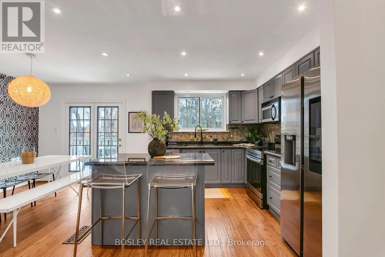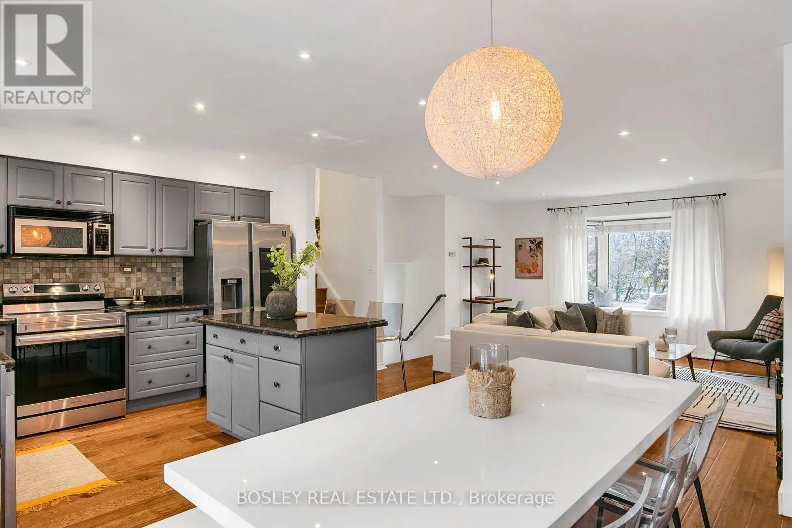 Cross Streets: KEEWATIN ST. AND OLIVE AV. ** Directions: KEEWATIN ST. SOUTH & OLIVE AVE. Nestled in a tranquil cul-de-sac just steps from ravine trails and protected parkland, this inviting family home is where peaceful surroundings and everyday adventure meet. 1003 Hawthorne Court offers the best of both worlds - a serene natural setting steps from trails and parkland, yet minutes from every urban convenience. This inviting 2-storey side split blends charm, comfort, and functionality across each space. Freshly painted with all-new main floor hardwood flooring, the home opens to a bright, open-concept kitchen, dining, and living area featuring a wood-burning fireplace is ideal for everyday living or relaxed entertaining. A cozy lower-level family room with an electric fireplace provides a perfect retreat, while a versatile den offers work-from-home flexibility. Upstairs features three comfortable bedrooms, each filled with natural light. Step outside to a large fenced backyard designed for easy enjoyment - a spacious porch and deck overlook the in-ground swimming pool and a tidy garden shed ready for tools or toys. The attached garage is a dream for auto or DIY enthusiasts, complemented by parking for four more on the private drive. Centrally located near grocers, shops, and cafés as well as local school and recreational/community centres, and just minutes to Highway 401, this Donevan-community gem combines peaceful cul-de-sac living with everything Durham has to offer. (id:27476)