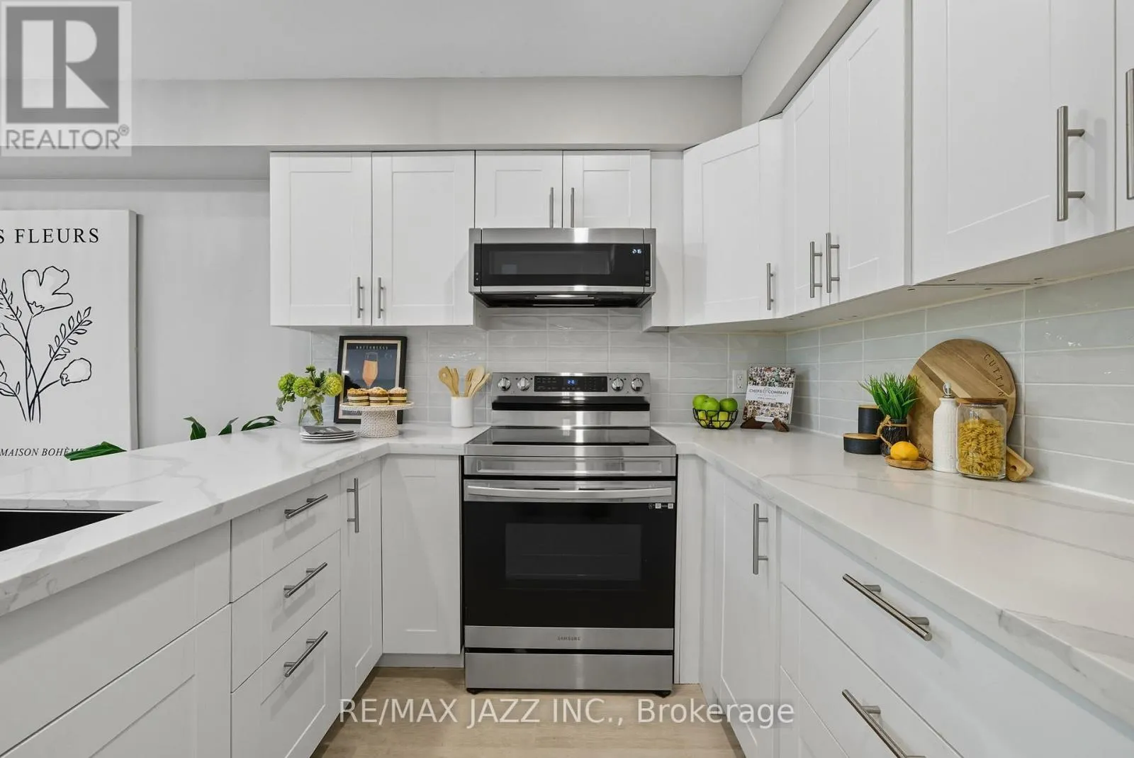 Rossland Rd E/Wilson Rd N Welcome to this beautifully renovated condo townhome in desirable North Oshawa. Updated from top to bottom, this home offers stylish finishes and modern conveniences throughout. Inside you'll find new luxury vinyl plank flooring, pot lights throughout, modern baseboards, and no carpet, offering a sleek and low-maintenance interior. The upgraded kitchen boasts quartz counters, a tiled backsplash, sleek cabinetry, an undermount stainless steel sink with a touch-activated faucet, and stainless steel appliances - all just three years old. On the main level, a modernized 2-piece bath offers practicality and style, while the upper floor is home to a fully renovated 4-piece bathroom with contemporary upgrades. The finished basement extends the living space with the added bonus of a new 2-piece bath, perfect for guests or family convenience. Thoughtful updates continue with new windows and exterior doors, an inviting interlock walkway and front step and brand new furnace and air conditioner (November 2025). Step outside to your own private retreat, where nature is at your doorstep. Backing onto a peaceful ravine and the Harmony Creek walking trail, the backyard offers a serene, secluded setting with no neighbours behind. Relax or entertain on the updated deck while surrounded by trees and the sounds of nature. Low condo fees, a family-friendly neighbourhood, and a prime location within walking distance to shopping, parks, trails and transit make this property an ideal choice for first-time buyers or downsizers alike. (id:27476)