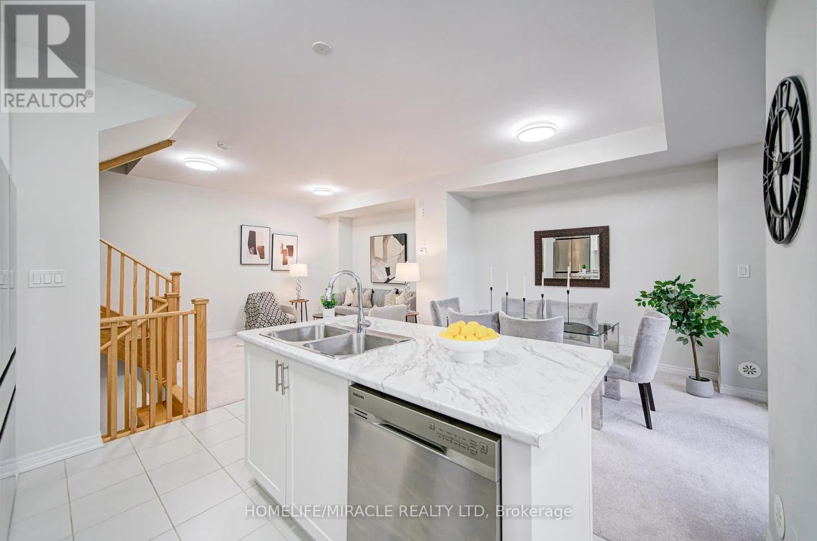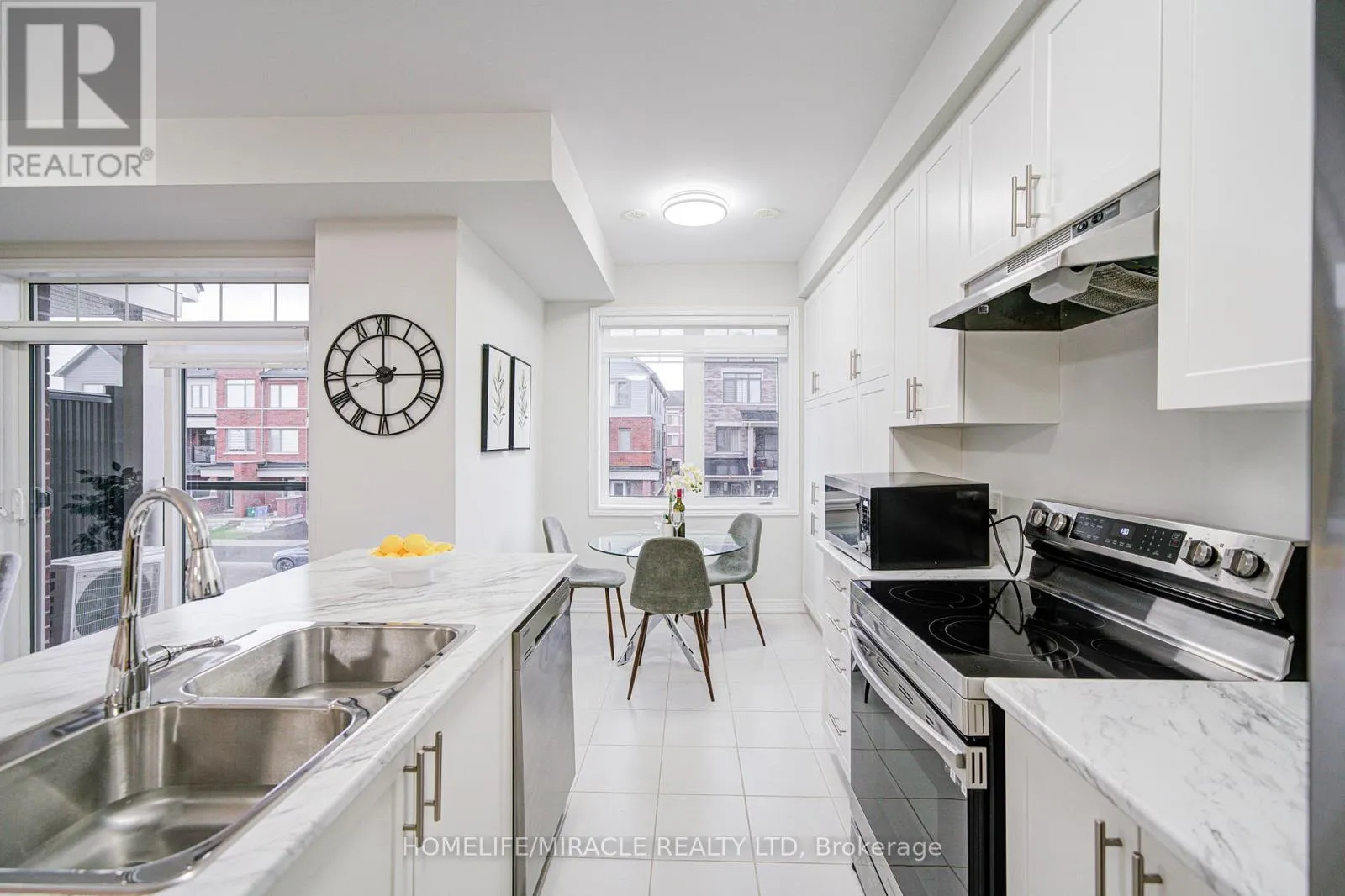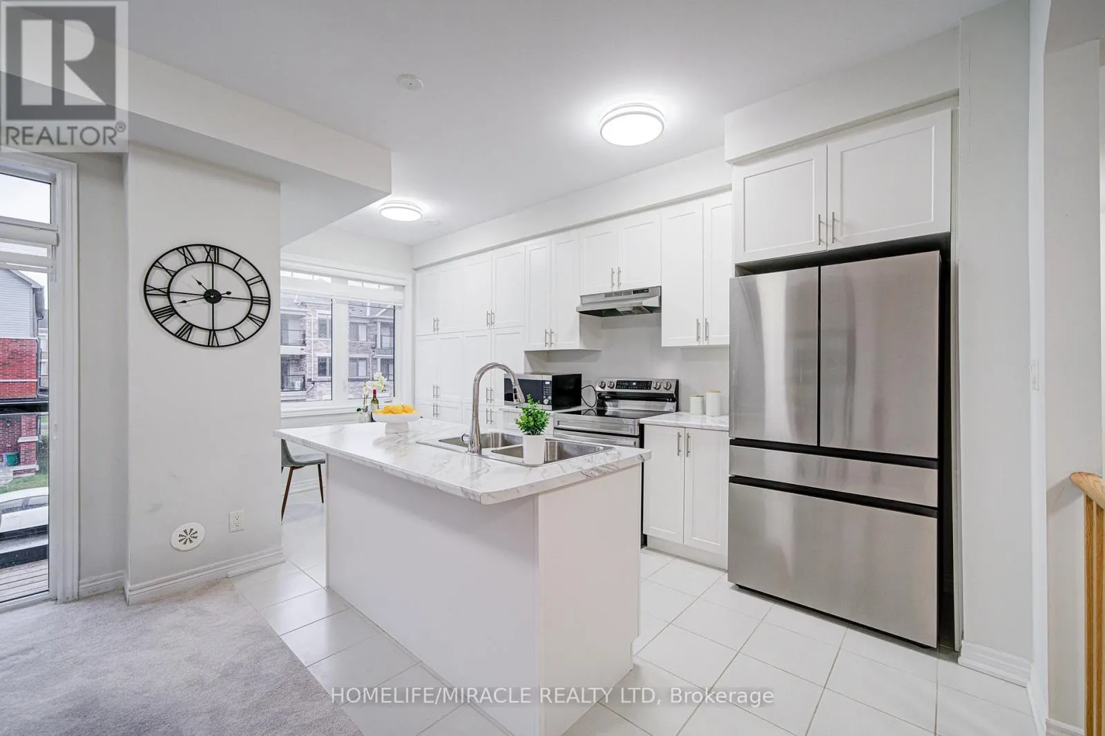 Cross Streets: Harmony Rd N & Conlin Rd E. ** Directions: Harmony Rd N and Conlin Rd E. Elegant Freehold Townhouse in Kedron, Oshawa. Welcome to modern living in one of Oshawa's most desirable neighbourhoods Kedron. This stylish freehold townhouse combines space, convenience, and contemporary design. Main Floor: Open-concept layout with a convenient laundry area and a 2-piece bathroom. Second Level: Soaring 9-foot ceilings highlight a sleek, contemporary kitchen featuring stainless steel appliances, a large island, and a pantry. The adjoining breakfast, living, and dining spaces are bathed in natural light from oversized windows and a patio door. Third Level: A bright and spacious primary bedroom with a walk-in closet, complemented by two well-sized additional bedrooms. Perfectly situated near Highway 407, public transit, schools, and parks. Just minutes from Ontario Tech University and Durham College, plus everyday amenities including Costco, Walmart, FreshCo, Home Depot, Superstore, LCBO, and Cineplex. This home offers the ideal blend of style, functionality, and unbeatable location. (id:27476)