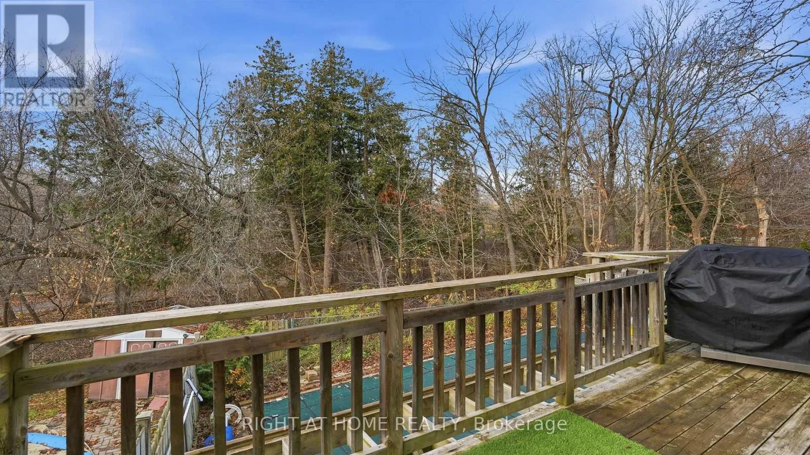 Hillcroft/Wilson Enjoy more space and privacy with this ravine-lot semi featuring an inground pool and a quiet court location. The home maintains its original 4-bedroom layout, with two adjoining rooms currently set up as a bedroom plus bonus sitting/play space, along with two additional bedrooms.The main floor includes a bright living room, separate dining room, powder room, and walkout to the deck. The unfinished walk-out basement with side entrance offers storage and future potential. Updates include broadloom (2022), shingles (2020), furnace + A/C (2013), pool pump (2022), and an ESA-certified panel (2022). Steps to schools, parks, transit, shops, and the 401. (id:27476)