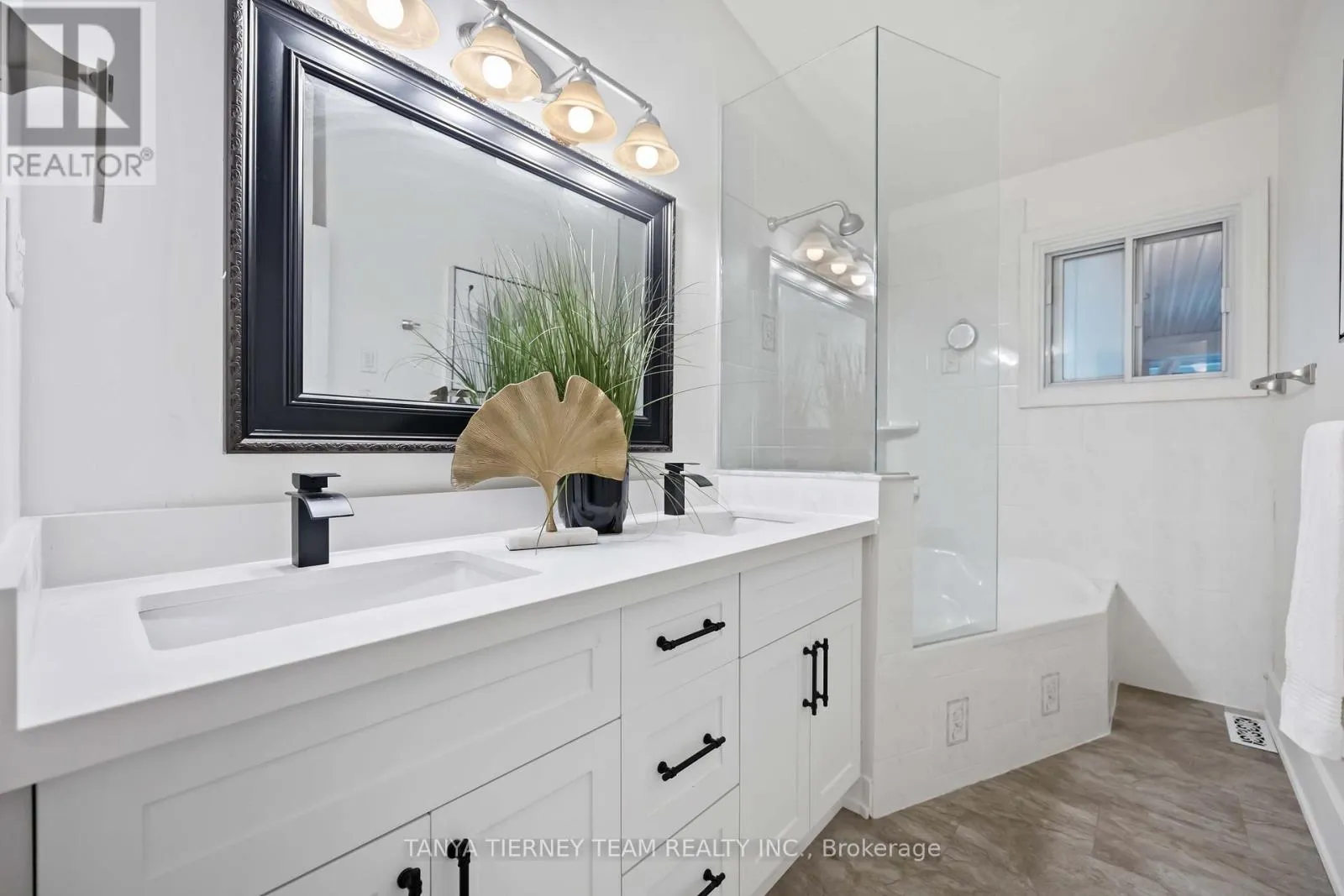 Simcoe & Robert St Legal Duplex on a Premium 50x134 Ft Lot in One of Oshawa's Most Desirable Neighbourhoods! This well maintained home sits on a mature, private lot and offers two bright, spacious units - perfect for investors, multi-generational families, or those seeking extra income. The main level features an open-concept layout with a welcoming family room, large picture window and charming vaulted beam ceiling. The generous kitchen includes a tile backsplash, plenty of cabinetry, pantry and a comfortable breakfast area. Three well-sized bedrooms and a stylishly updated 4-piece bath featuring a quartz vanity, soaker tub and glass-enclosed shower complete the upper level. The legal lower-level unit boasts large above-grade windows that fill the space with natural light. It offers a spacious bedroom with walk-in closet, an eat-in kitchen with convenient walk-up access to the yard, a mudroom with additional storage and a 3-piece bath - ideal for extended family or rental potential. Outside, enjoy the private, fully fenced backyard with mature gardens, two storage sheds and a patio perfect for relaxing or entertaining. A carport plus driveway parking for up to 5 vehicles adds exceptional convenience. Located in a sought-after neighbourhood close to groceries, transit, parks, schools, restaurants, and more. A rare opportunity to own a turn-key legal duplex on a premium lot - don't miss it! (id:27476)