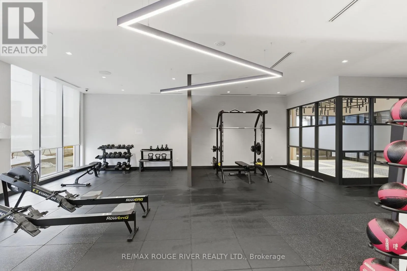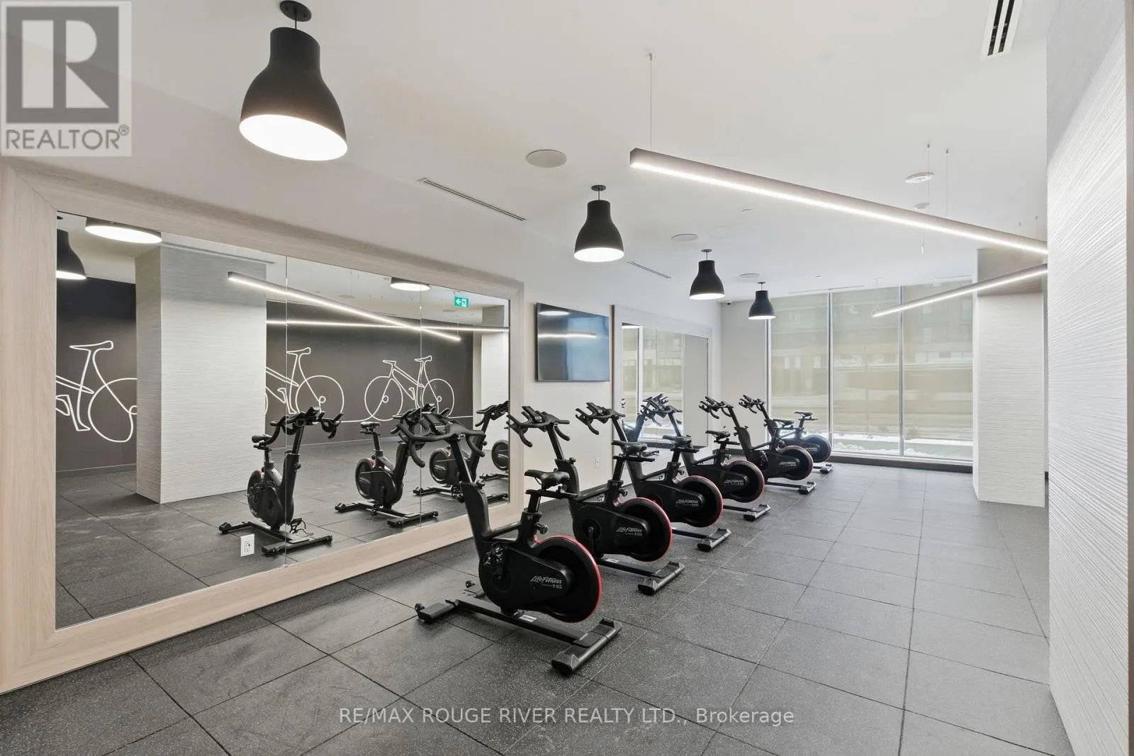 SIMCOE AND WINDFIELDS Imagine coming home to a space that works as hard as you do-where style meets function, and every detail is designed for the way you actually live. This modern 1+1 bedroom 1 bath condo at U.C. Tower 2 (2545 Simcoe St N) offers the perfect blend of contemporary design, low-maintenance convenience, and an unbeatable lifestyle in Oshawa's highly sought-after Windfields community. Perched on the 23rd floor with west exposure, this unit boasts stunning views and breathtaking sunsets that transform your living space into a daily escape. Step into a spacious open-concept layout bathed in natural light from floor to ceiling windows that create a bright, welcoming atmosphere perfect for both everyday living and entertaining friends. The upgraded kitchen is a standout-featuring sleek stainless steel appliances, elegant quartz countertops, modern cabinetry, and generous storage with a clean, streamlined design that makes cooking a pleasure. Flow seamlessly from kitchen to living area, then step out onto your private balcony overlooking the vibrant community below with those incredible west-facing views. Whether it's morning coffee with a view, evening downtime after a long day, or simply added outdoor living space, this balcony becomes your personal retreat. The primary bedroom offers a comfortable sanctuary with a large closet for all your storage needs, while the versatile den adapts to your lifestyle-perfect as a home office, dedicated study or reading nook, hobby space, or even occasional guest quarters. Plus, enjoy the convenience of in-suite laundry, and your owned underground parking spot for secure, weather-protected parking year-round. U.C. Tower 2 offers exceptional amenities including two fully-equipped gyms, spin studio, yoga studio, business lounge, private study pods, co-working spaces, theatre room, games lounge, kids play area, outdoor terrace with BBQ stations, concierge service, guest suites, secured bike storage, dog park, and a pet spa with dog wash room. (id:27476)