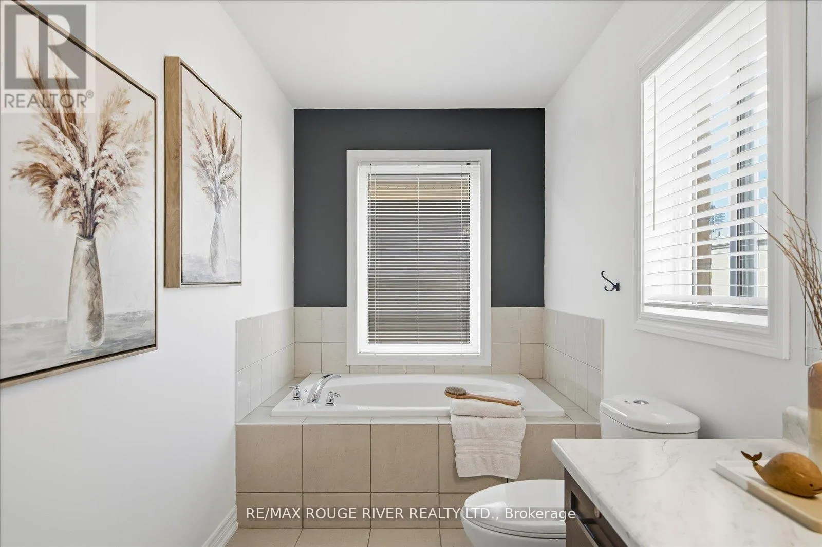 Simcoe St N/Britannia St Welcome to this stunning 4 bedroom, 4-bathroom home offering over 3,000 sq. ft. of finished living space in a Sought-after North Oshawa community. Every detail has been thoughtfully designed for modern living, combining elegance, functionality, and warmth throughout. The kitchen features quartz countertops, stainless steel appliances, and updated light fixtures, creating the perfect space for cooking and entertaining. The bright, open-concept main floor showcases neutral paint tones, large windows, and a seamless flow between living and dining areas. Spacious and bright, the second floor offers a cathedral ceiling and walkout balcony making it an ideal bonus space for a media room, office, playroom or 4th bedroom. The primary suite is a true retreat with a walk-in closet and a luxurious ensuite featuring a relaxing soaker tub. The finished basement includes built-in shelving, an electric fireplace, and ample space for recreation or a home gym. Outside, enjoy a backyard deck with a gas BBQ hookup and beautifully maintained landscaping, perfect for summer gatherings. Nestled in a quiet, family-friendly community, this home is close to parks, trails, public transit, Ontario Tech University, Durham College, and shopping conveniences including Costco. It is also zoned for highly ranked schools, with new elementary and secondary schools opening in September 2026, and offers easy access to Highways 407 and 412 for commuters. (id:27476)