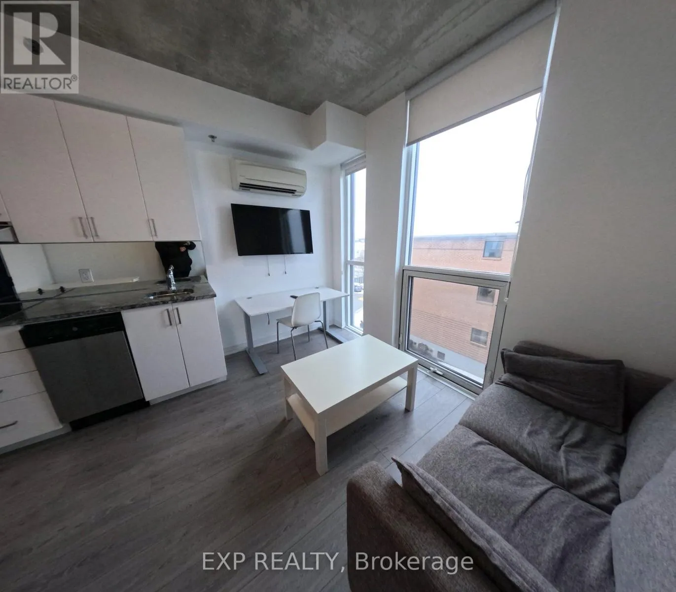 Cross Streets: Simcoe/Conlin. ** Directions: Exit 401 Go North Pass Taunton, Building On Left. Exit 407 Go South Pass Conlin And Durham College Building On Right, Gas Station Next To Building. Move-in ready, fully furnished studio near Ontario Tech & Durham College. Includes built-in Murphy bed, couch, dedicated study setup, wardrobe/cabinets, kitchenette with stainless steel appliances, TV, window coverings, private 3-pc bath, and ensuite laundry. Building amenities feature a fitness centre, media room, study lounges/rooms, meeting room and social spaces. Close to transit, restaurants, Costco, shopping and Hwy 407. Wi-Fi included (per building services). (id:27476)