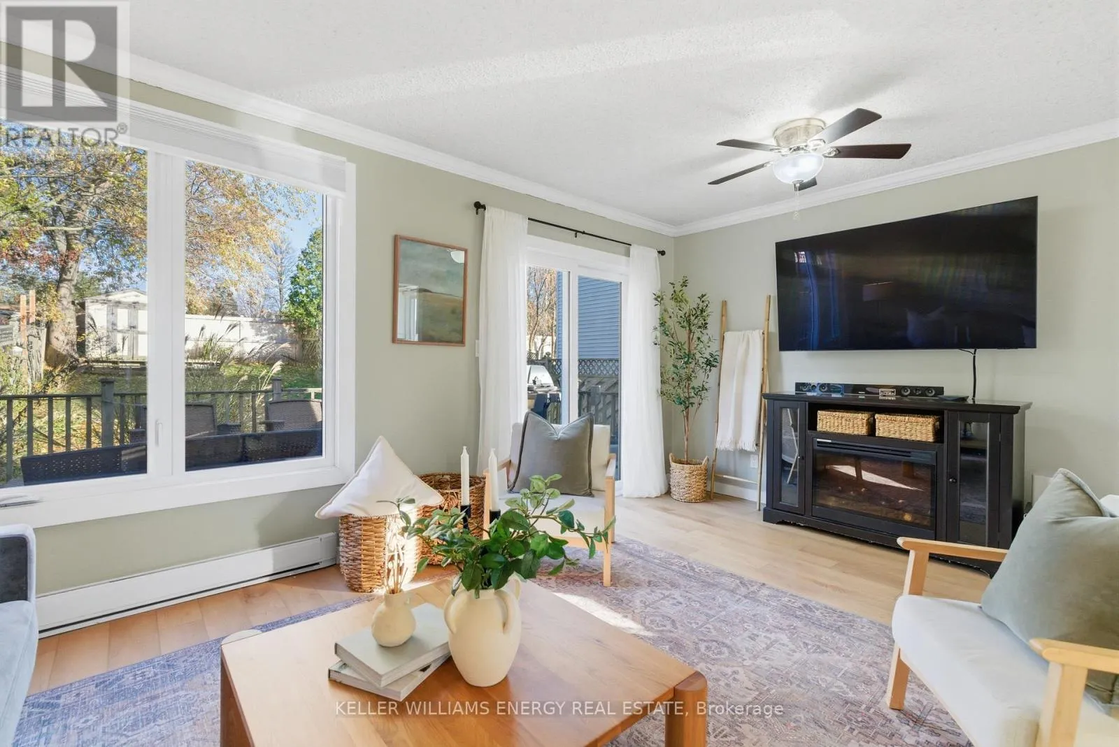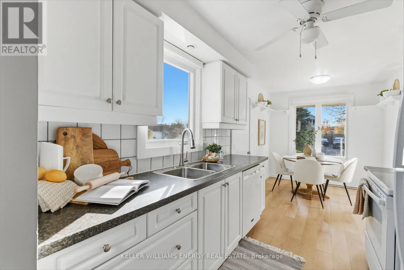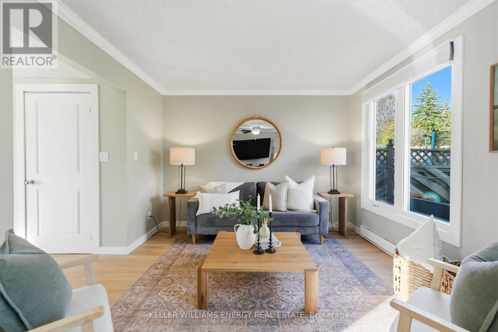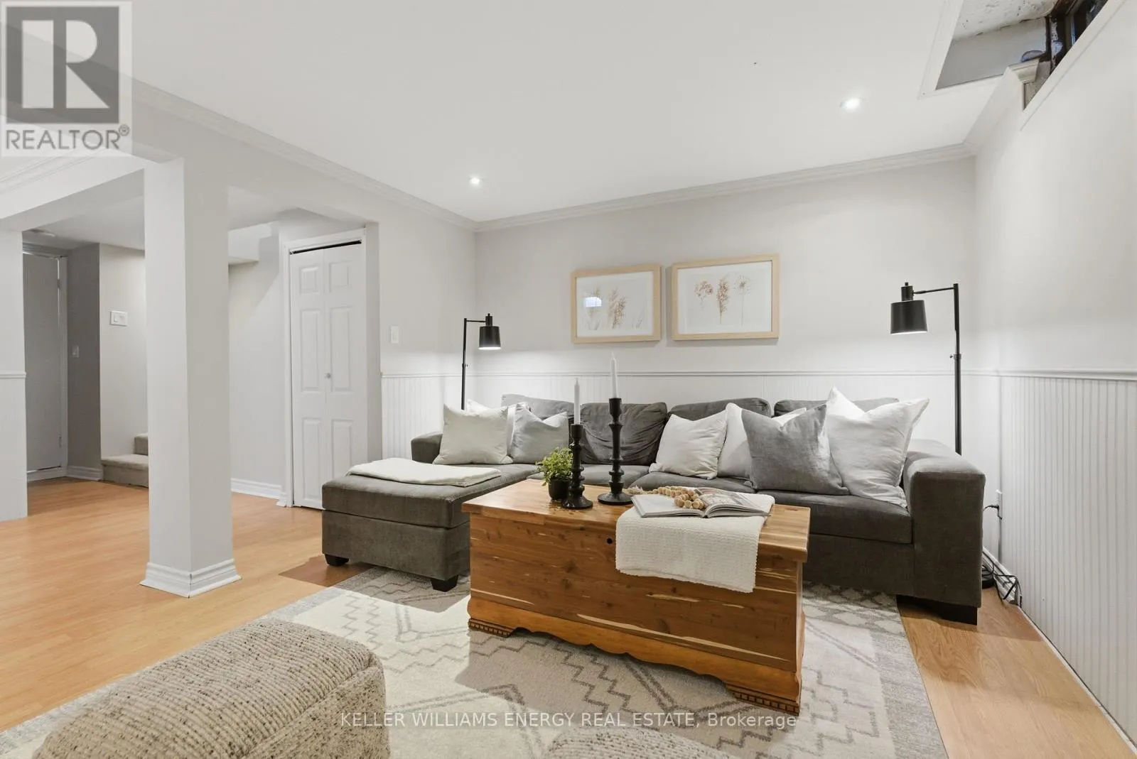 King St W & Thornton Rd N Located On A Family-Friendly Street In A Highly Convenient Neighbourhood, This Home Is Ideal For First-Time Buyers Or Those Looking To Downsize! Enjoy A 146Ft Deep Lot With No Rear Neighbours For Added Privacy. The Main Level Offers Vinyl Flooring Throughout, A Bright, White, Eat-In Kitchen With Large Windows Overlooking The Front Yard And A Side Door Leading Directly To The Driveway. The Living Room Features Crown Moulding And A Walkout To The Deck And Spacious, Fully Fenced Backyard, Perfect For Relaxing Or Entertaining. Upstairs, You'll Find Three Bedrooms, Including A Primary Bedroom With Two Windows And A Double Closet. A 4-Piece Main Bathroom With A Skylight Fills The Space With Natural Light. The Finished Basement Provides An Excellent Additional Living Area And Includes A 2-Piece Bathroom With An Existing Rough-In For A Shower. Outside, The Fully Fenced Backyard Includes A Deck And Three Sheds, One Equipped With Electricity And Located At The Back Of The Yard For Added Convenience. Close To Shopping, Schools, And Transit, This Is A Wonderful Opportunity To Make This Charming Home Your Own! EXTRA: Roof (2022), Windows On Main & 2nd Floor (2023), Front Door (2023), Side Door In Kitchen (2023), Sliding Door In Living Room (2023), Main Floor Flooring (2025). *See Attached Fact Sheet For All Upgrades & Dates. (id:27476)