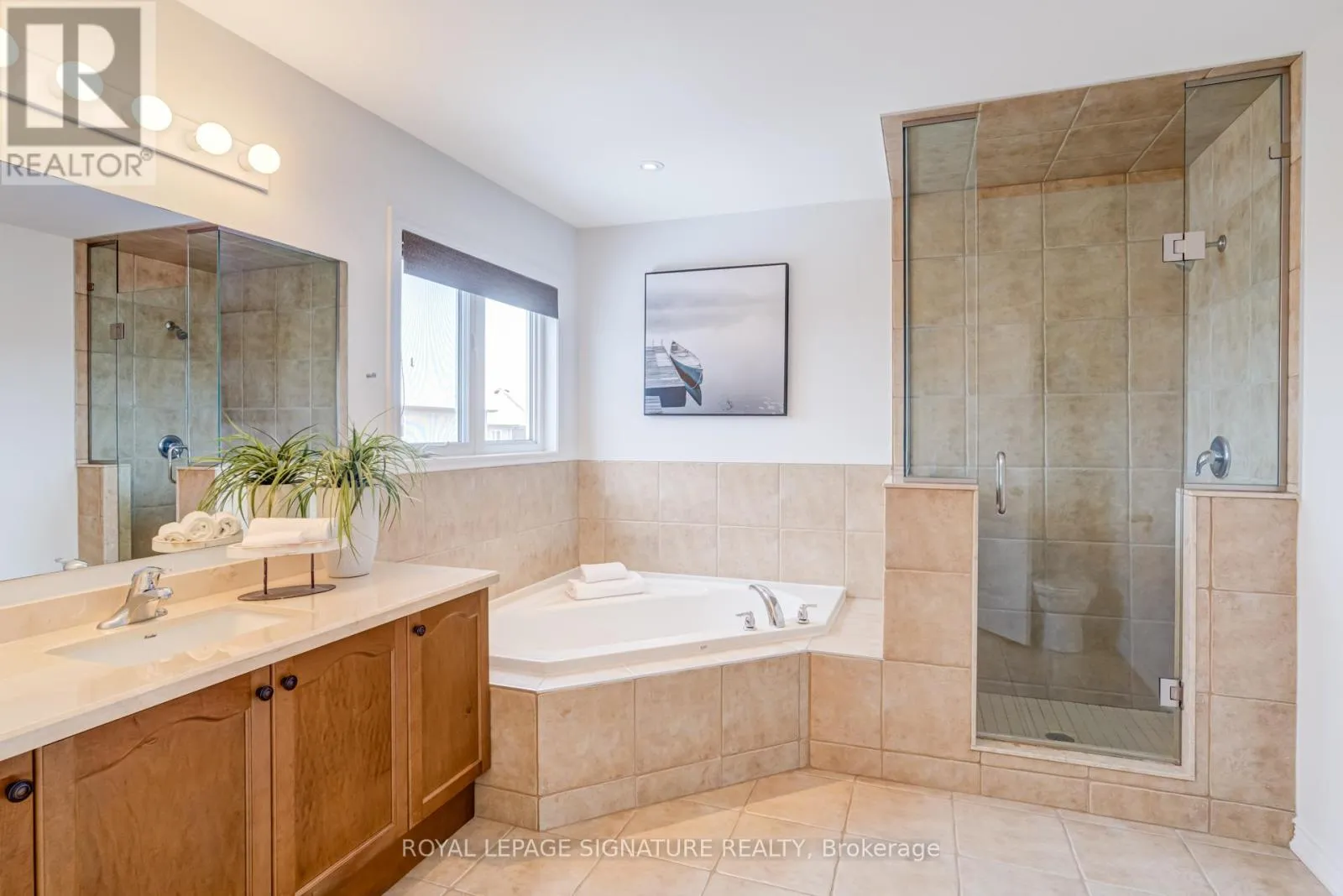 Kettering/Townline First time on the market! Beautifully maintained 3-bedroom detached home located on a quiet cul-de-sac in the highly sought-after North Oshawa Eastdale neighbourhood. Freshly painted throughout, the home features an open-concept main floor with pot lights and a modern kitchen offering ample pantry space, breakfast bar with contemporary lighting, granite countertops, stylish backsplash, stainless steel appliances, and a gas stove. The cozy family room includes a gas fireplace, creating a warm and inviting living space. The dining area provides direct access to an oversized deck and private backyard, ideal for entertaining, summer BBQs, or relaxing outdoors. Upstairs, enjoy three spacious bedrooms, including a generous primary retreat with a 4-piece ensuite, marble vanity, and soaker tub. The unfinished basement, complete with a rough-in for a washroom, offers excellent potential for future living space, home office, or recreation area. Additional features include an attached 1-car garage, stamped concrete driveway with parking for up to four vehicles, and pride of ownership throughout. Conveniently located close to schools, parks, shopping, and everyday amenities. (id:27476)
