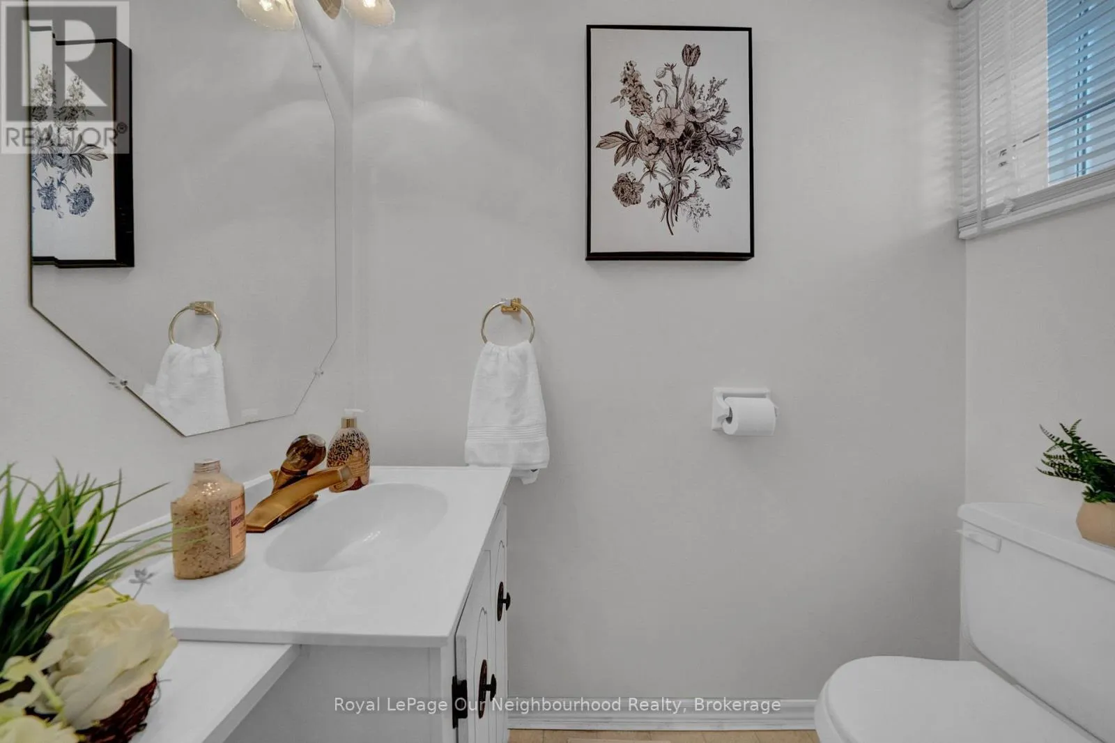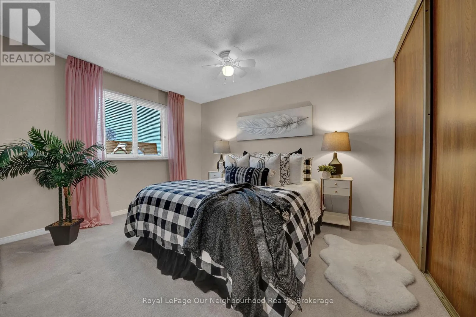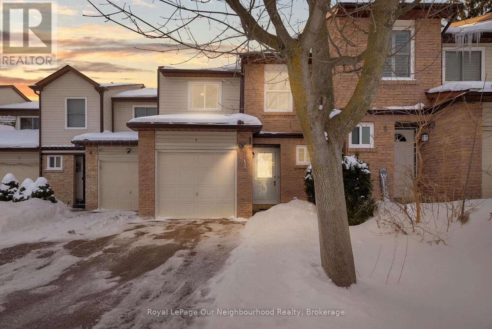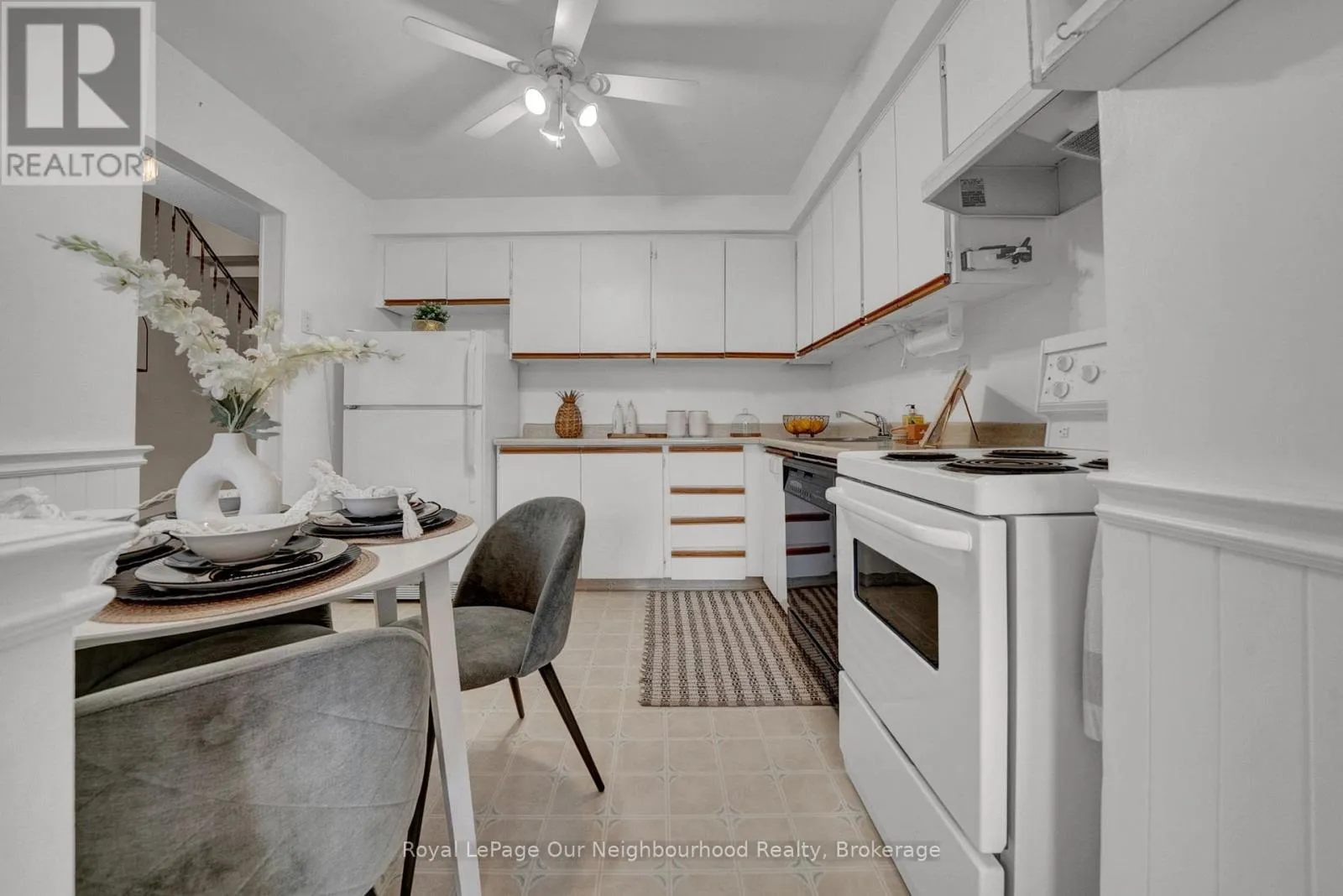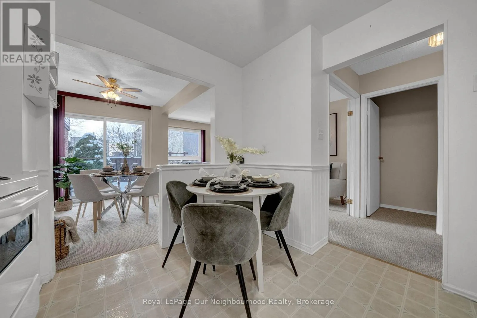 Cross Streets: Ritson/Beatrice. ** Directions: Beatrice St E to North on Trowbridge Dr. Warm and welcoming 2-storey condo townhouse in a family-friendly neighbourhood. Lovingly maintained and full of potential, this home offers an eat-in kitchen overlooking the dining room, with a sliding door walkout to a private patio, a great place for morning coffee or summer BBQs. The dining area flows into the living room featuring a cozy gas fireplace & French doors, an inviting layout for everyday living. Upstairs you will find three bedrooms, including a spacious primary with an oversized closet and 4pc semi ensuite. The lower level offers a partially finished basement with a rec room and retro bar area - ideal for movie nights, hobbies, or hosting friends. (id:27476)
