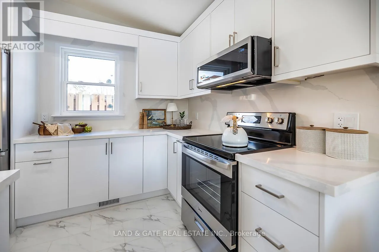 Cross Streets: Phillip Murray Ave & Cedar St. ** Directions: Cedar St & Phillip Murray Ave. Welcome to 1377 Cedar St! A beautifully recently renovated 3-level side split finished top to bottom with no detail overlooked. This bright and spacious home offers a perfect blend of modern style and functional living. The stunning brand new renovated kitchen (2025) features a large centre Island breakfast bar, a large pantry offering plenty of storage, quartz countertops and backsplash, all brand new stainless steel appliances (2025) creating a sleek and contemporary space ideal for everyday living and entertaining. The open concept living and dining area is filled with natural light enhanced by pot lights throughout. This home offers 3 generous size bedrooms and 2 fully renovated bathrooms (2025). The finished basement includes a large rec room, providing the perfect space for a family room, home office or play area, with a spacious crawl space providing ample storage. Entire home is freshly painted throughout (2025), All New Windows & Doors (2025), Siding, soffits, leaf guards, fascia, downspouts (2025), Furnace , Air Conditioner, & hot water tank (2025), Updated electrical panel 200 amp service (2025), Additional highlights include an EV car charger & plug adding convenience. This move in ready home is perfect for buyers looking for quality, comfort, and style. Steps to the lake, close to all amenities, transit, rec centre and highways. (id:27476)