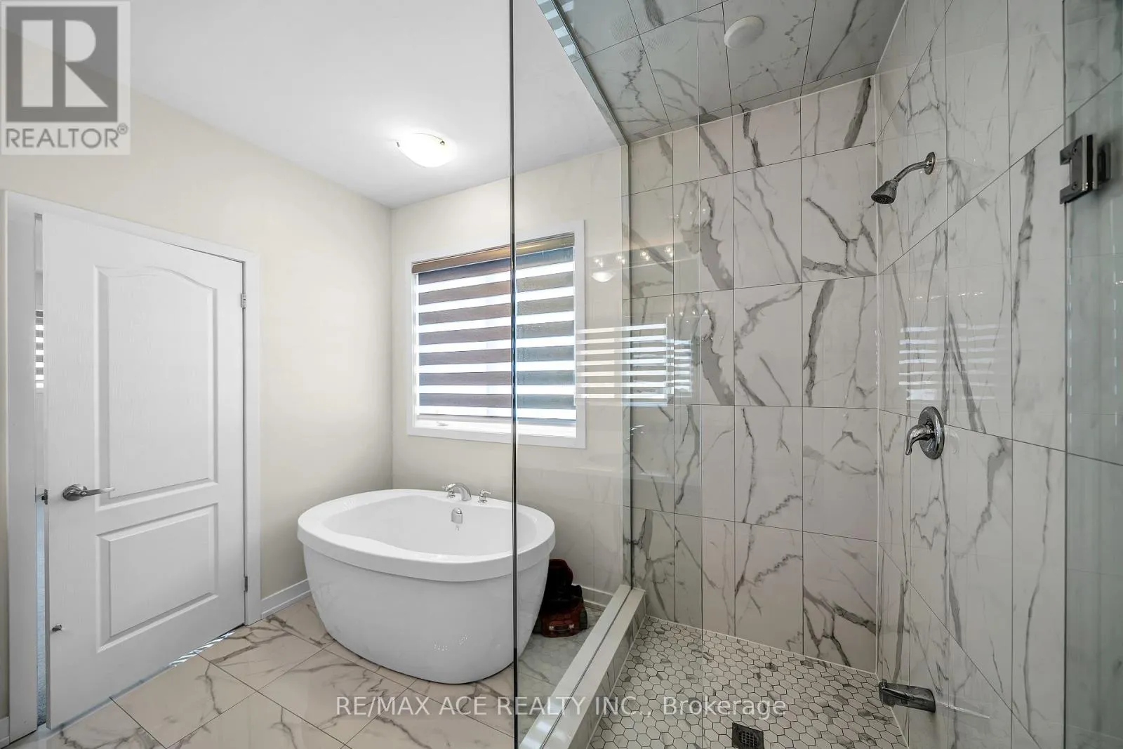 Harmony Road and Conlin Road Welcome to this stunning 2024-built brick and stone home located in the desirable Kedron community. The bright, open-concept main floor features hardwood flooring, a gas fireplace, abundant natural light, and spacious living and family rooms. With 12' ceilings throughout the main floor, a double-door entrance, 2-car garage, and a corner lot, this home makes a striking first impression. The kitchen includes a built-in oven and gas cooktop, perfect for a chef-inspired lifestyle. The second floor offers 5 bedrooms and 3 washrooms, including a primary bedroom with walk-in closet and a 4-piece ensuite. The partially finished basement with separate entrance provides excellent potential for a future apartment or additional living space. Conveniently located close to Highway 407, this home offers the perfect blend of style, comfort, and convenience. (id:27476)