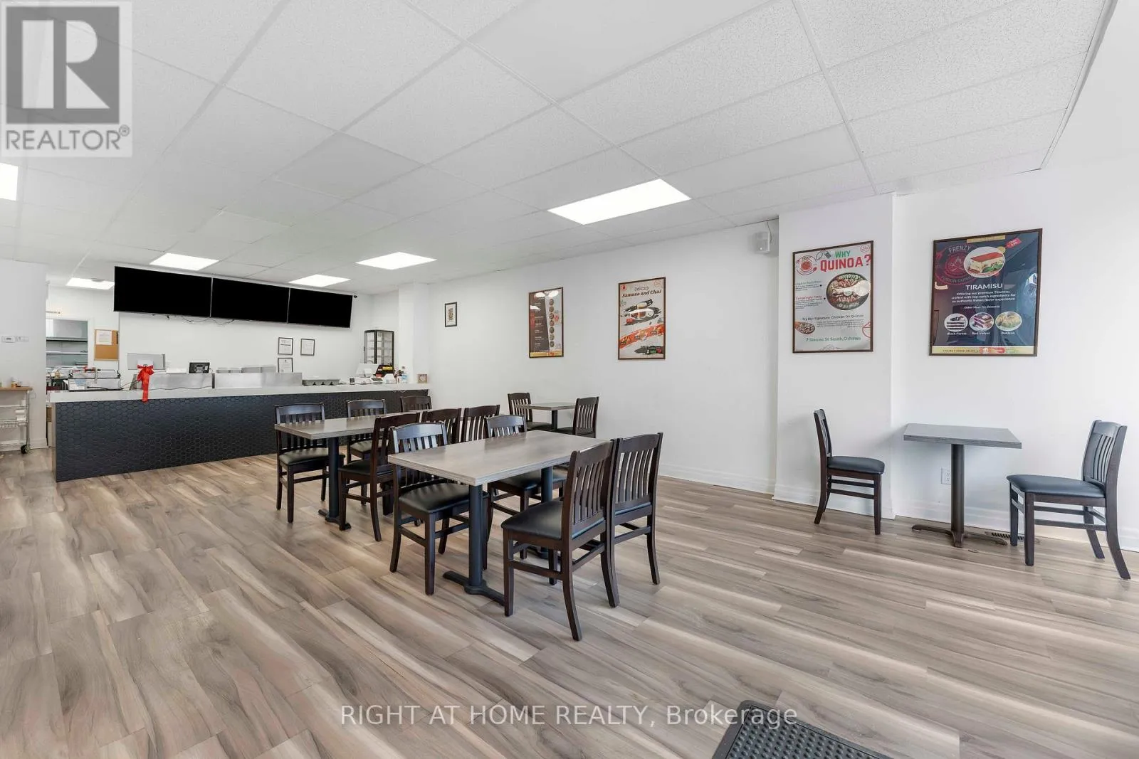 Cross Streets: Simcoe / King. ** Directions: S. Be your own boss, Commercial zoning permits many uses, currently set up as a fully functional dine-in Restaurant with 30 seats capacity. Excellent Exposure, Great downtown location on busy high traffic Simcoe St. Close to businesses, Offices, Tribute Center, College campus and new developments. Bring your Skills and Creativity to enhance your business in newly decorated place in downtown Oshawa. All new Leasehold improvements done in 2022/2024: New 8' exhaust hood & fan, Fire Suppression system, Fryer, Walk-in-cooler, chest freezer, prep tables, three compartment sink with grease trap, basement fire-proofed. 2 new Washrooms-one accessible. New Furnace & HWT and much more. (id:27476)