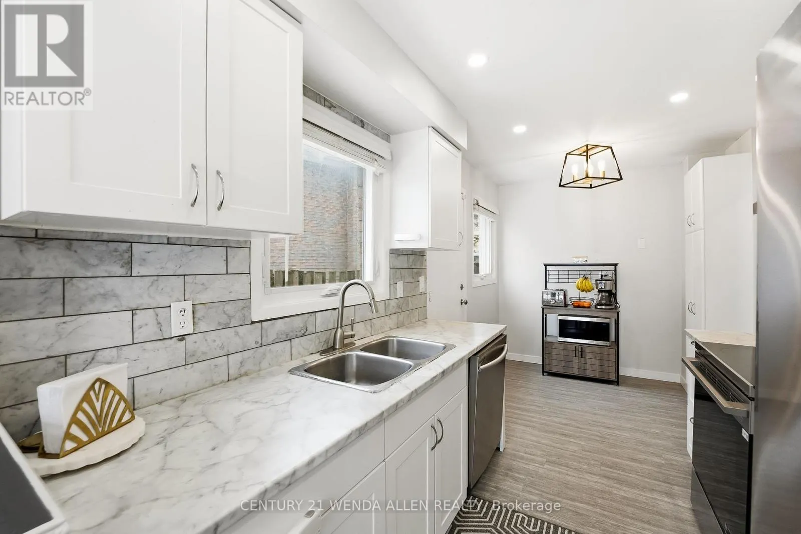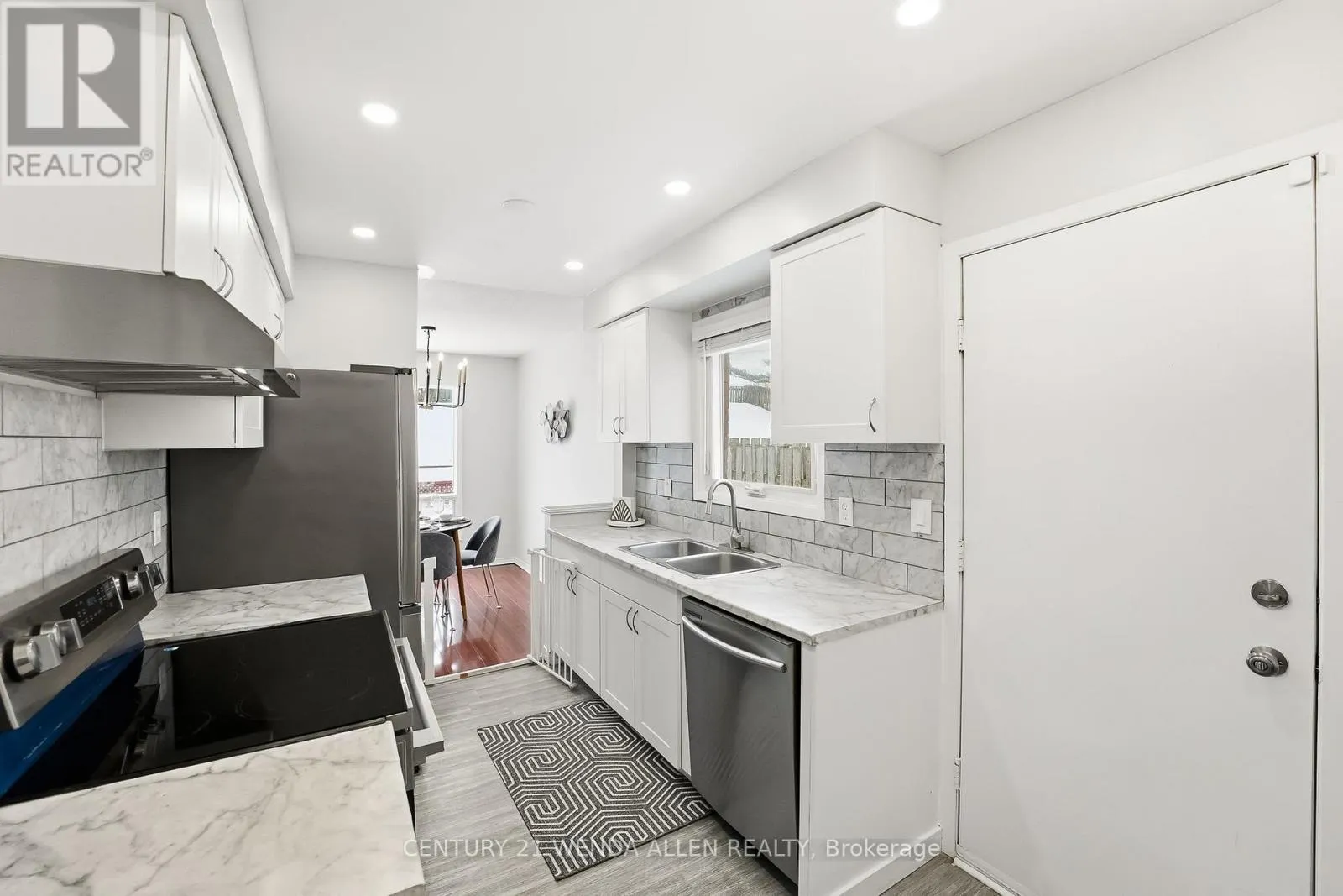 Cross Streets: Bloor & Townline. ** Directions: Townline Rd S / Bloor. Beautiful 3 bedroom detached home situated on a quiet court in a prime family-oriented neighborhood. This move-in-ready gem sits on a large private lot with new shingles for lasting peace of mind.Main floor features an updated kitchen with newer stainless steel appliances, a bright combined dining/living room with hardwood floors, convenient 2-piece bath, and pot lights throughout the entire home for a modern, well-lit feel.Walk out to a fully fenced backyard oasis with a large deck and excellent privacy.Upstairs offers new laminate flooring and an updated 4-piece bath. The fully finished basement provides added living space-perfect for a family rec room or more.Fully detached above ground (link home classification), ideal for peaceful family living in a sought-after area! Roof 2025, Fridge 2023, Washer & Dryer 2025, Stove 2025 ** This is a linked property.** (id:27476)