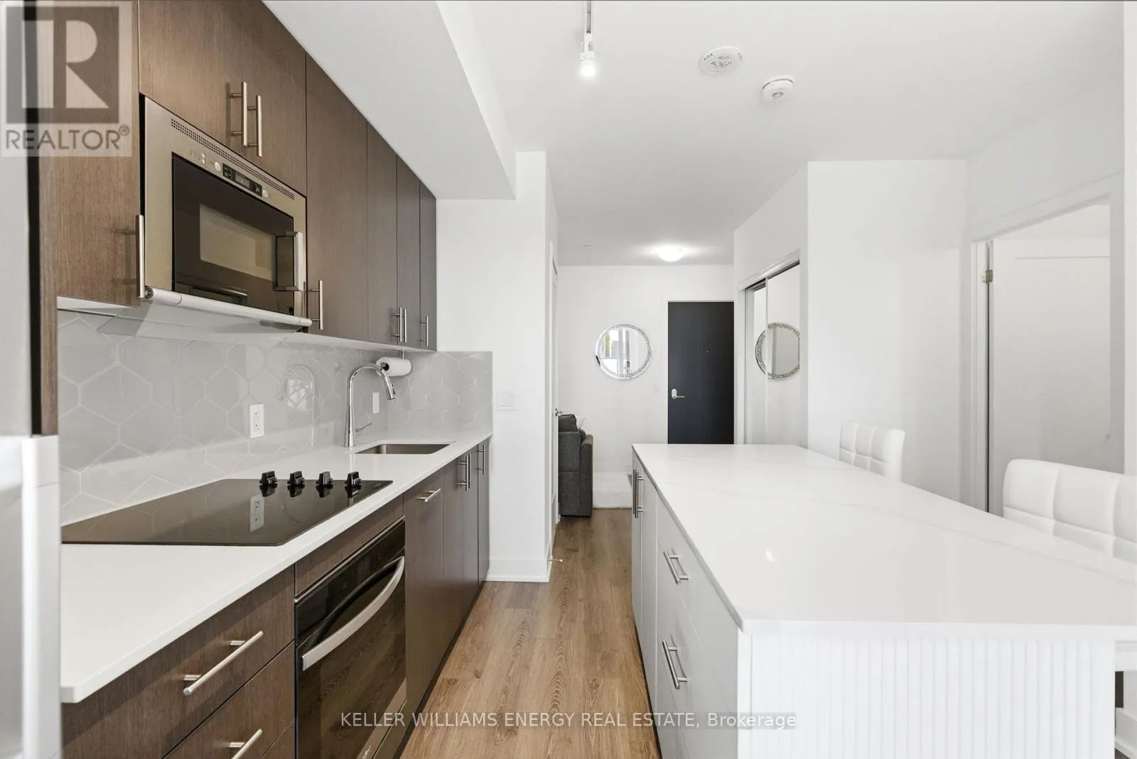 Simcoe St N & Windfields Farm Dr Thoughtfully designed and beautifully finished, this 1 bedroom plus den, 2 full bathroom condo offers a sophisticated living experience with a highly functional layout. The open-concept kitchen features quartz countertops, stainless steel appliances, and an eat-in island, flowing seamlessly into a generous living and dining area filled with natural light and direct access to a private balcony. The separate den provides flexibility for a home office or an additional living space, while the primary bedroom is complete with a spacious, spa-inspired ensuite. This suite also includes a coveted underground parking space.Residents enjoy access to premium building amenities, including concierge service, fitness and yoga studios, lounges, party space, rooftop outdoor areas, and guest suites. Ideally located steps to shopping, dining, and Costco, and minutes to Durham College and Ontario Tech University, with easy access to Highways 407, 412, and 401. (id:27476)