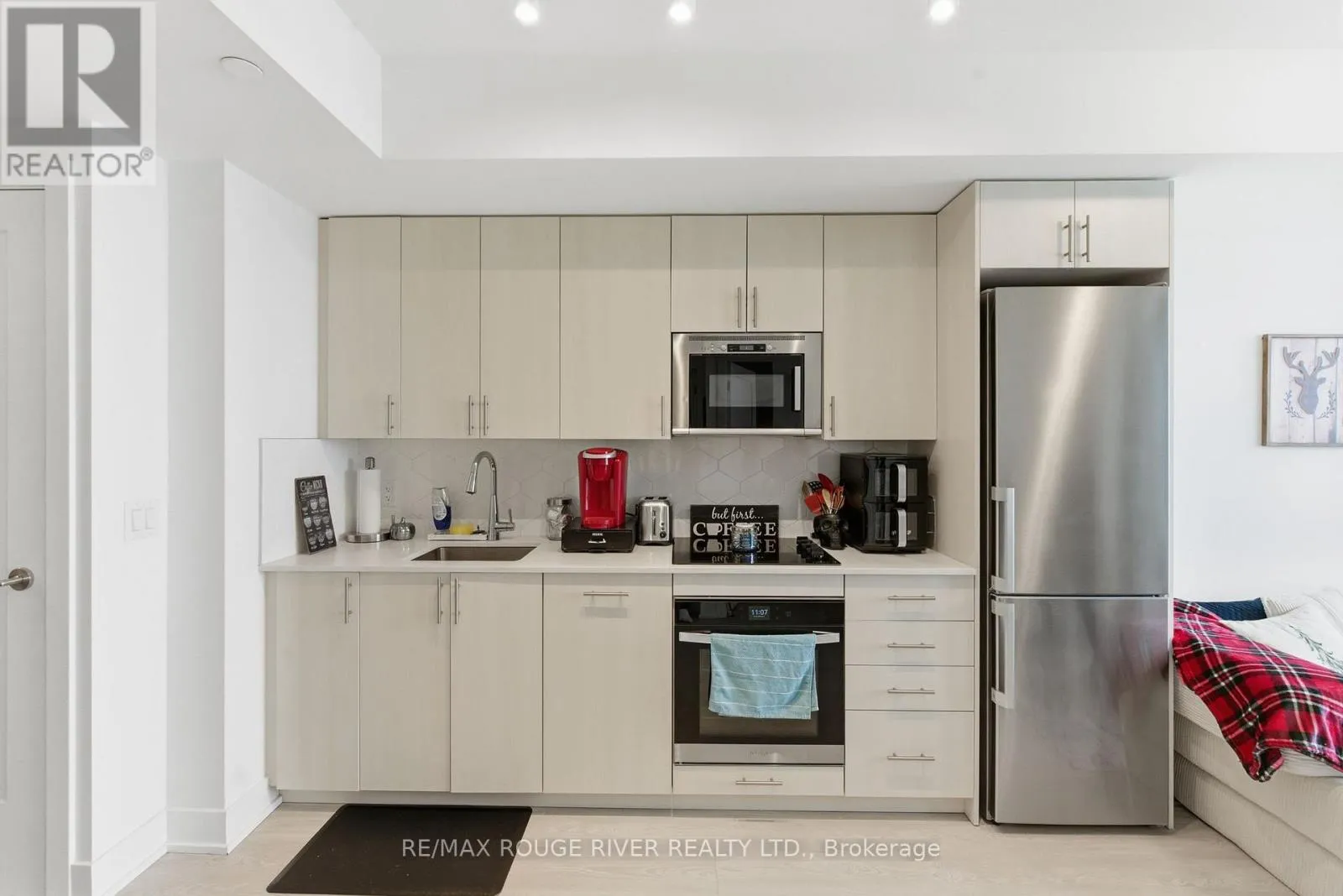 SIMCOE AND WINDFIELDS Fantastic opportunity to own in one of Oshawa's most sought-after condo communities. This modern 1+1 bed, 1 bath unit at U.C. Tower 2 offers a smart, low-maintenance lifestyle in the highly desirable Windfields neighbourhood, steps to Ontario Tech University, Durham College, shopping, transit, restaurants, and quick access to Highway 407. Positioned on the 23rd floor with east exposure, the unit enjoys unobstructed views and stunning sunsets that make coming home feel like a daily reset. The bright, open-concept layout is filled with natural light from floor-to-ceiling windows, creating a functional and modern living space. The upgraded kitchen features stainless steel appliances, quartz countertops, contemporary cabinetry, and ample storage, seamlessly connecting to the living area and private east-facing balcony-perfect for morning coffee or winding down at the end of the day. The primary bedroom offers a comfortable retreat with a generous closet, while the versatile den works beautifully as a home office, study area, reading nook, or occasional guest space. Additional conveniences include in-suite laundry and an owned underground parking space for secure, weather-protected parking year-round. U.C. Tower 2 offers an exceptional collection of amenities including two fully equipped gyms, spin studio, yoga studio, business lounge, private study pods, co-working spaces, theatre room, games lounge, kids play area, outdoor terrace with BBQ stations, concierge service, guest suites, secure bike storage, dog park, and pet spa with dog wash-everything you need to live, work, and relax without leaving home. (id:27476)