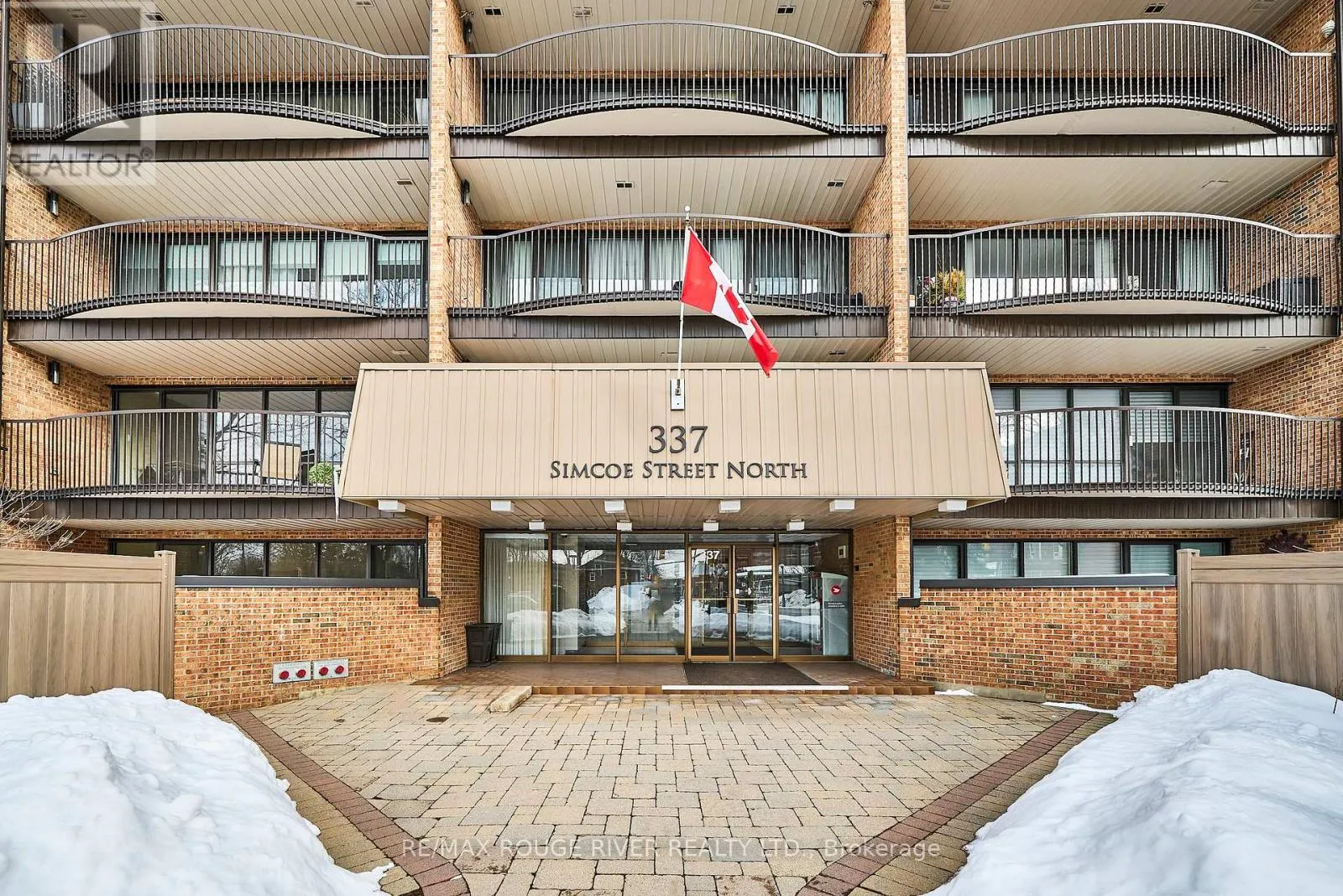 Simcoe St N/Hospital Ct Time for a Change ? Want to Keep Your Furniture ? This 3 Bedroom 1683 Sq ft, Sun Filled Corner Suite with 3 Bathrooms (1 Ensuite) and Full Size En-Suite Laundry W/sink Is Your Answer ! A Spacious Balcony w/Composite Decking off the Eat-in Kitchen is Perfect for Morning Coffees. The Main Level Boasts 837 Sq Ft with A Very Large Living Room and Dining Room (474 Sq Ft ) is Perfect for Family Gatherings around The Fireplace ! The Upper Level Boasts 846 Sq Ft with a Primary Bedroom Features Wicc and a 2Pce En-suite Plus Sliding Doors to a Juliette Balcony. The 4 Pce Bath on this Level features In-Floor Heating, 2 Other Spacious Bedrooms on this level also with Sliding Doors and Juliette Balconies. Loads of Closets. Private Access Door to 5th Floor and ROOFTOP LOUNGE/SUNROOM with 2/Pce Bath (Think Golden Hour Sunset Cocktail Party) Amenities Include: Gym/Sauna and Shower, Party/Gathering Room, Equipment Workshop, Secure Underground Parking Space (16 Steps from Doorway), Car Wash Area & Convenient Storage Locker, Bicycle and Golf Club (Walk to Oshawa Golf and Curling Club) Storage Room.Maintenance Fees Include All Utilities (Heating and Cooling, Hydro, Water and Sewer, Building Insurance, On-Site Superintendent), Convenient Location, Steps to Lake Ridge Hospital, Transit, Alexandra Park, Historic Parkwood Estate.This is a Gem of a Residence with a Sense of Community and Not to be Missed. *** CLICK VIRTUAL TOUR *** for Floorplans and More (id:27476)