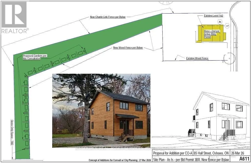 Cross Streets: Highway 401 and Simcoe. ** Directions: East of Simcoes Street. Attention Builders & Investors: For Sale Shovel-Ready House Renovation Project on Ravine Lot in Oshawa - Approx. 800m away from Newly proposed Go-Station. Property is Completely along Green Space - see Survey, LRO plan, and images. The Place is Green Space. Existing HOUSE was built of old solid wood and all finishes have been already Stripped Outside & Gutted Inside - READY for Renovation, which includes Addition of FULL 2nd Storey. NEW SURVEY. ACTIVE BUILDING PERMIT IN HAND: 3 BEDROOMS Upstairs. Kitchen Living on 1st Floor. GFA Approx. 1360 Square Feet. Basement. Building Permit in Hand for 3 Bedroom in full height 2nd Story. Note, the Listing Price incudes the House As Is now, along with Current Building Permit [ for 1360 sf one family house ]. Buyer to do own due diligence and use their own discretion in assessment of Cost of Construction for the Approved (1) Dwelling Unit shown on Building Permit Drawings. The price listed here includes the House "AS-IS" now and Building Permit drawings in-hand - subject to coordination of transfer of permits as per procedures by city and conservation authority. *For Additional Property Details Click The Brochure Icon Below* (id:27476)