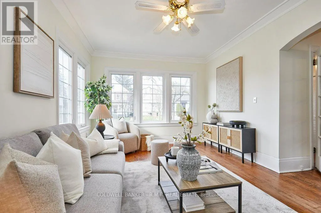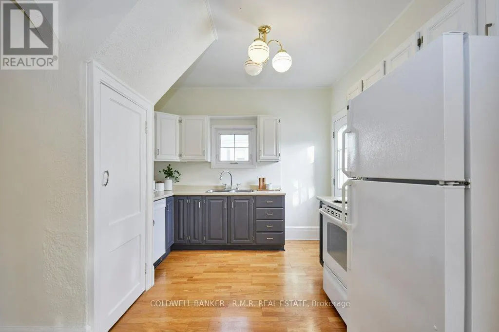 Adelaide/Kaiser/Golf Welcome to this beautifully maintained home set on a picturesque tree lined street in one of Oshawa's most established and welcoming neighbourhoods. Full of charm, character and thoughtful updates, this home offers a warm inviting atmosphere from the moment you walk through the newer front door. A bright entrance foyer leads to the main living areas where you'll find original hardwood floors, high ceilings with crown moulding for that timeless appeal. The spacious eat-in kitchen provides ample room for family meals, entertaining, morning coffee, or summer barbecues. The main floor features a comfortable primary bedroom with ample closet space, ideal for those seeking easy, accessible living without stairs. Upstairs, you'll find two additional bedrooms, each filled with natural light and offering flexibility for family, guests, or a home office. With two full bathrooms, the home provides comfort and practicality for busy households. Outside, a detached garage provides valuable storage or workshop potential, while the mature neighbourhood setting offers a peaceful backdrop ideal for evening walks and outdoor enjoyment. Perfectly located, this home is just minutes from Lakeridge Health Oshawa, the Oshawa Golf Club, several beautiful parks, and convenient transit routes. Whether commuting, enjoying local amenities, or relaxing at home, this property delivers exceptional lifestyle convenience. (id:27476)