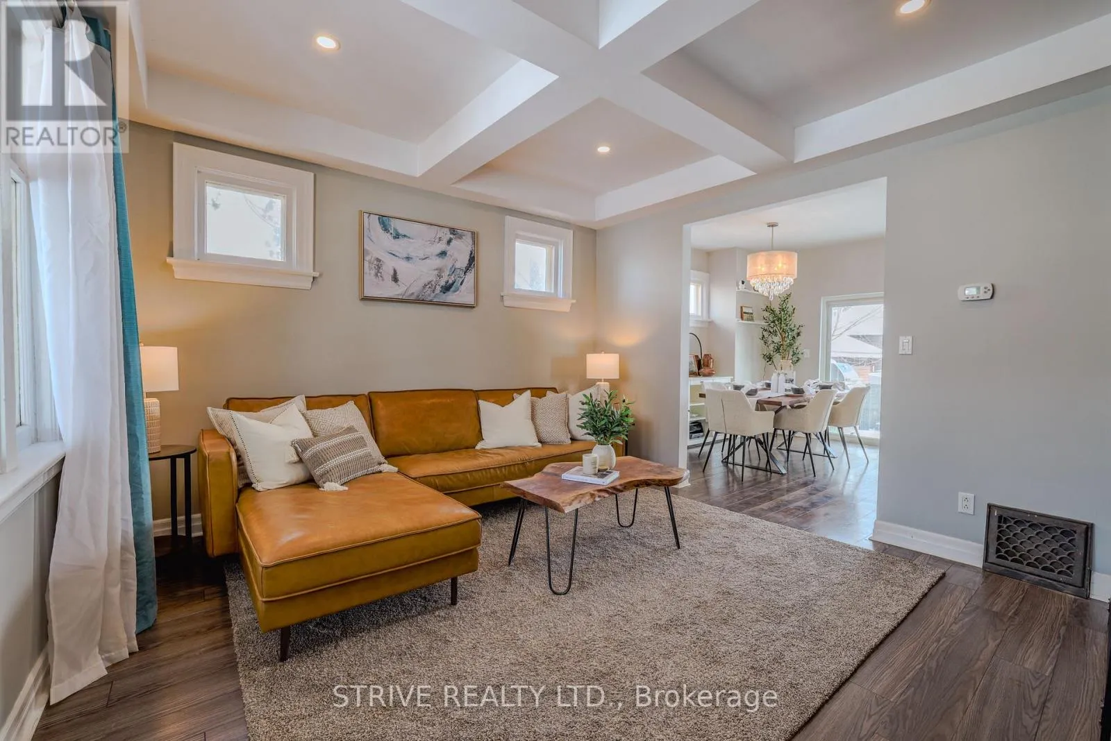 Cross Streets: Oshawa Blvd S/Bruce St. ** Directions: North on Oshawa Blvd S to Bruce St and turn right. Meet this charming beauty, an elegantly renovated 3 bedroom home. You won't be disappointed as it features pot lights and 9' coffered ceilings on the main floor, a spacious gourmet kitchen with ample storage, black stainless steel appliances and gas range. The exposed brick backsplash adds to the character of the home, perfect for entertaining. Upstairs the primary bedroom features a massive walk-in closet with custom built-in shelves and a semi ensuite bathroom with a double vanity though a pocket door. Detached garage, fully fenced yard, all wiring updated, new roof 2025. Close to all amenities, schools, Costco, easy 401 access. The perfect home to start your family! (id:27476)