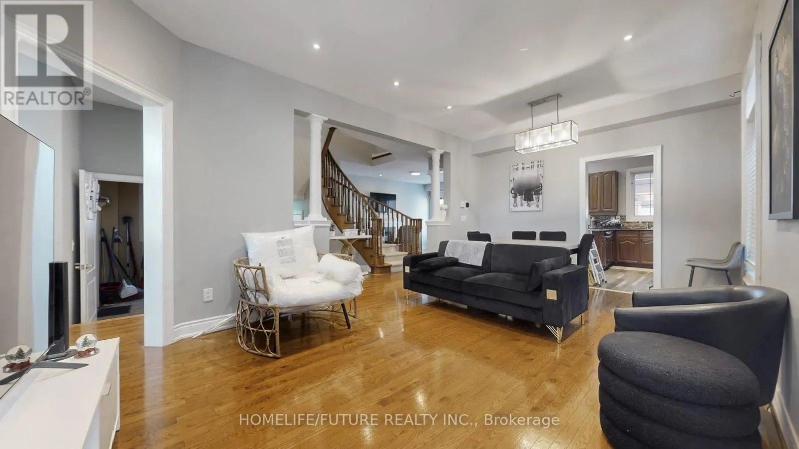 Harmony And Rossland Welcome To your dream home! This Beautiful 4 Bedroom home has hardwood flooring and pot lights throughout The Main Floor, Abundance of natural light. Living And Dining tastefully combined. Kitchen With All Stainless-Steel Appliances and Eat-In. Family Room Features Backyard View And cozy gas fireplace, creating the perfect ambiance for comfortable living, main floor laundry. 4 spacious bedrooms, Primary features a Walk-In closet, 5pc En Suite with a relaxing jacuzzi. Large Balcony where you can sit and enjoy your morning coffee, Finished open concept basement with 3 Pc Washroom and another gas fireplace for all of your activities. Backyard Is fully fenced with a large deck and covered seating area where you can host your parties with pride! Attached 2 car garage, 4 car parking in total, Quiet and family friendly neighborhood, Conveniently located close to all amenities. Don't Miss This Gem! Roof 2023, A/C and Furnace 2025. See Virtual Tour. (id:27476)