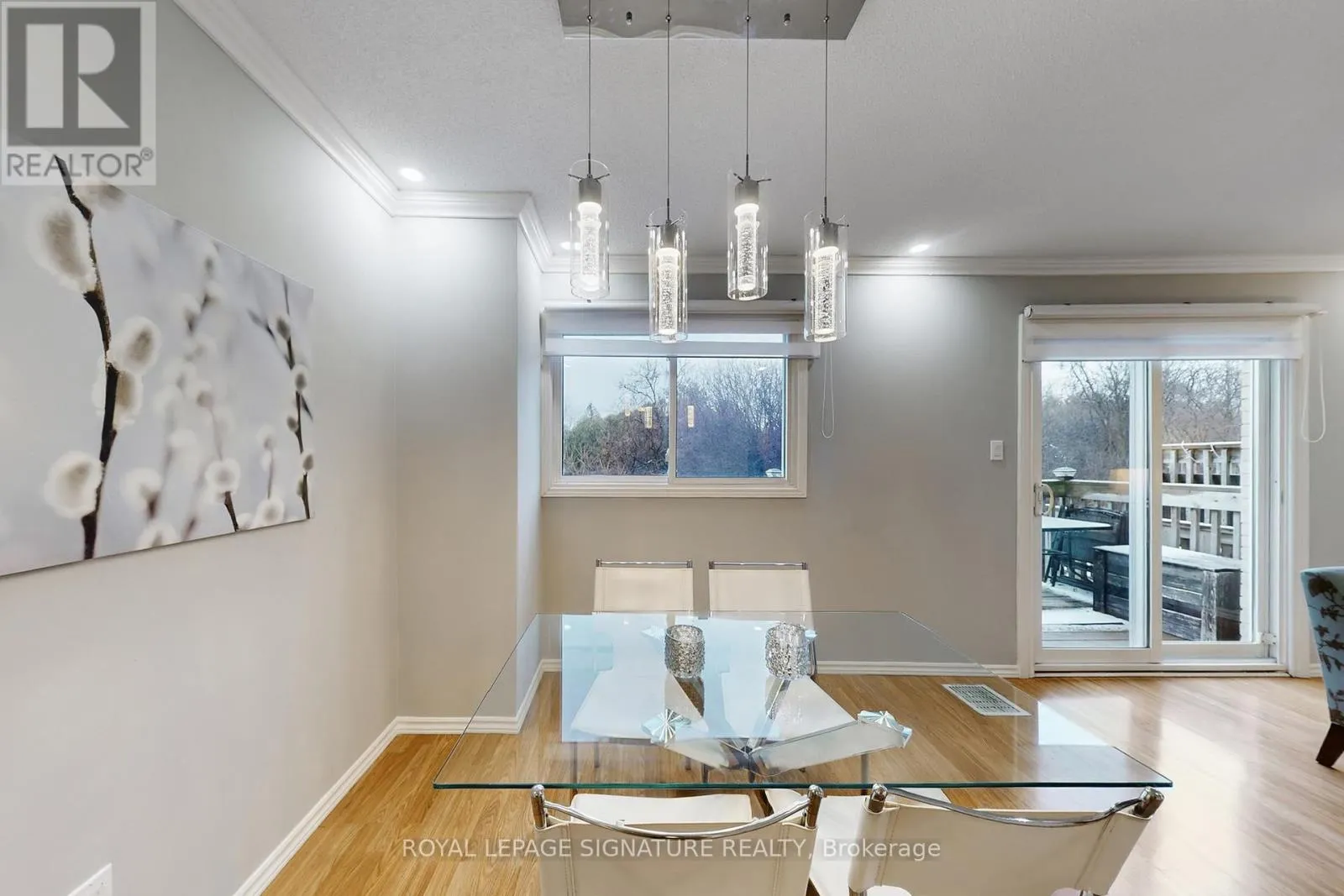 Cross Streets: Rossland Rd. E. & Harmony Rd. N. ** Directions: Complex is on the east side of Harmony Rd N. Best landmark: just north of Rossland Rd E. Visitor parking typically near entrance and across from Unit. Backing onto a private ravine, this beautifully updated 3-bedroom condo townhome offers a blend of style, space, and natural privacy in Oshawa's sought-after Eastgate/Pinecrest community.Step inside to a bright main floor featuring sleek laminate flooring and a walkout to your own deck and tranquil backyard, no rear neighbours, just peaceful green space. Whether you're enjoying your morning coffee or hosting friends, this setting delivers.The eat-in kitchen offers functional cabinetry with ample storage, quartz countertops, and a tile backsplash, well-suited for both everyday living and entertaining.Upstairs, you'll find three generously sized bedrooms, providing flexibility for families or those working from home. The finished basement adds valuable additional living space and includes a bathroom, laundry area, storage, and pot lighting, ideal for a rec room, home office, or guest area.Enjoy the added benefits of no carpet throughout, and a quiet, well-managed complex that reflects pride of ownership.Located just minutes from schools, transit, highways, and shopping, this home offers everyday convenience in a peaceful, nature-backed setting.Move-in ready and backing onto green space, this is a home that stands out. (id:27476)