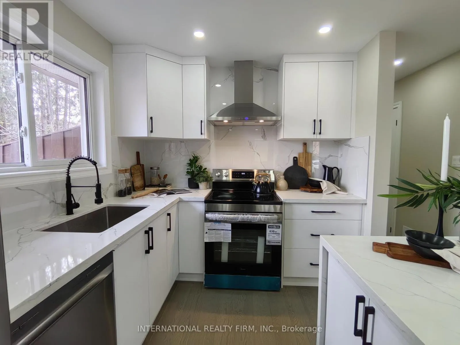 Cross Streets: Rossland/CentralPark. ** Directions: Map. Welcome To This Stunning, Move-In Ready Bungalow Offering Exceptional Value For End-Users And Investors Alike; Thoughtfully Renovated Throughout This Home Seamlessly Blends Modern Design w/ Functional Living Across Two Fully Finished Levels; Main Floor Features An Open-Concept Layout w/ A Designer Kitchen Boasting Quartz Waterfall Island, White Shaker Cabinetry, Brand New S/S Appliances, And A Stylish Dining Area - Perfect For Entertaining. Three Generous Bedrooms, Including A Primary Retreat, Share A Spa-Inspired 4pc Bathroom, Glass-Enclosed Multi-Jet Shower Panel. Lower Level Offers A Separate Entrance Led To A Functional Eat-In Kitchen, Cozy Living Area, Full Bathroom And Two Well-Appointed Bedrooms. Laundry At Lower Level W/ Rough In At Main Floor. Walking Distance To Shopping/Park/Trail, Easy Access To Hwy 401/407/418. A Rare Turnkey Opportunity - Don't Miss It (id:27476)