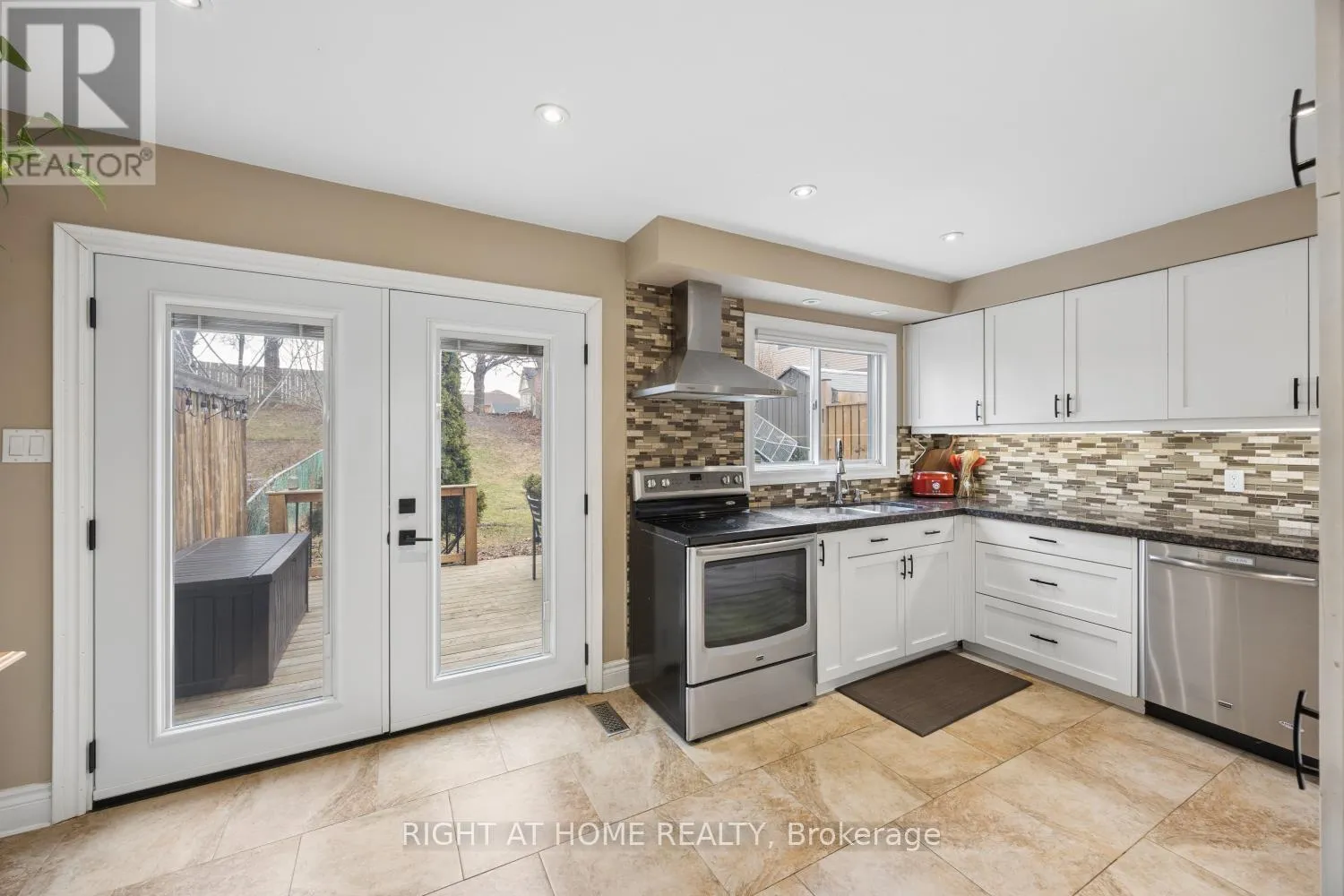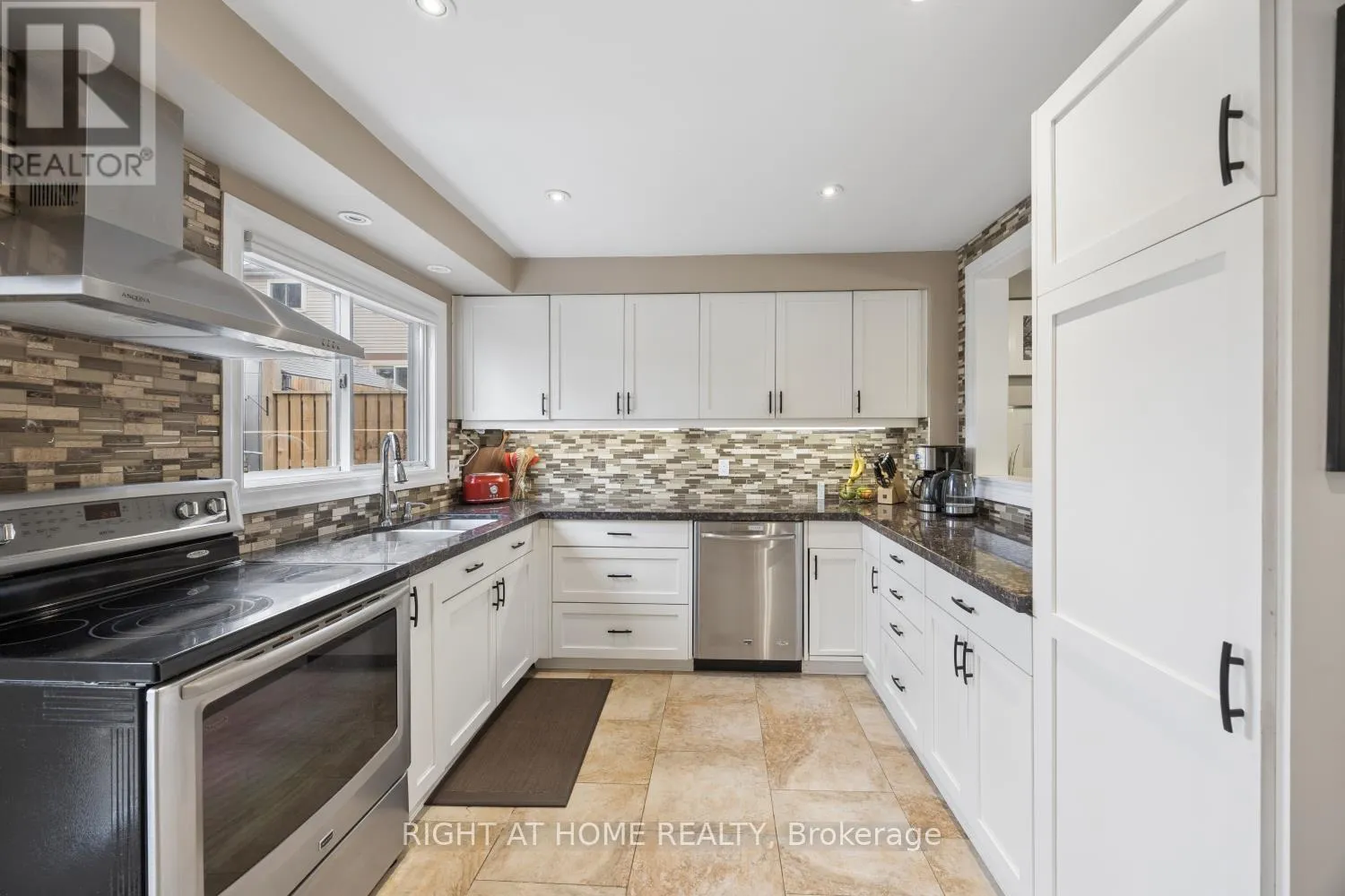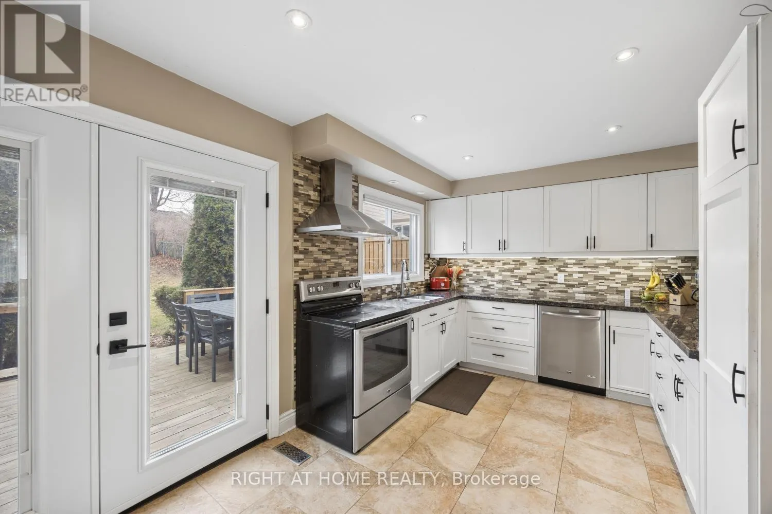 Bloor and Townline Beautiful 3 bedroom 2 bathroom semi with built in garage shows pride of ownership. Open concept main floor has updated kitchen with granite countertops, stainless steel appliances , pots and pan drawers, pantry and w/o to deep fenced private back yard with no neighbours behind. 2 spa like bathrooms with heated floors. Loads of pot lights on all levels. Garage access from house.. Hard surface flooring throughout.Many recent updates including totally new 3 pc bath on lower level, updated french door to deck and new garage door, This property is in a great family area located close to parks, schools, public transit , rec centre and easy access to 401. (id:27476)