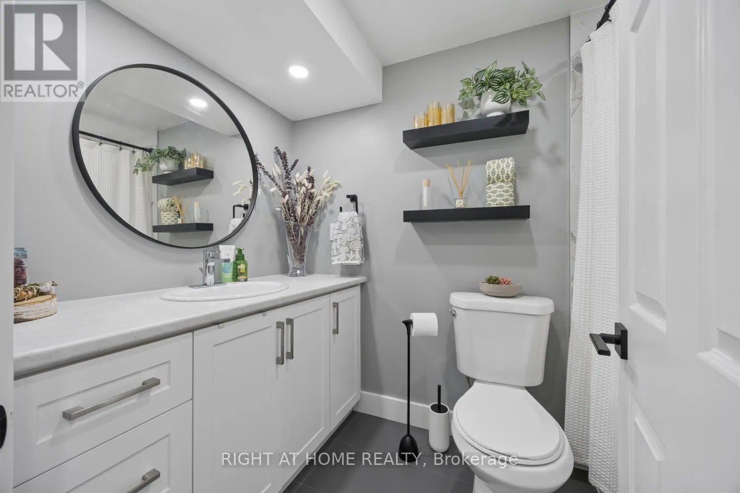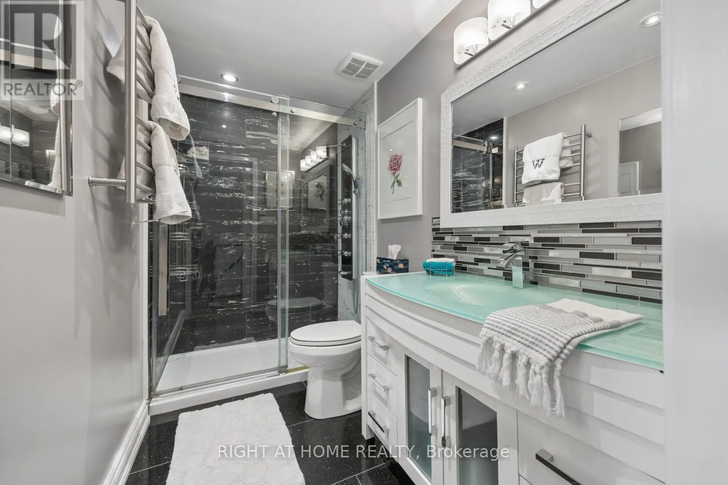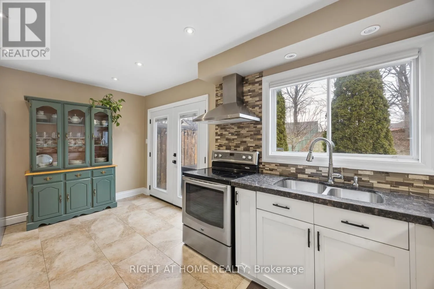 Bloor and Townline Beautiful 3 bedroom 2 bathroom semi with built in garage shows pride of ownership. Open concept main floor has updated kitchen with granite countertops, stainless steel appliances , pots and pan drawers, pantry and w/o to deep fenced private back yard with no neighbours behind. 2 spa like bathrooms with heated floors. Loads of pot lights on all levels. Garage access from house.. Hard surface flooring throughout.Many recent updates including totally new 3 pc bath on lower level, updated french door to deck and new garage door, This property is in a great family area located close to parks, schools, public transit , rec centre and easy access to 401. (id:27476)