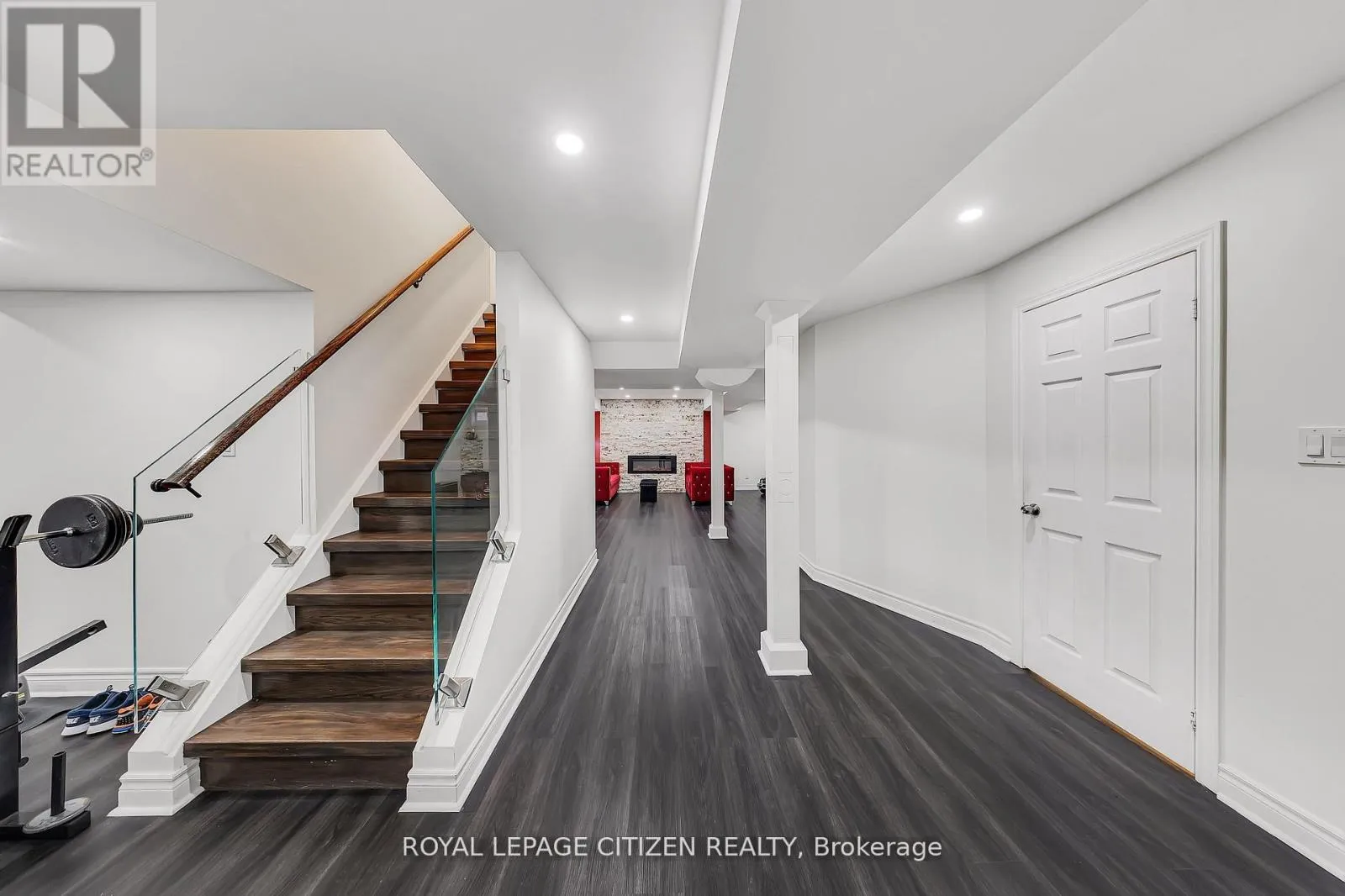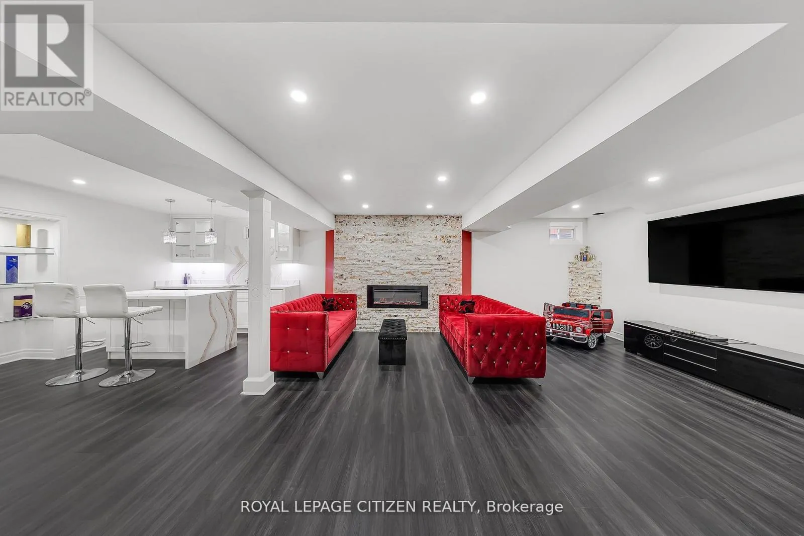 Grandview/Conlin Welcome to 1882 Esterbrook Dr, Oshawa - a stunning residence offering over 4,500 sq. ft. of beautifully finished living space, set on a premium corner lot (55 x 114 ft) with a fully finished basement and over $150,000 in premium upgrades throughout." This beautifully upgraded home features 9-ft ceilings, elegant wainscoting and crown moulding, hardwood flooring, and a chef's kitchen with quartz countertops, backsplash, and double pantries. A striking double oak staircase adds timeless appeal. Upstairs offers an open-concept family room overlooking a 17-ft foyer, a versatile loft, and four spacious bedrooms-each with its own ensuite. The finished basement includes a bedroom, full bath, gym, entertainment area, and bar with granite waterfall countertops. Enjoy a landscaped yard with a sprinkler system, interlocked driveway, and a two-level deck with gazebo. Located near schools, parks, shopping, and Hwy 407.Additional Terms: Lawn maintenance will be arranged and shared 50/50 (approximately $1,050 per season). Water costs will also be shared 50/50 from June 1 to September 30 due to the automatic sprinkler system. (id:27476)