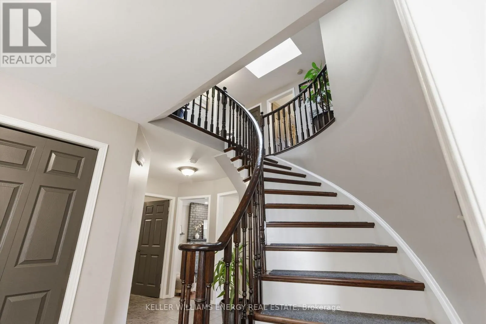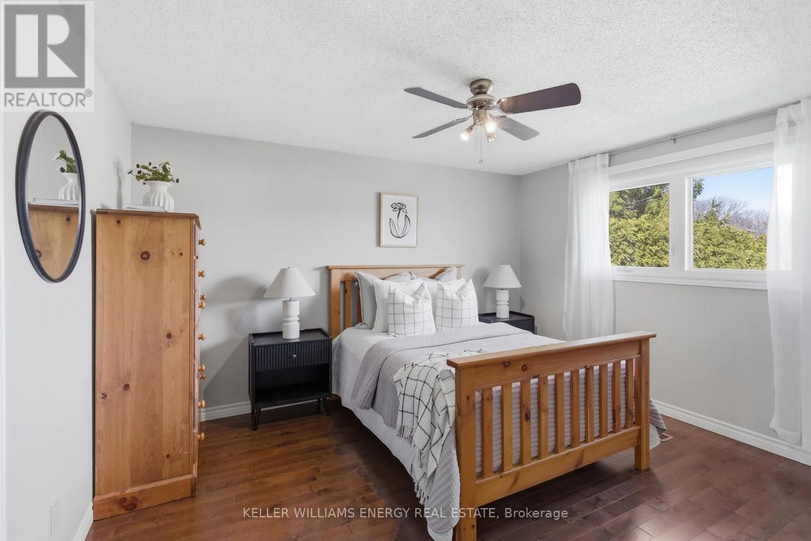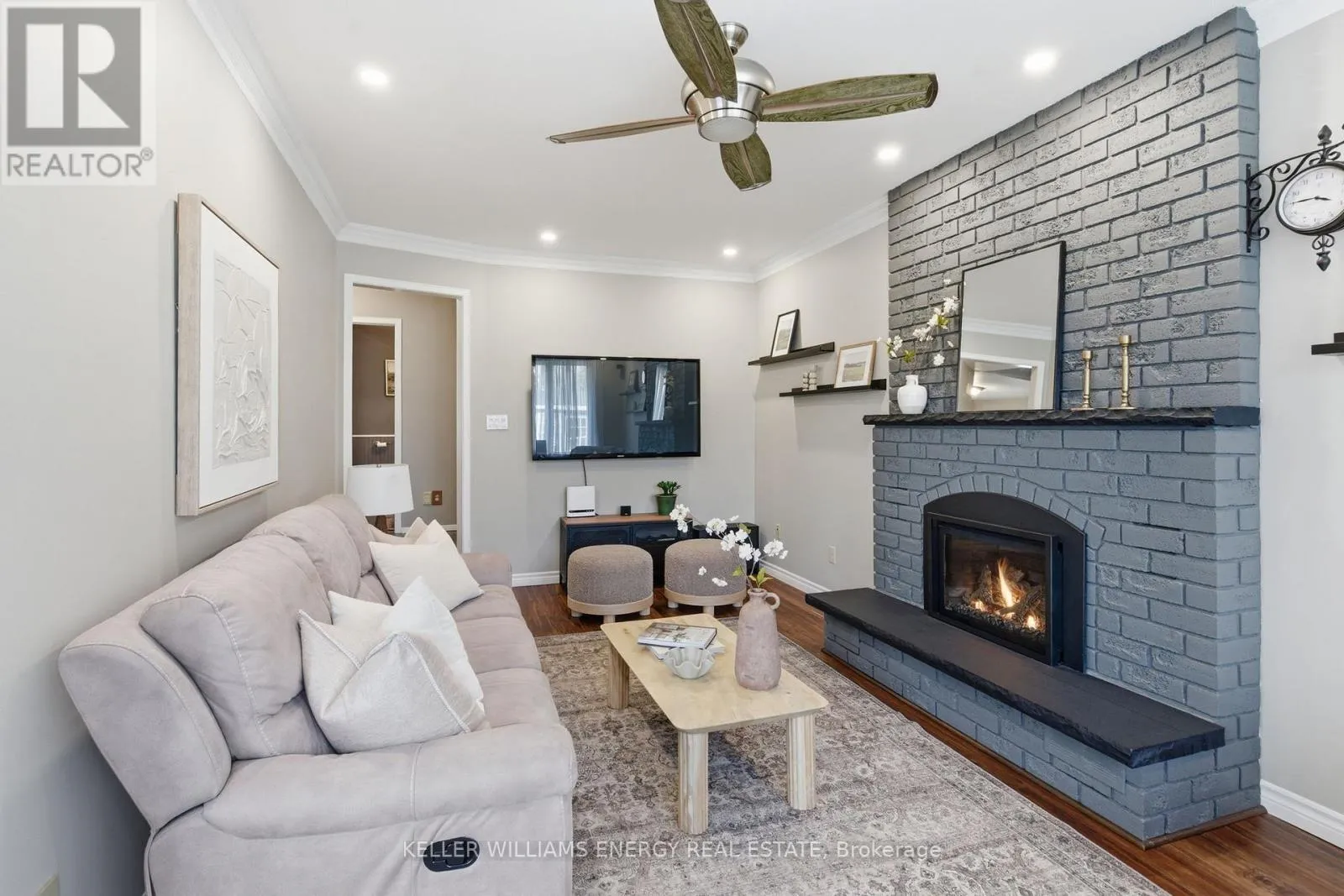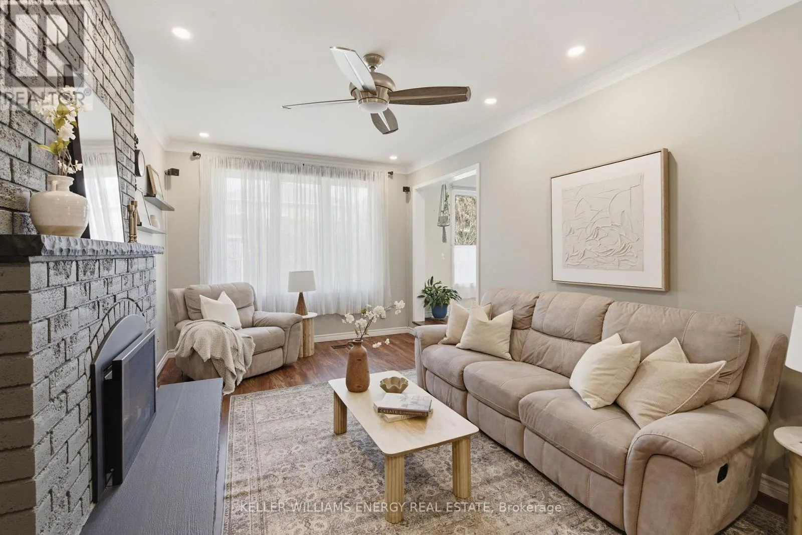 Harmony & Copperfield Welcome to this beautifully maintained 4-bedroom, 3-bathroom family home nestled in the sought-after Eastdale community of Oshawa. Offering a perfect blend of space, comfort, and functionality, this home is ideal for growing families. The main floor features elegant hardwood flooring throughout, with a bright and inviting living room and formal dining area separated by classic French doors-perfect for both everyday living and entertaining. The sunken family room offers a cozy retreat, complete with a charming fireplace and plenty of natural light. The spacious kitchen is a true highlight, boasting quartz countertops, ample cabinetry, and a convenient eat-in area with a walk-out to a private deck-ideal for morning coffee or summer gatherings. A convenient 2-piece bathroom completes the main level. Upstairs, you'll find four generously sized bedrooms, all with hardwood flooring. The primary suite is expansive and features a walk-in closet along with a private 4-piece ensuite bath. Three additional bedrooms offer plenty of space for family or guests, along with a second 4-piece bathroom. The finished basement provides additional living space with a large recreation room featuring broadloom, plus a versatile bonus area with laminate flooring-perfect for a home office, gym, or playroom. Filled with natural light throughout, this home is located in a family-friendly neighbourhood close to schools, parks, shopping, and all amenities. A fantastic opportunity to own a spacious home in a prime Oshawa location! Extras: All windows except basement 2015, Master ensuite 2015, Furnace/AC 2016, Fireplace 2016, Skylight 2019, Roof 2022, Countertops 2023 (id:27476)