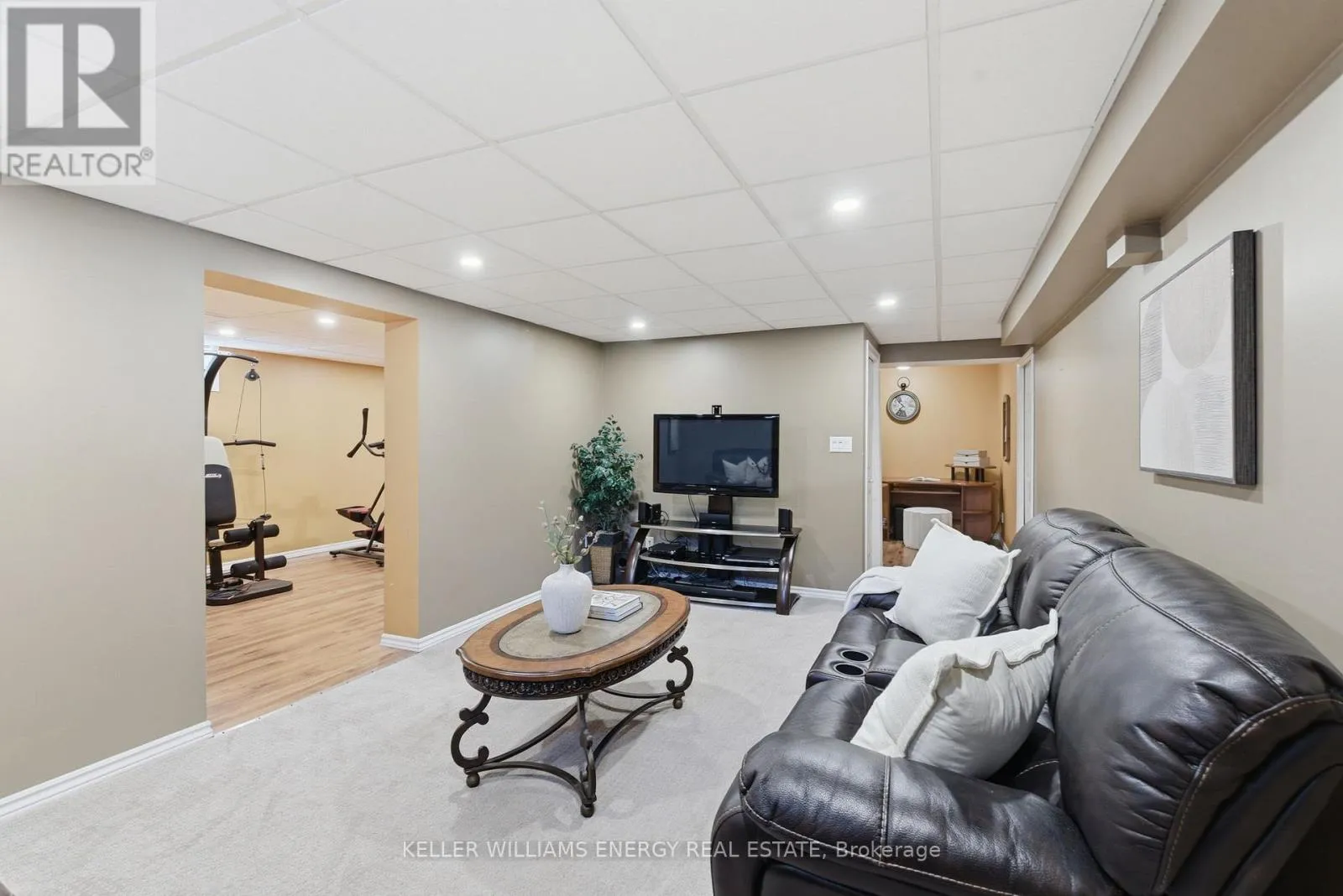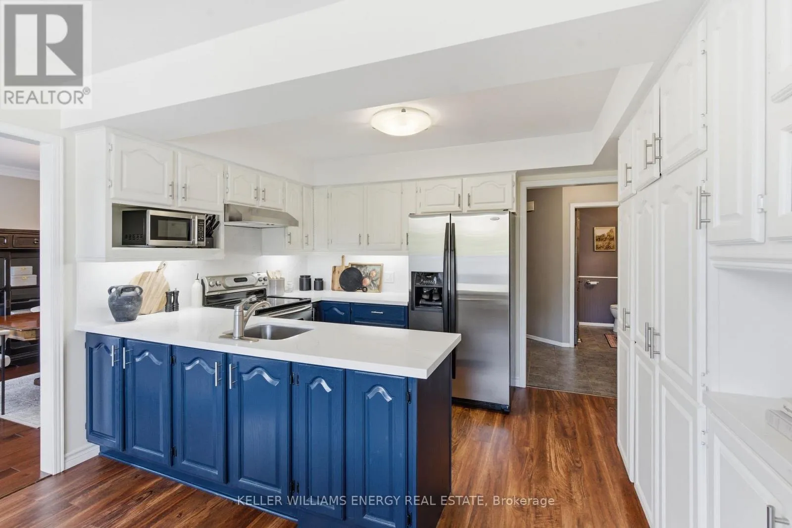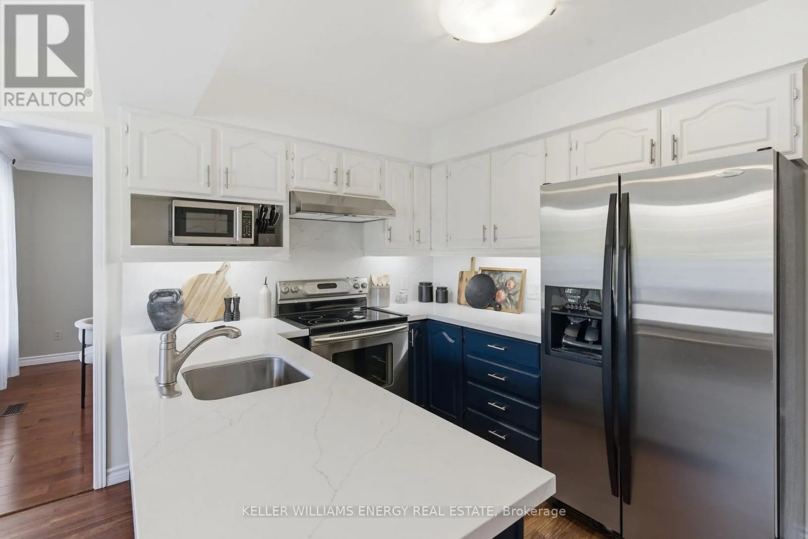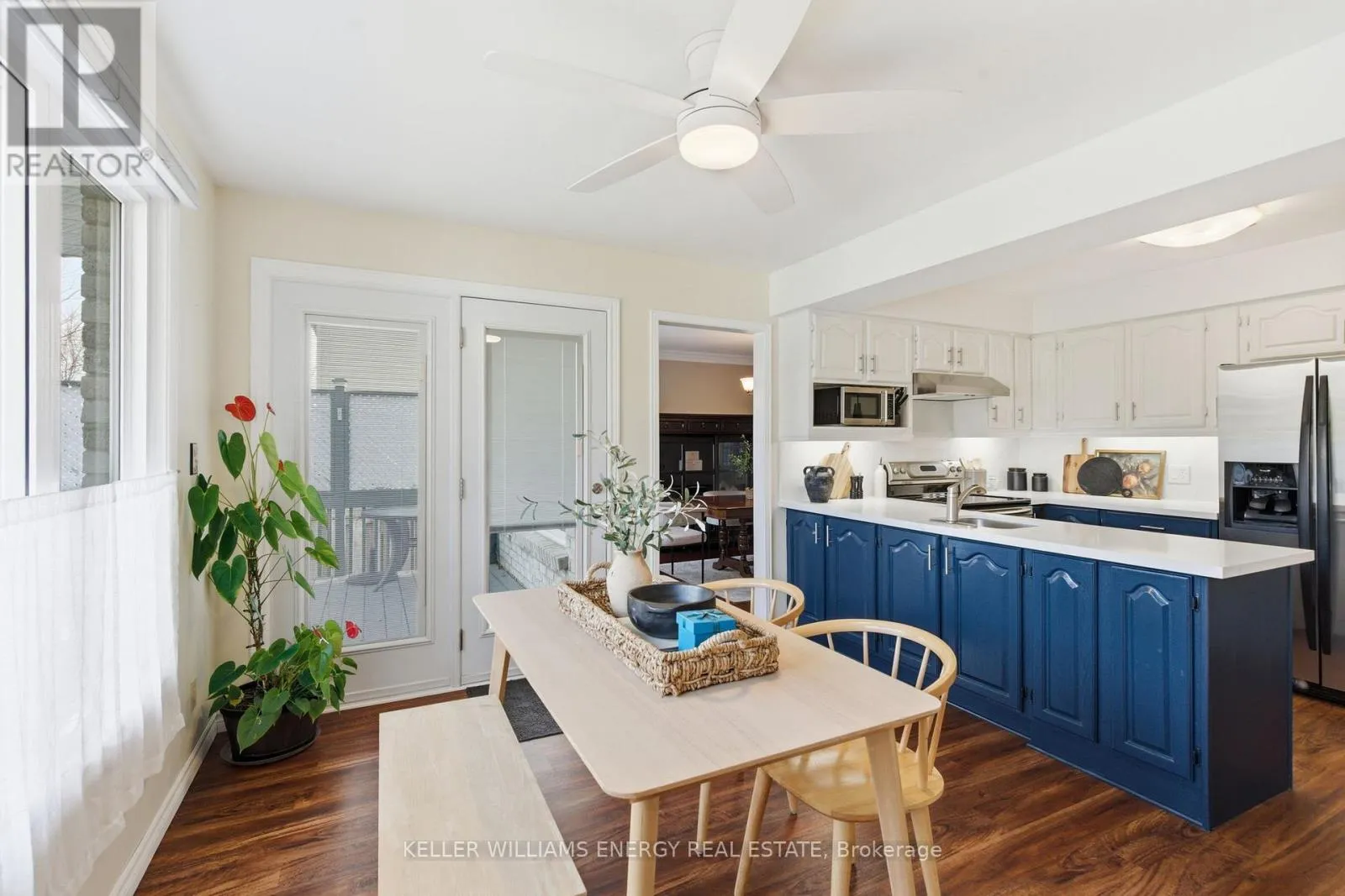 Harmony & Copperfield Welcome to this beautifully maintained 4-bedroom, 3-bathroom family home nestled in the sought-after Eastdale community of Oshawa. Offering a perfect blend of space, comfort, and functionality, this home is ideal for growing families. The main floor features elegant hardwood flooring throughout, with a bright and inviting living room and formal dining area separated by classic French doors-perfect for both everyday living and entertaining. The sunken family room offers a cozy retreat, complete with a charming fireplace and plenty of natural light. The spacious kitchen is a true highlight, boasting quartz countertops, ample cabinetry, and a convenient eat-in area with a walk-out to a private deck-ideal for morning coffee or summer gatherings. A convenient 2-piece bathroom completes the main level. Upstairs, you'll find four generously sized bedrooms, all with hardwood flooring. The primary suite is expansive and features a walk-in closet along with a private 4-piece ensuite bath. Three additional bedrooms offer plenty of space for family or guests, along with a second 4-piece bathroom. The finished basement provides additional living space with a large recreation room featuring broadloom, plus a versatile bonus area with laminate flooring-perfect for a home office, gym, or playroom. Filled with natural light throughout, this home is located in a family-friendly neighbourhood close to schools, parks, shopping, and all amenities. A fantastic opportunity to own a spacious home in a prime Oshawa location! Extras: All windows except basement 2015, Master ensuite 2015, Furnace/AC 2016, Fireplace 2016, Skylight 2019, Roof 2022, Countertops 2023 (id:27476)