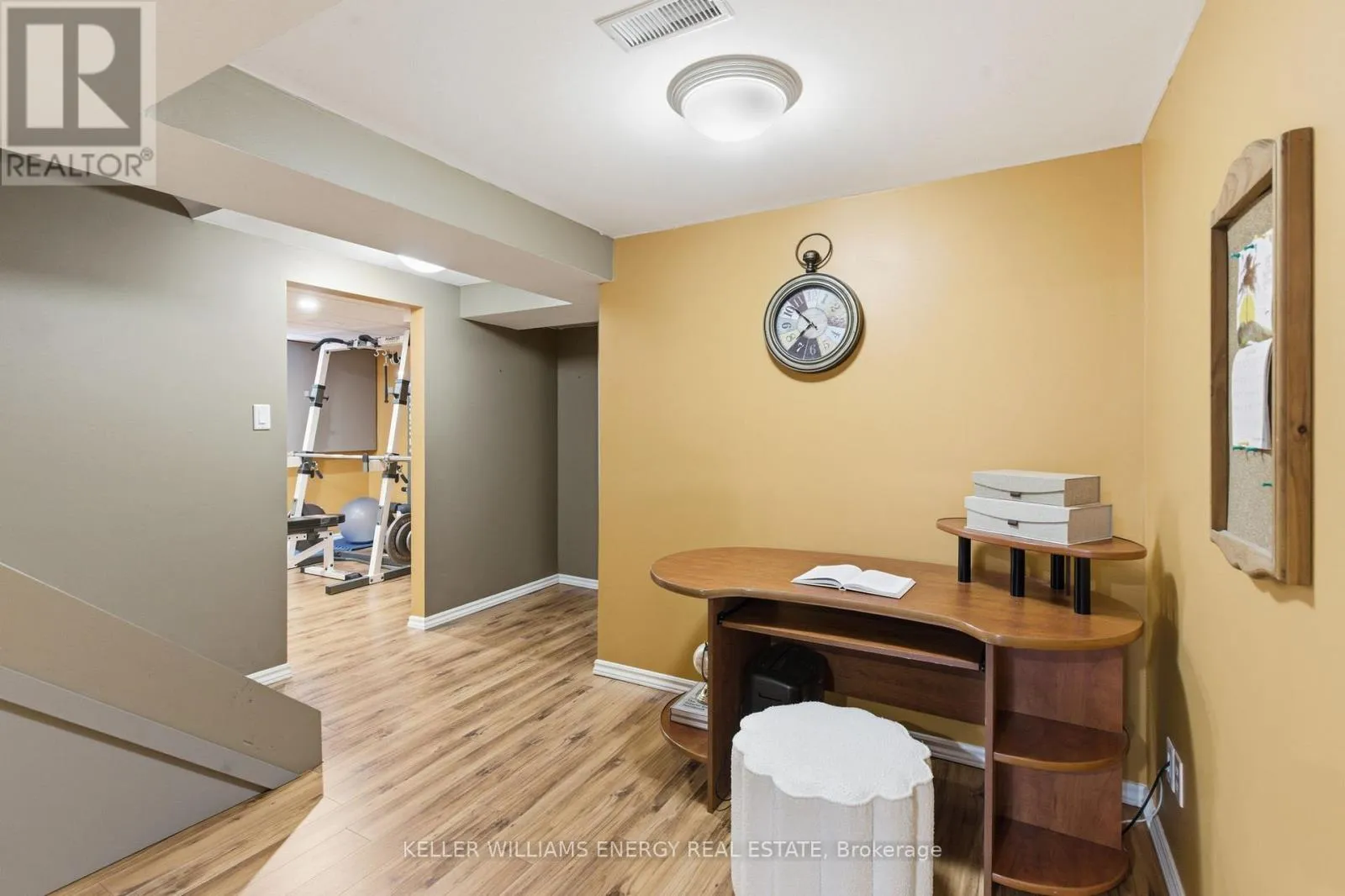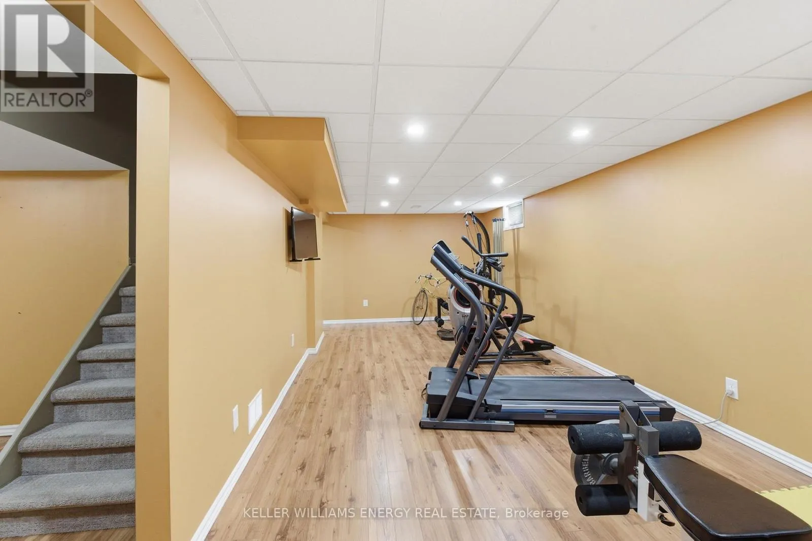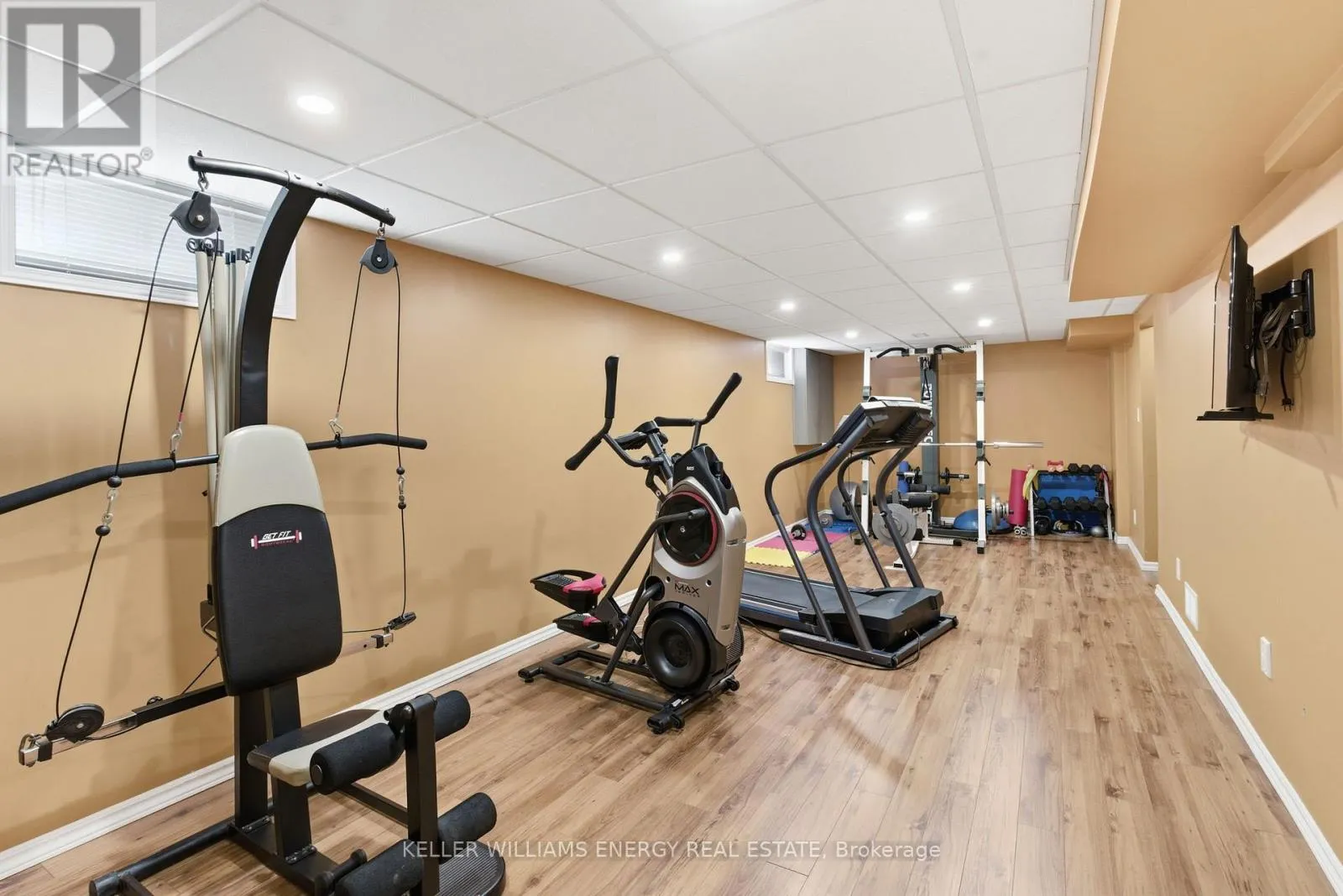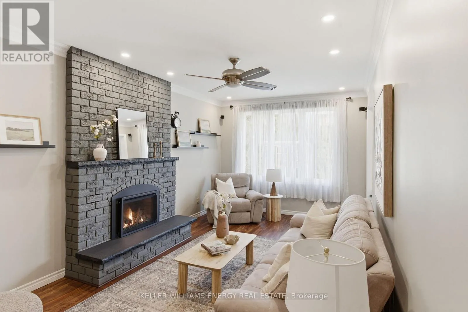 Harmony & Copperfield Welcome to this beautifully maintained 4-bedroom, 3-bathroom family home nestled in the sought-after Eastdale community of Oshawa. Offering a perfect blend of space, comfort, and functionality, this home is ideal for growing families. The main floor features elegant hardwood flooring throughout, with a bright and inviting living room and formal dining area separated by classic French doors-perfect for both everyday living and entertaining. The sunken family room offers a cozy retreat, complete with a charming fireplace and plenty of natural light. The spacious kitchen is a true highlight, boasting quartz countertops, ample cabinetry, and a convenient eat-in area with a walk-out to a private deck-ideal for morning coffee or summer gatherings. A convenient 2-piece bathroom completes the main level. Upstairs, you'll find four generously sized bedrooms, all with hardwood flooring. The primary suite is expansive and features a walk-in closet along with a private 4-piece ensuite bath. Three additional bedrooms offer plenty of space for family or guests, along with a second 4-piece bathroom. The finished basement provides additional living space with a large recreation room featuring broadloom, plus a versatile bonus area with laminate flooring-perfect for a home office, gym, or playroom. Filled with natural light throughout, this home is located in a family-friendly neighbourhood close to schools, parks, shopping, and all amenities. A fantastic opportunity to own a spacious home in a prime Oshawa location! Extras: All windows except basement 2015, Master ensuite 2015, Furnace/AC 2016, Fireplace 2016, Skylight 2019, Roof 2022, Countertops 2023 (id:27476)