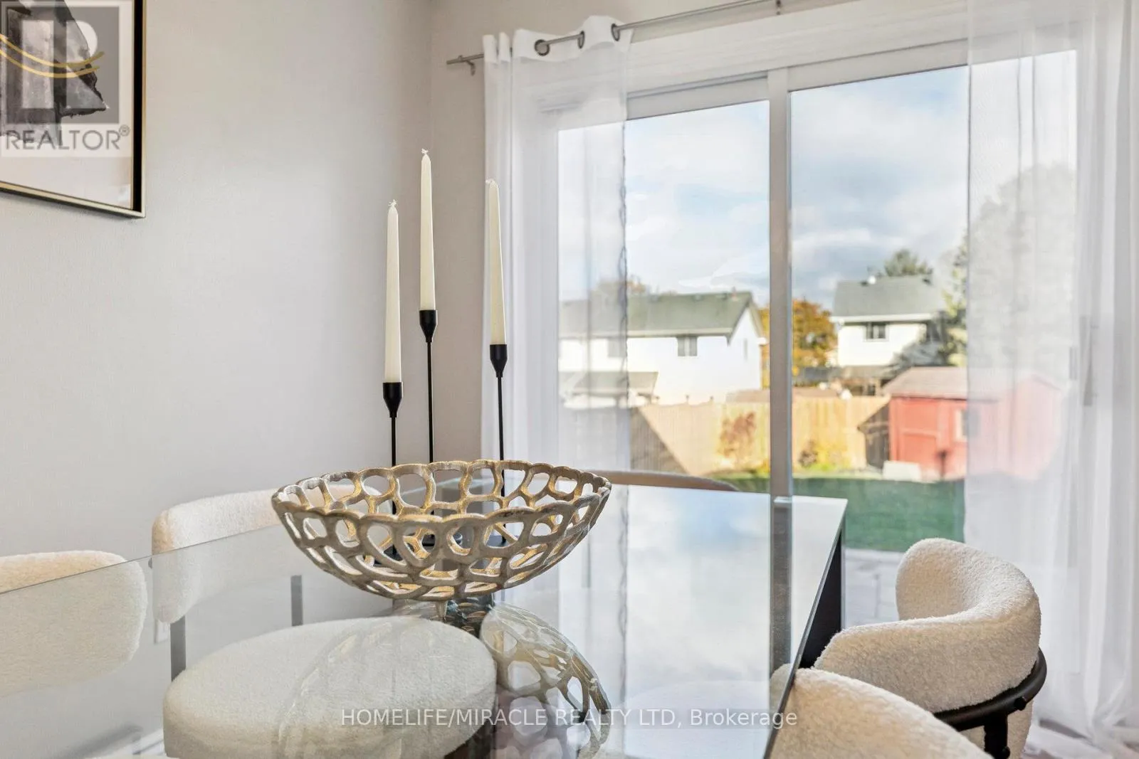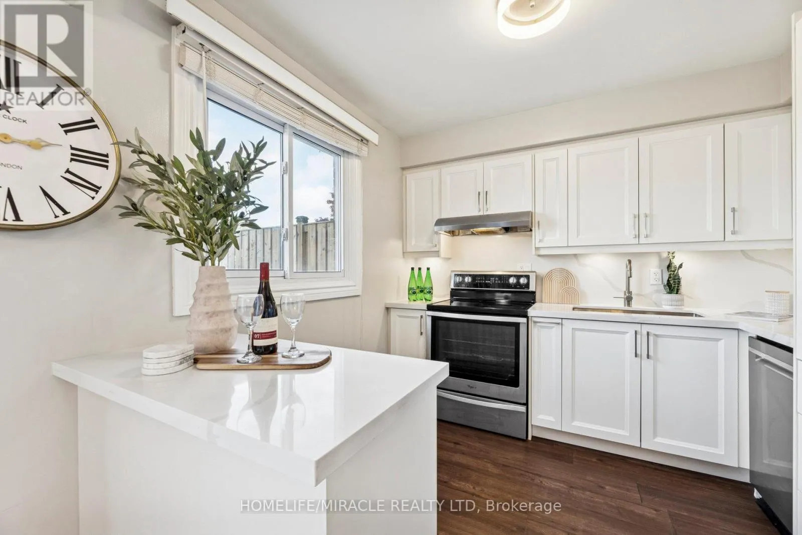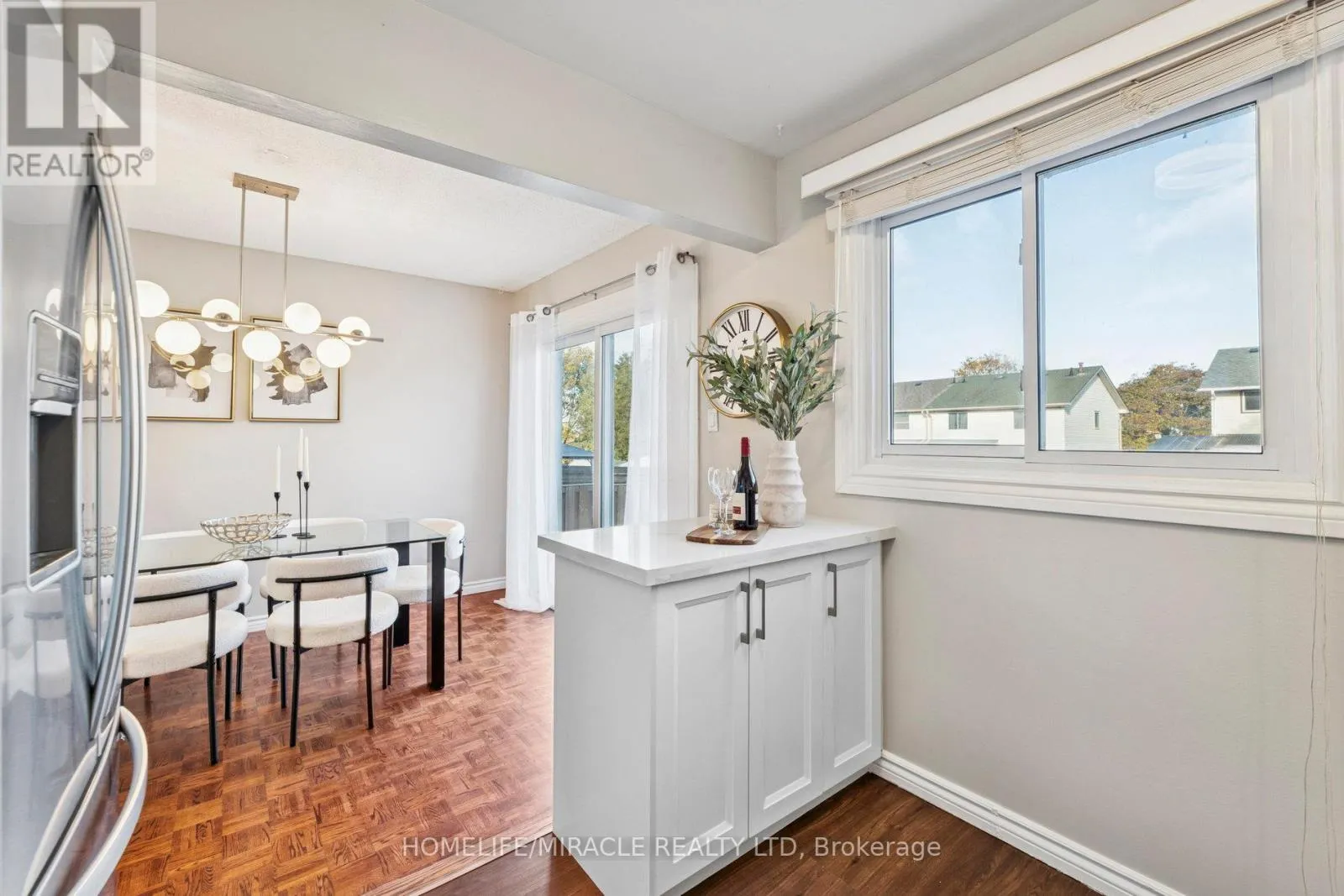 Bloor and Townline ABSOLUTE SHOW STOPPER !!! Spacious 3 Bedroom Semi-detached House. Welcome to your new home! This beautifully maintained semi-detached house offers a perfect blend of modern amenities and comfortable living. Spacious Living/Dinning Area. Enjoy bright and airy living spaces, perfect for family gatherings and entertaining. Separate dining area overlooking to backyard. Spacious Bedrooms. Enjoy three generously sized bedrooms, perfect for families or those needing extra space. Newly Renovated Kitchen. The heart of the home features a stunning, newly renovated kitchen with contemporary finishes, ample storage, new appliances and plenty of natural light ideal for cooking and entertaining. Inviting Backyard. Step outside to a private backyard, perfect for summer barbecues, gardening, or simply relaxing in the fresh air. Partially Finished Basement, can be used as an additional bedroom, rec room or office space, a Fireplace with a separate entrance and includes Washer/Dryer. The basement provides additional storage space, keeping your home organized and clutter-free. Updated Lighting. The main level boasts new lights and fixtures that enhance the home's ambiance and energy efficiency. Modern Comforts. Stay cool during the warmer months with an air conditioning unit installed in 2022, ensuring your comfort year-round. This well-maintained home is conveniently located near amenities, grocery stores, schools, parks and minutes from Hwy 401, making it a great choice for families and professionals alike. Brand New Stone back patio and fence. Brand new soffit and eavestrough . Newly renovated modern quartz kitchen with ample storage. freshly painted. Don't miss out on this fantastic opportunity! (id:27476)