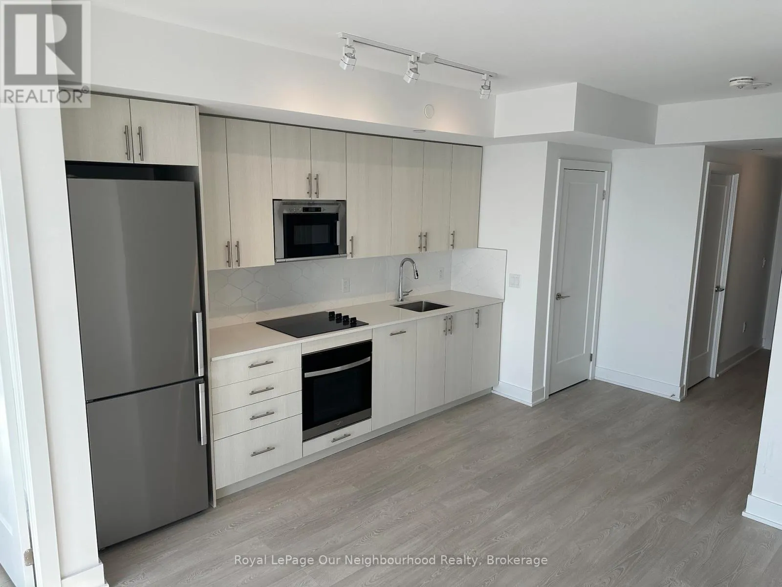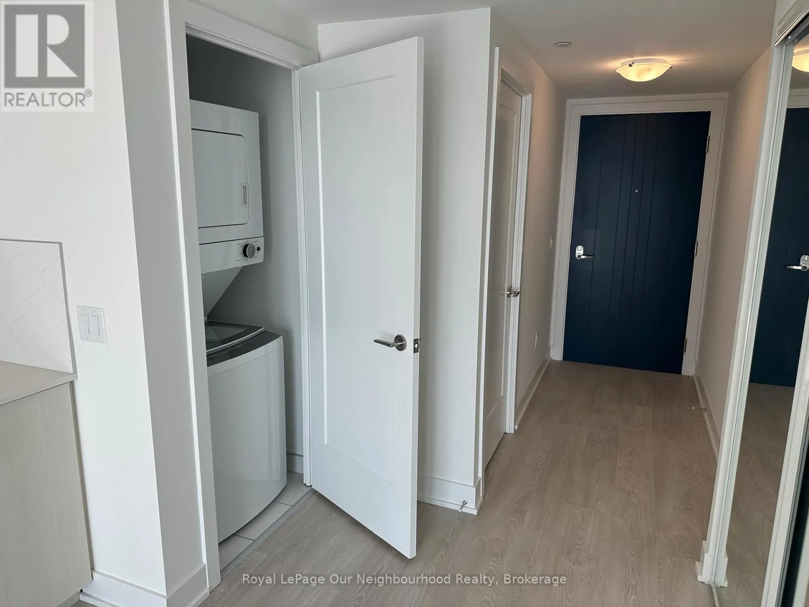 Cross Streets: SIMCOE ST N & WINCHESTER ROAD. ** Directions: SIMCOE ST N & WINCHESTER ROADSIMCOE ST N & WINCHESTER ROAD. Located in North Oshawa this bright and beautifully appointed 1-bedroom, 1-bathroom condo offers the perfect blend of elegance, comfort & convenience. It is just steps from Costco, boutique shops, restaurants, cafes, banks, parks, dog a park. The proximity to Hwy 407, Durham College & Ontario Tech University make this a much sought-after & convenient location. Everything you crave is right at your fingertips. This world-class building offers security and convenience with 24/7 concierge service. Amenities such as a fully equipped fitness facility with cardio room, weight room, spin studio, yoga & stretch studio make staying fit easy. The expansive outdoor terrace lounge & dining area includes BBQ stations for fine weather entertaining. Other amenities include a private dining area with a catering kitchen, event & work spaces, event lounge, business lounge, breakout study pods, tech lounge, sound studio, tool annex & pet spa. This stunning residence features 9-foot ceilings and luxury laminate flooring throughout. The open concept layout allows for relaxed and comfortable living. The entry way is elegant with mirrored doors on a spacious closet. Designer low VOC latex paint creates a peaceful aesthetic. The kitchen boasts sleek cabinetry, quartz countertops, tiled backsplash, undermount sink, breakfast bar & SS appliances. Ample sized closets throughout make living easy. If you are looking to start or simplify your next chapter this is the place to see. (id:27476)