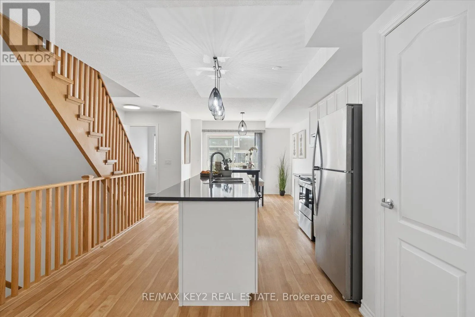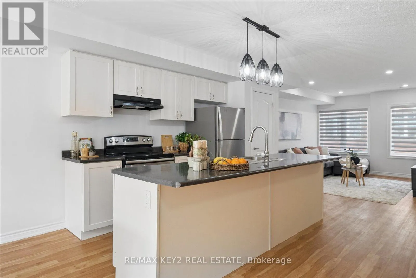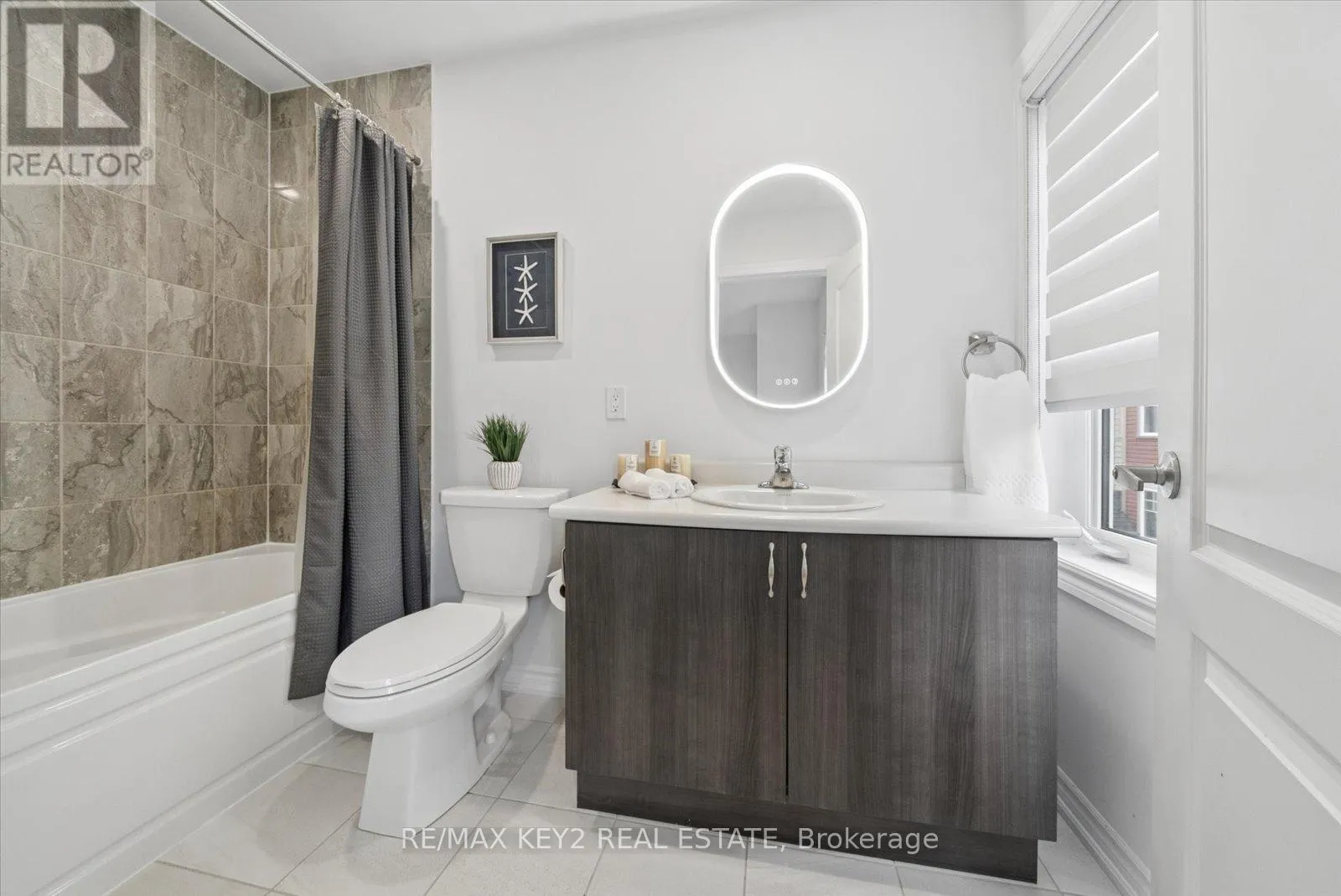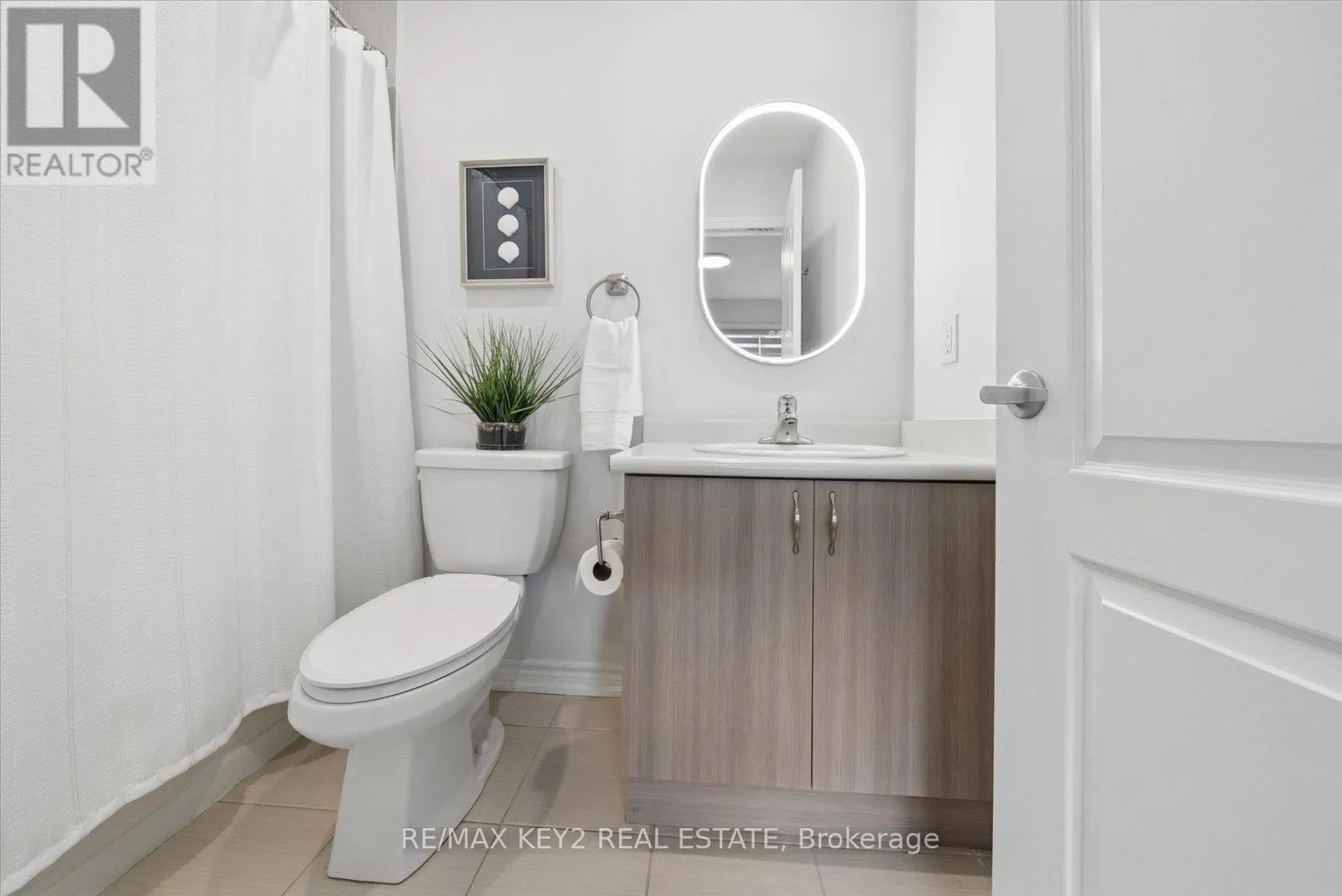 Brittania & Simcoe St N Welcome to this beautifully upgraded, bright and spacious stacked townhome in Oshawa's highly sought-after Windfields community. Featuring 2 generously sized bedrooms, 3 modern bathrooms, and a built-in garage with direct interior access, this home offers the perfect blend of style and functionality.The open-concept main floor is designed for everyday living and entertaining, showcasing a modern kitchen with a large centre island, breakfast bar, pantry, and stainless steel appliances. The sun-filled great room features expansive windows, while the dining area walks out to a private terrace-perfect for relaxing or hosting. A convenient 2-piece powder room completes the main level.Upstairs, both bedrooms offer exceptional privacy with their own 4-piece ensuites. The primary bedroom includes a walk-in closet, while the second bedroom features spacious his-and-hers closets. Upper-level laundry adds everyday convenience.Thoughtfully upgraded throughout, this home includes vinyl flooring (2025), hardwood stairs (2025), pot lights in the living room and bathrooms (2025), backlit smart bathroom mirrors (2025), and a smart thermostat (2025). Additional updates include washer & dryer (2020), blinds (2020), and garage door opener (2020).Enjoy low-maintenance living with condo fees covering garbage pickup, snow removal, lawn care, ground maintenance, window cleaning, and dryer vent cleaning.Ideally located minutes from Ontario Tech University, Durham College, Costco, shopping, restaurants, and Highways 407, 412, and 401. Surrounded by parks and with new schools opening in 2026, this home is perfect for first-time buyers, families, or investors. (id:27476)