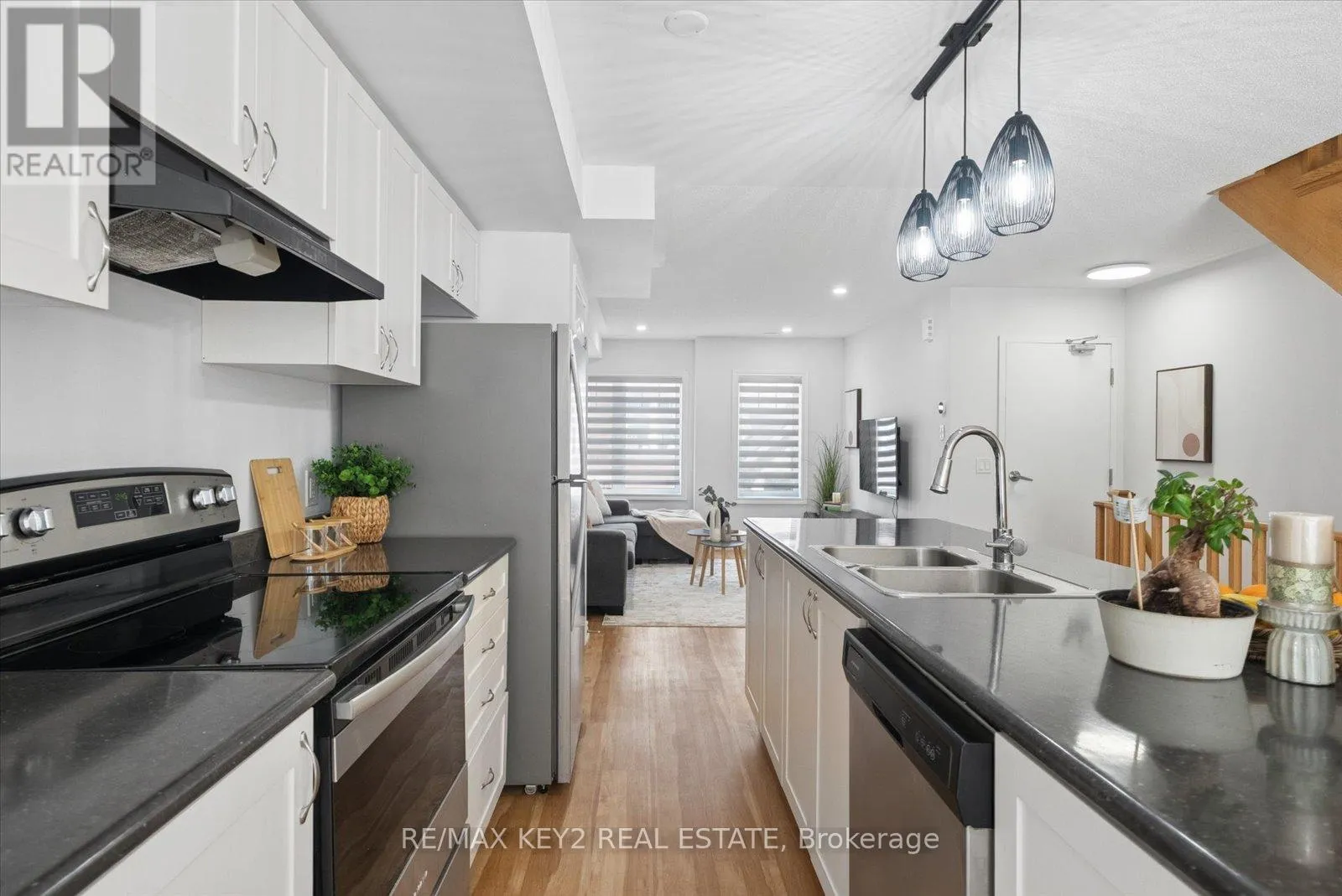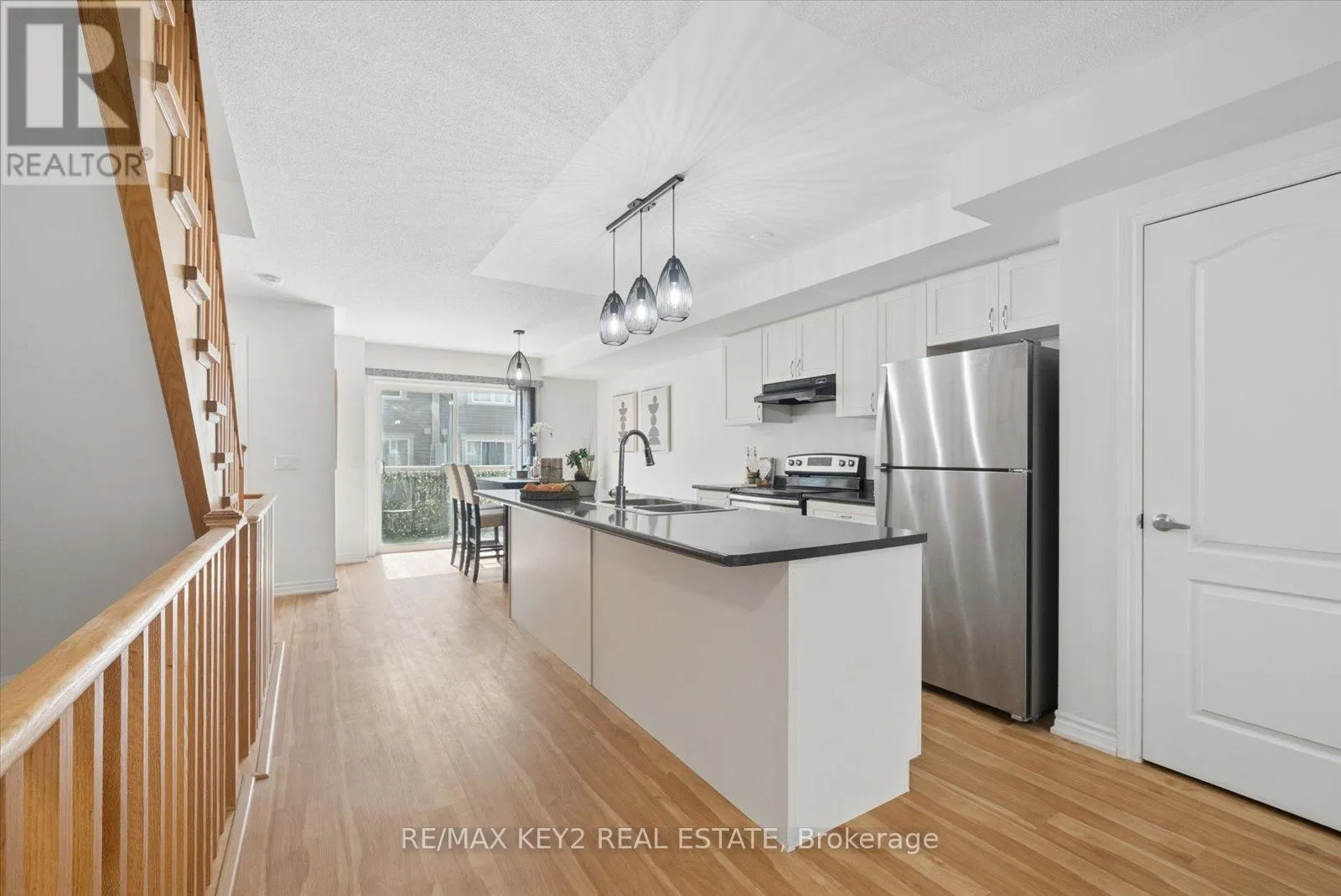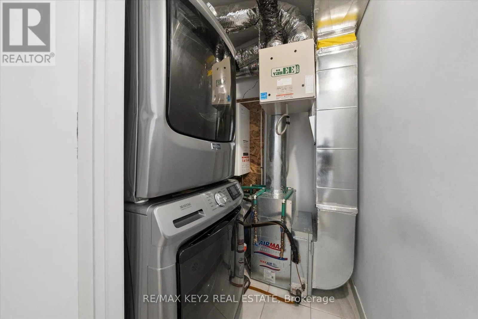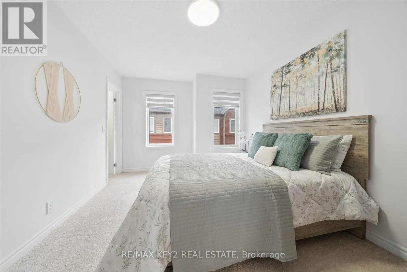 Brittania & Simcoe St N Welcome to this beautifully upgraded, bright and spacious stacked townhome in Oshawa's highly sought-after Windfields community. Featuring 2 generously sized bedrooms, 3 modern bathrooms, and a built-in garage with direct interior access, this home offers the perfect blend of style and functionality.The open-concept main floor is designed for everyday living and entertaining, showcasing a modern kitchen with a large centre island, breakfast bar, pantry, and stainless steel appliances. The sun-filled great room features expansive windows, while the dining area walks out to a private terrace-perfect for relaxing or hosting. A convenient 2-piece powder room completes the main level.Upstairs, both bedrooms offer exceptional privacy with their own 4-piece ensuites. The primary bedroom includes a walk-in closet, while the second bedroom features spacious his-and-hers closets. Upper-level laundry adds everyday convenience.Thoughtfully upgraded throughout, this home includes vinyl flooring (2025), hardwood stairs (2025), pot lights in the living room and bathrooms (2025), backlit smart bathroom mirrors (2025), and a smart thermostat (2025). Additional updates include washer & dryer (2020), blinds (2020), and garage door opener (2020).Enjoy low-maintenance living with condo fees covering garbage pickup, snow removal, lawn care, ground maintenance, window cleaning, and dryer vent cleaning.Ideally located minutes from Ontario Tech University, Durham College, Costco, shopping, restaurants, and Highways 407, 412, and 401. Surrounded by parks and with new schools opening in 2026, this home is perfect for first-time buyers, families, or investors. (id:27476)