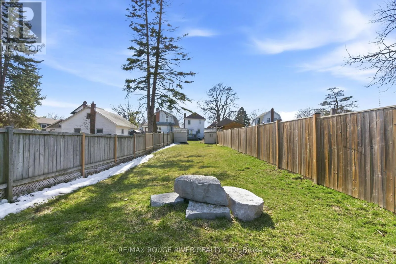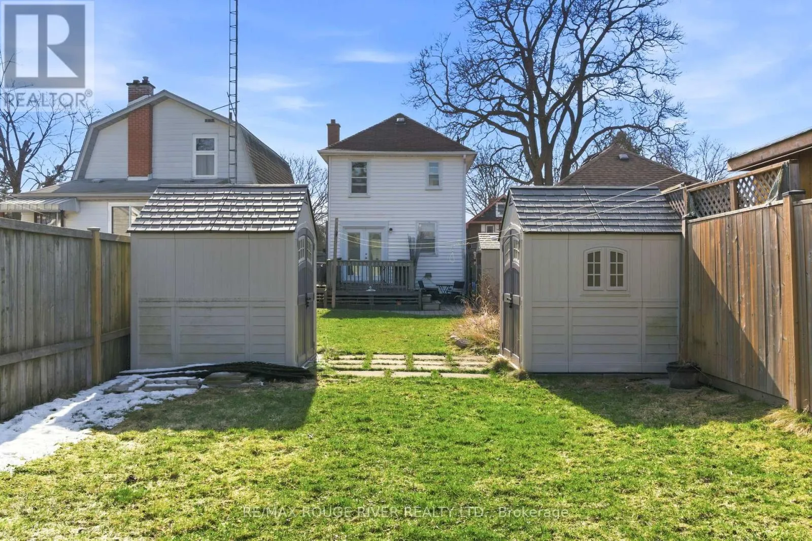 Burk St and John St W Welcome to this charming home offering an impressive, extra-long backyard that provides a rare sense of space. The outdoor setting is a standout feature, complete with a deck and patio that create the perfect backdrop for outdoor dining, gardening, or simply enjoying the open green space. The fully fenced yard also includes three garden sheds, a vibrant perennial garden and a striking landscape rock feature. Step inside to a bright and inviting foyer that sets the tone for the warm and welcoming interior. The main level features a sun-filled living room with a large window and a pleasant view overlooking the front yard, creating a comfortable and light-filled space for everyday living. The eat-in kitchen is both functional and inviting, offering ample space for family meals and gatherings and a new kitchen sink and faucet. With a walkout to the deck and a large window, this area is filled with natural light and provides seamless access to the backyard, making indoor-outdoor living effortless. Upstairs, you'll find three well-appointed bedrooms, each designed with comfort in mind. The primary bedroom features broadloom flooring, a bright window, and a front yard view, while the additional bedrooms also offer broadloom, natural light, and practical layouts, including closet space for added convenience. The unfinished basement presents an excellent opportunity to create a space tailored to your needs, whether you envision a recreation area, home office or additional living quarters. The yard offers ample shed and storage space for all your outdoor needs, along with some newer fencing that adds both privacy and peace of mind. A fantastic backyard clothesline, perfect for fresh air drying and everyday convenience. (id:27476)