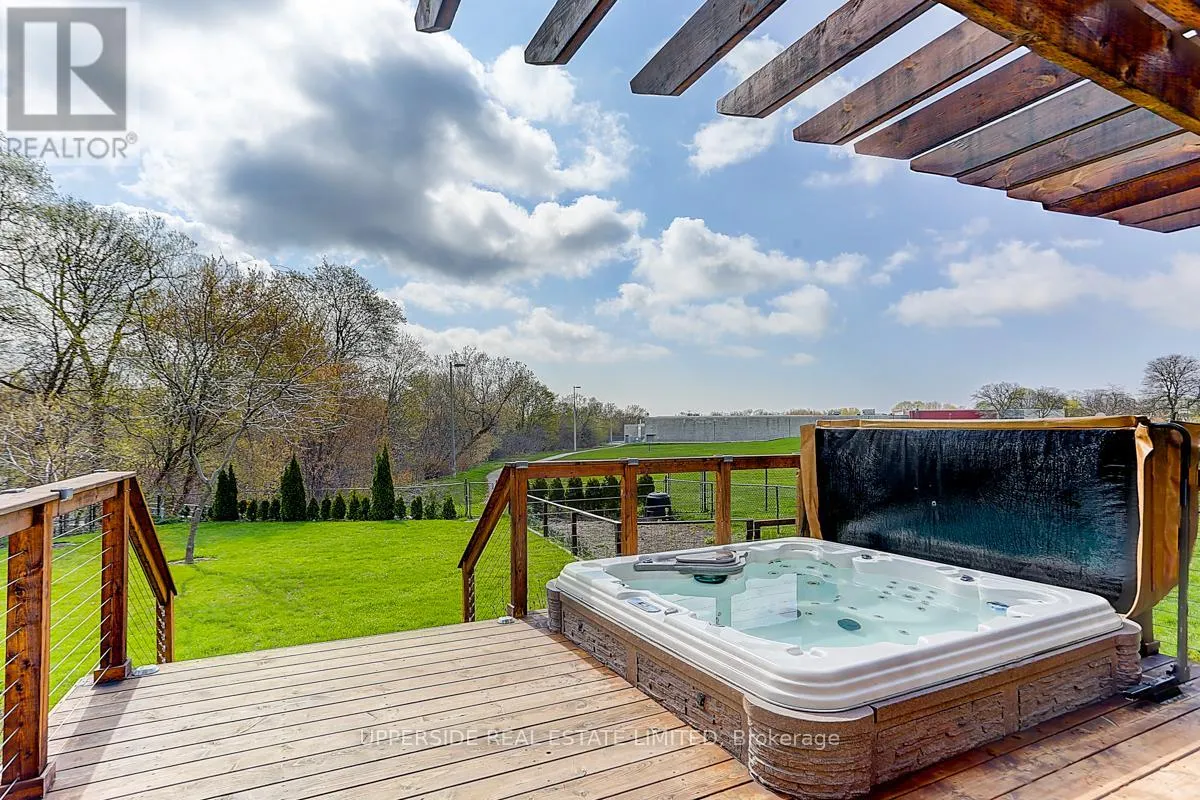 Cross Streets: Harmony/ Hwy 2. ** Directions: Off Harmony to Capri Crt. Welcome to a home that checks every box - and then goes beyond.Tucked away on a quiet court in a highly sought-after community, this fully renovated, move-in-ready home sits on a premium ravine lot backing onto the natural beauty of Harmony Creek - offering privacy, tranquility, and a backyard that feels like your own private retreat.Step inside to a thoughtfully designed open-concept layout featuring engineered hardwood flooring throughout and elevated finishes at every turn. The heart of the home is a chef-inspired kitchen with sleek quartz countertops, a large center island, and heated floors extending through the kitchen, dining area, and main floor bathroom - combining comfort with modern style.Downstairs, a fully finished basement with separate entrance offers exceptional flexibility - complete with 1 bedroom, 1 bathroom, and a spacious rec room, ideal for an in-law suite or income-generating potential.Out back, unwind in your private ravine oasis - featuring a large deck and hot tub, surrounded by nature and mature greenery. (id:27476)